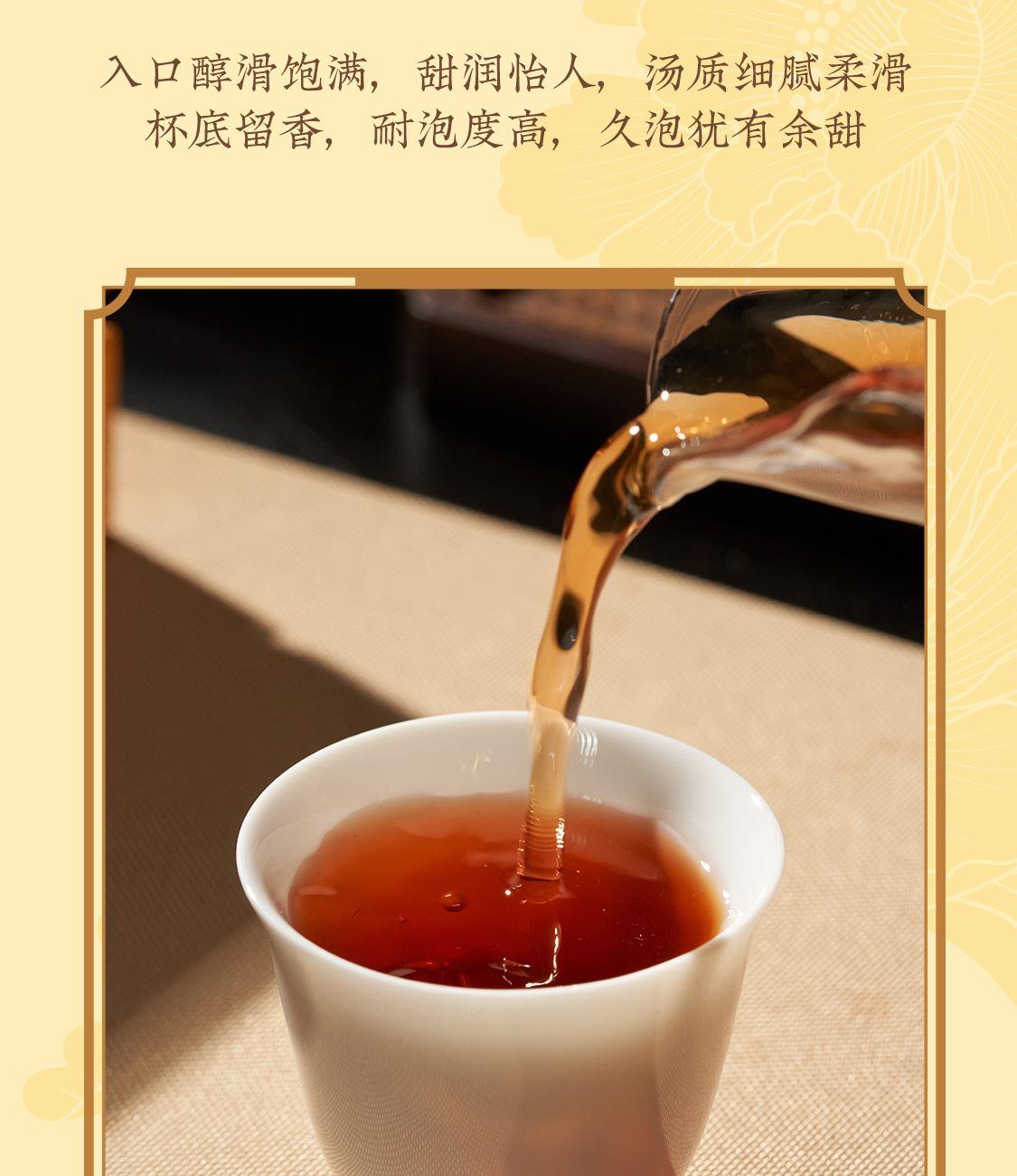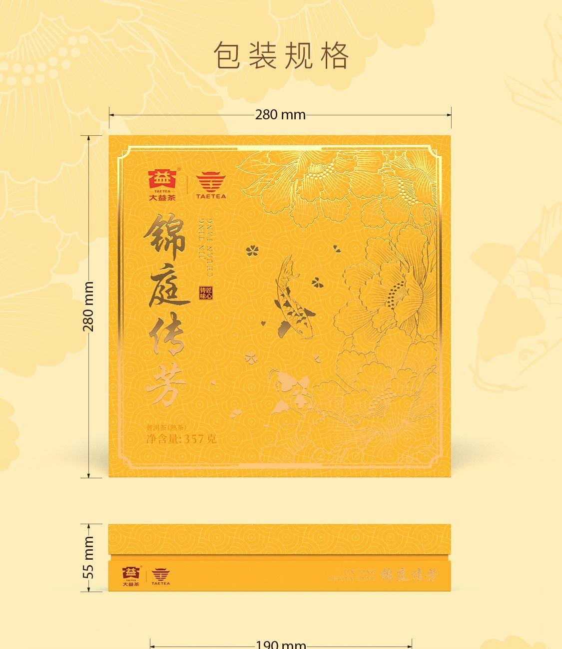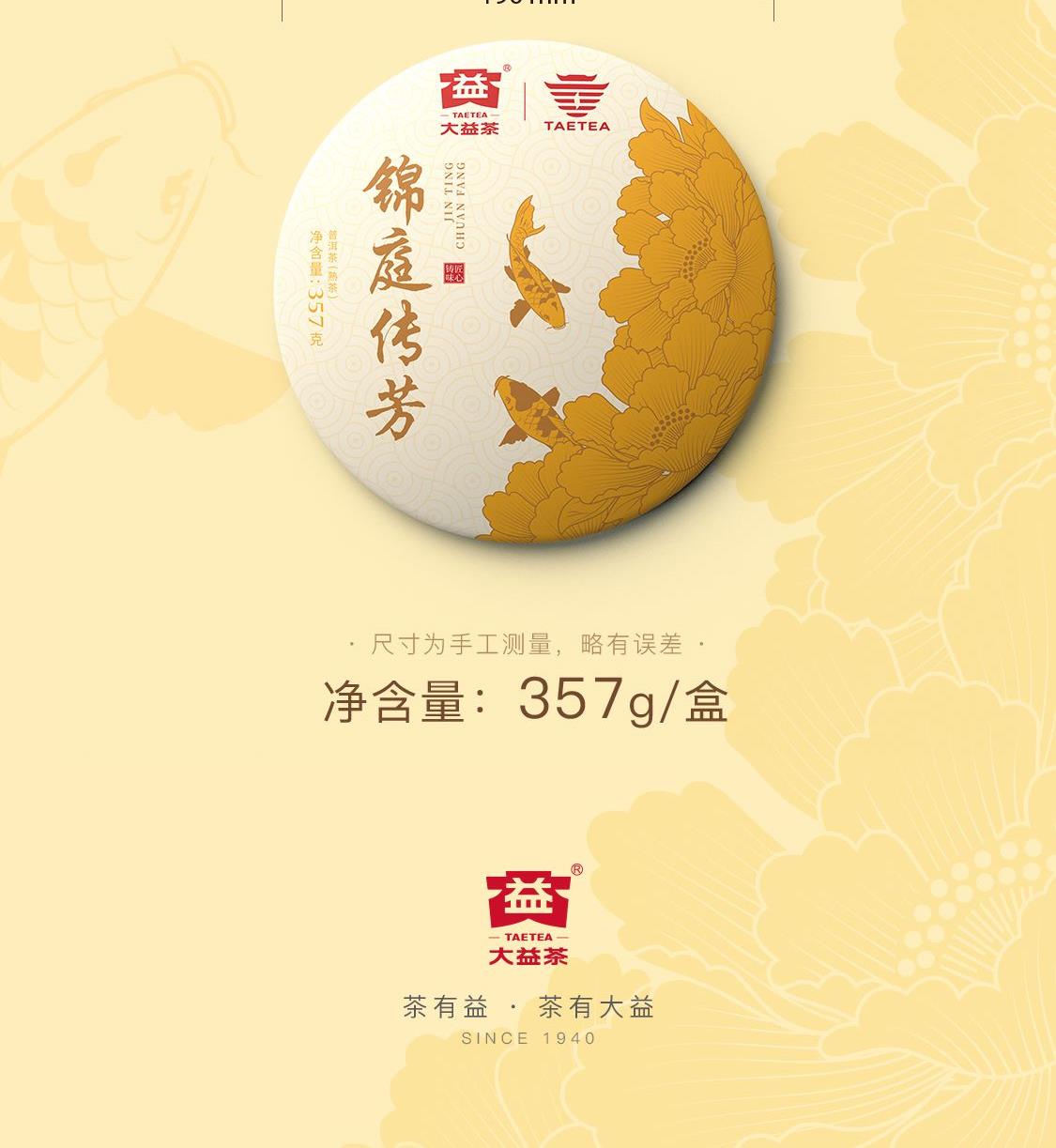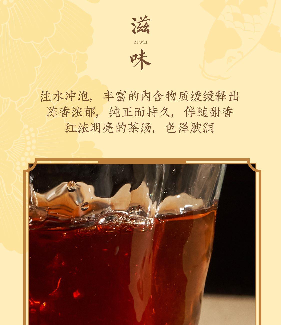 茶品饼形圆润饱满,松紧适宜 条索较紧细、撒面均匀 净含量:357g/盒