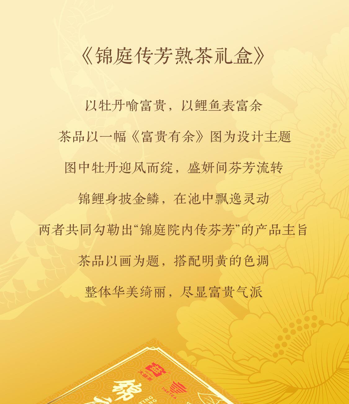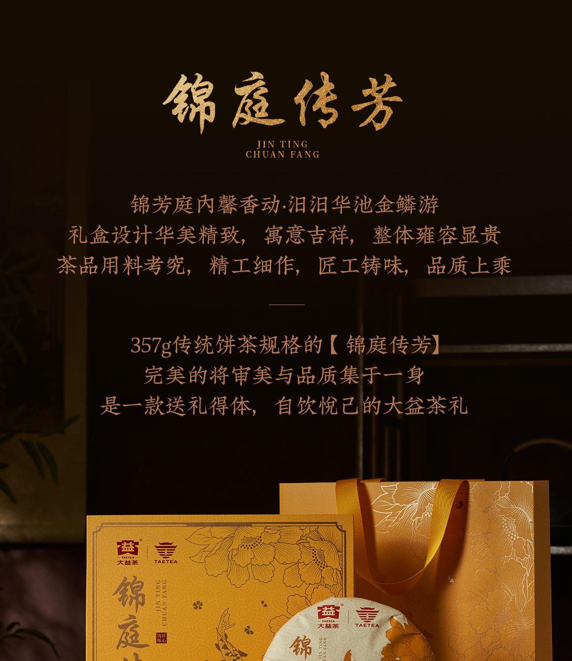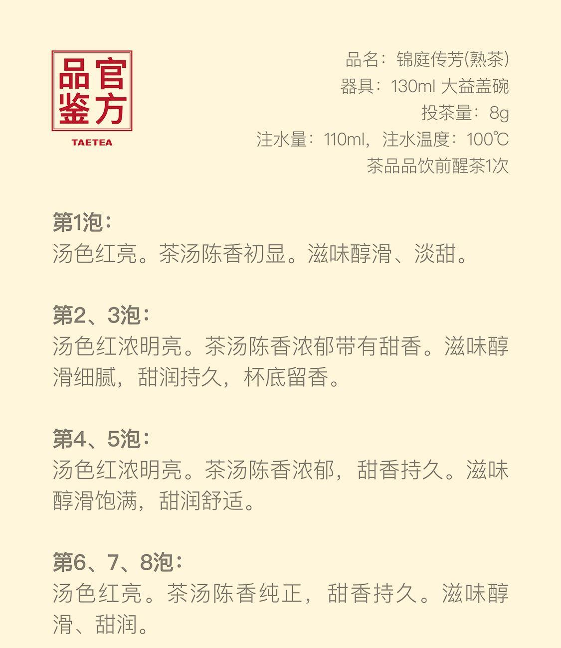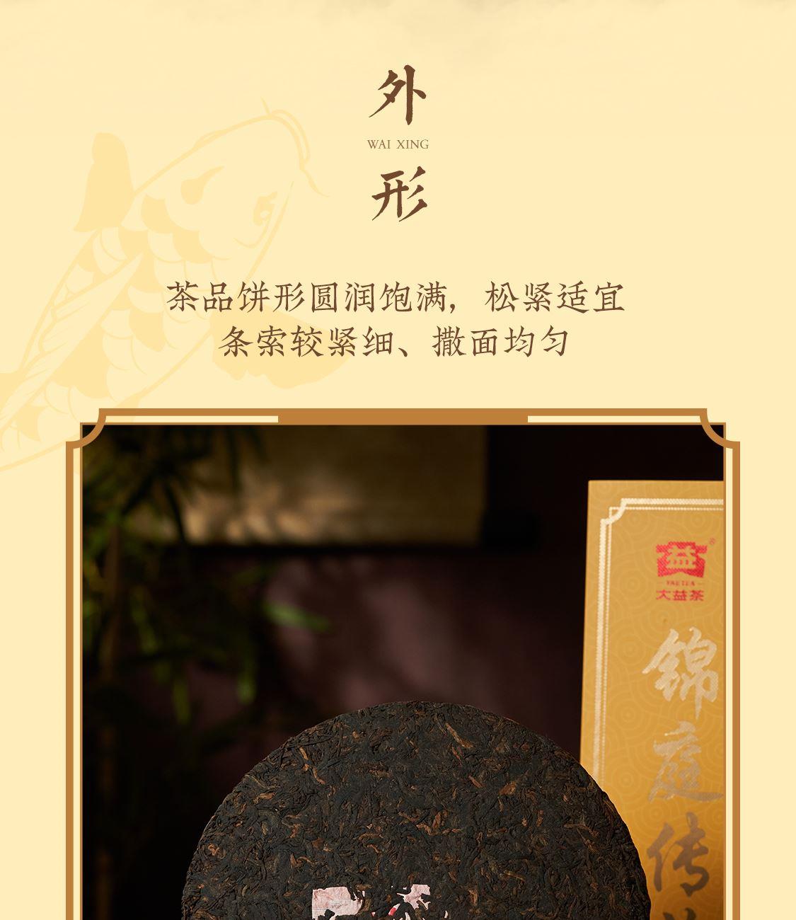 茶品饼形圆润饱满,松紧适宜 条索较紧细、撒面均匀 净含量:357g/盒