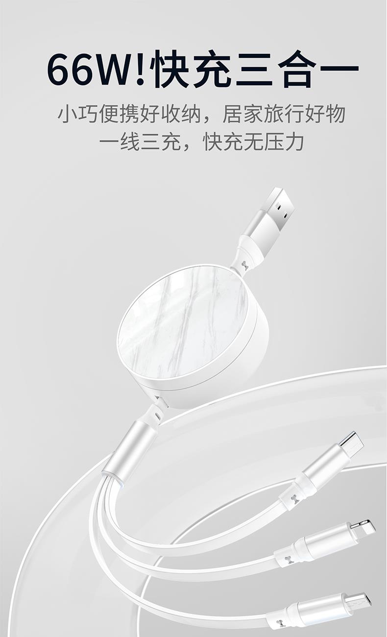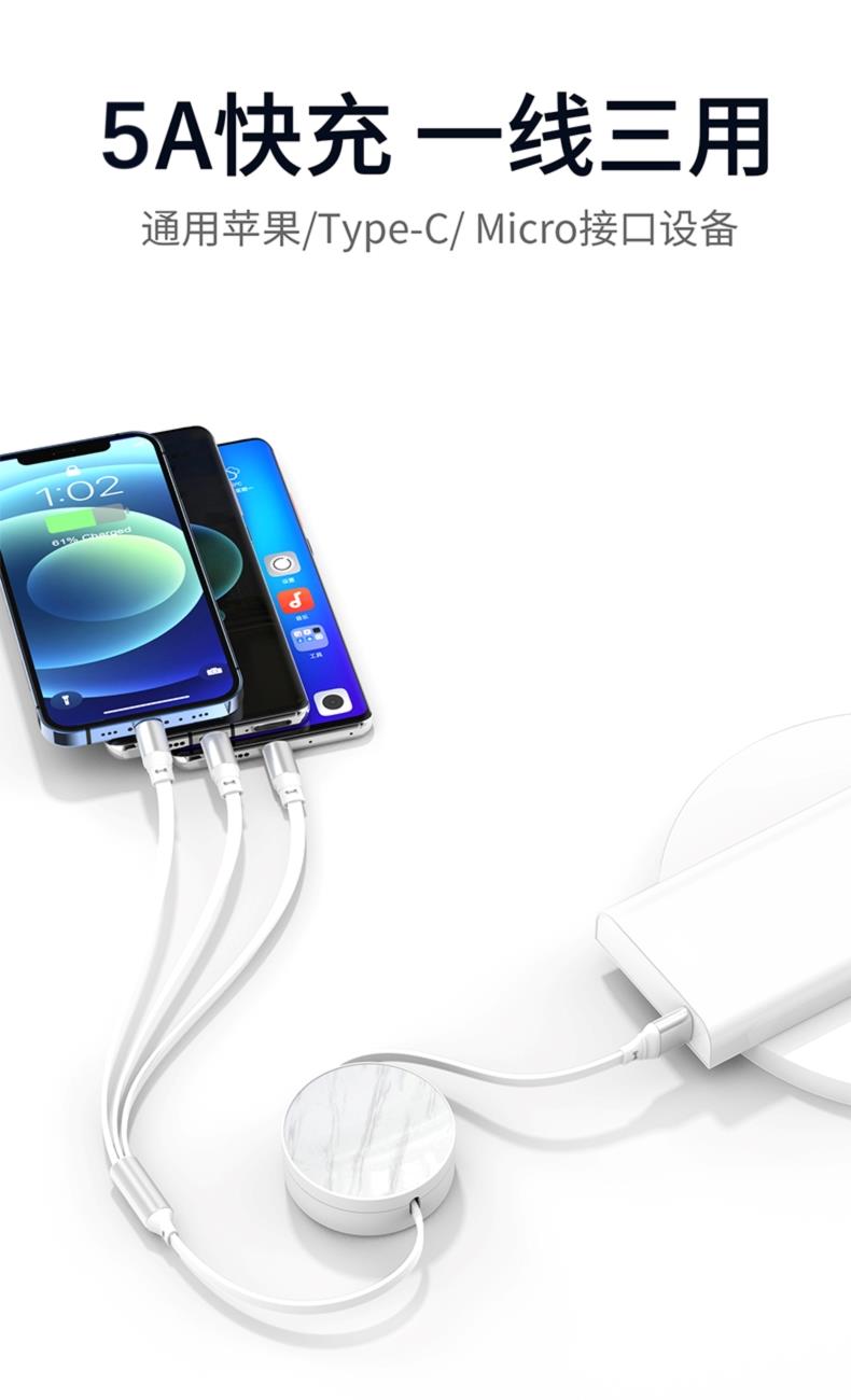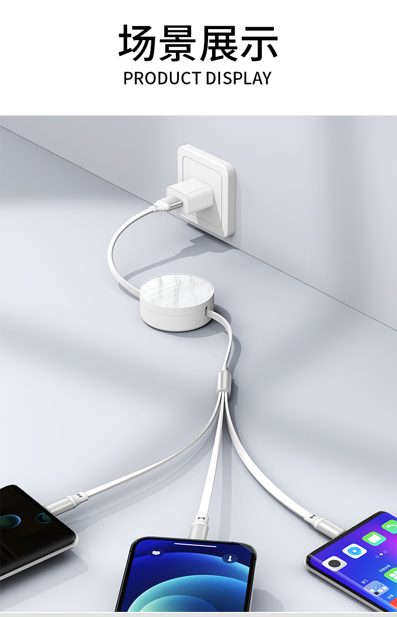 遥里逊一拖三快充伸缩数据线三合一伸缩充电线YLX-375