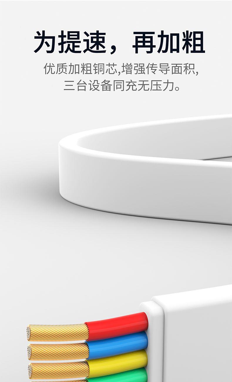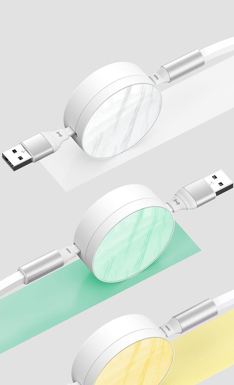 长 度:120cm 材 质:TPE面条线 颜 色:白色 黄色 蓝色 粉色 绿色 接 口:苹果接口 安卓接口 Type-c接口 输出电流:5A 功 能:充电 产品净重:54g 产品特点: 五档伸缩 线长随意调节 智能5A快速充电 更安全 加粗低阻铜丝 安全提速充电 支持苹果、安卓、Type-c同时充电