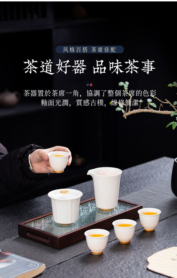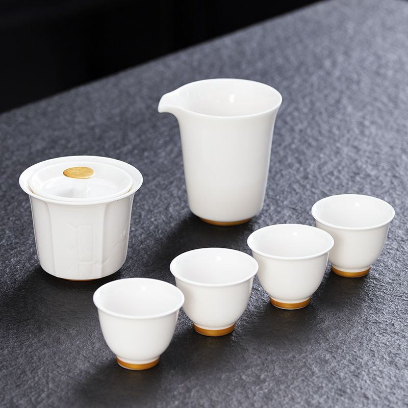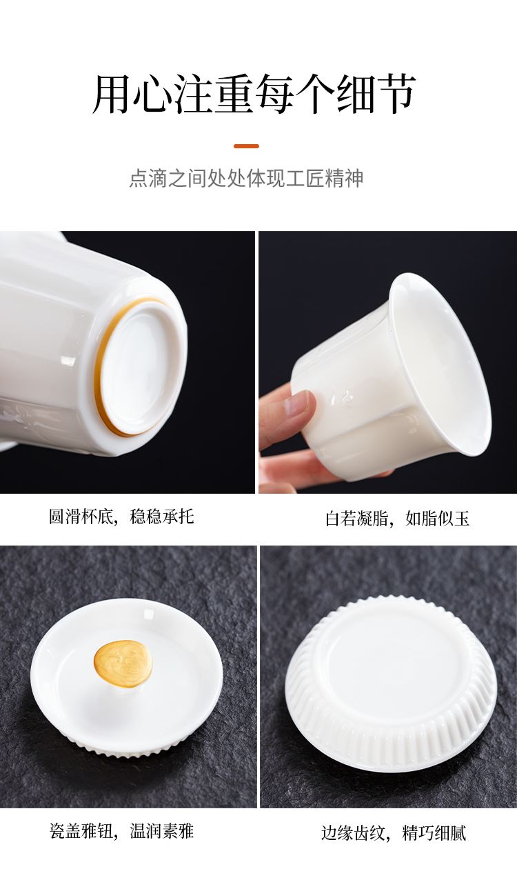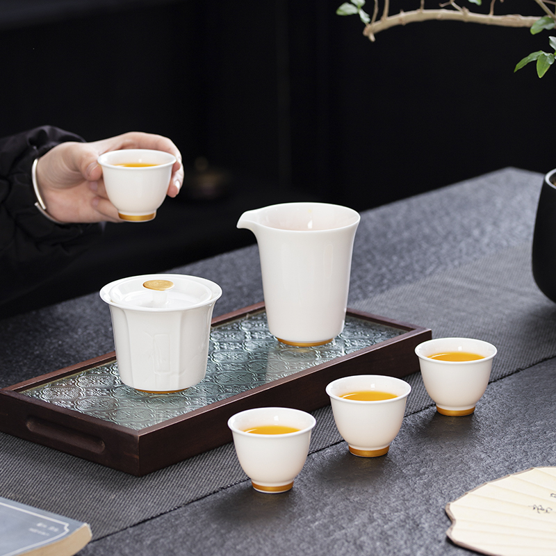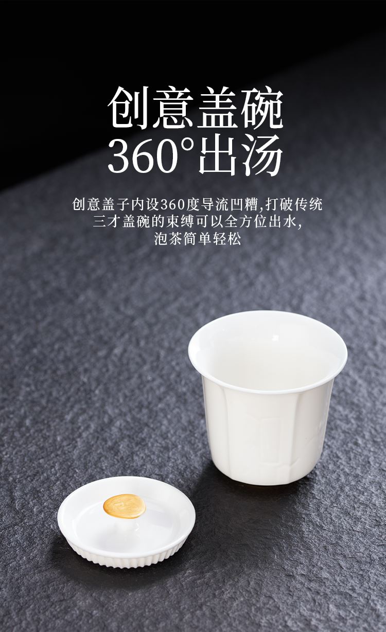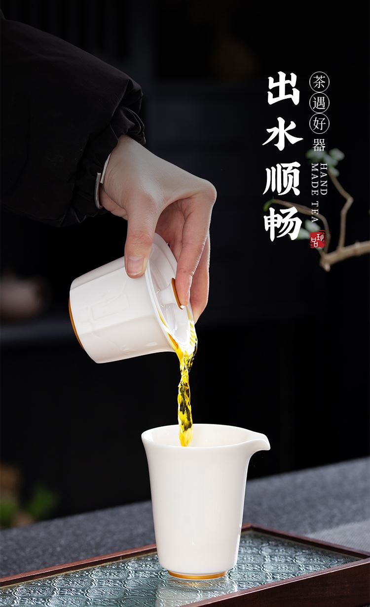 云博陶瓷羊脂玉白落小套组360度出水盖碗描金现代风写字楼茶具