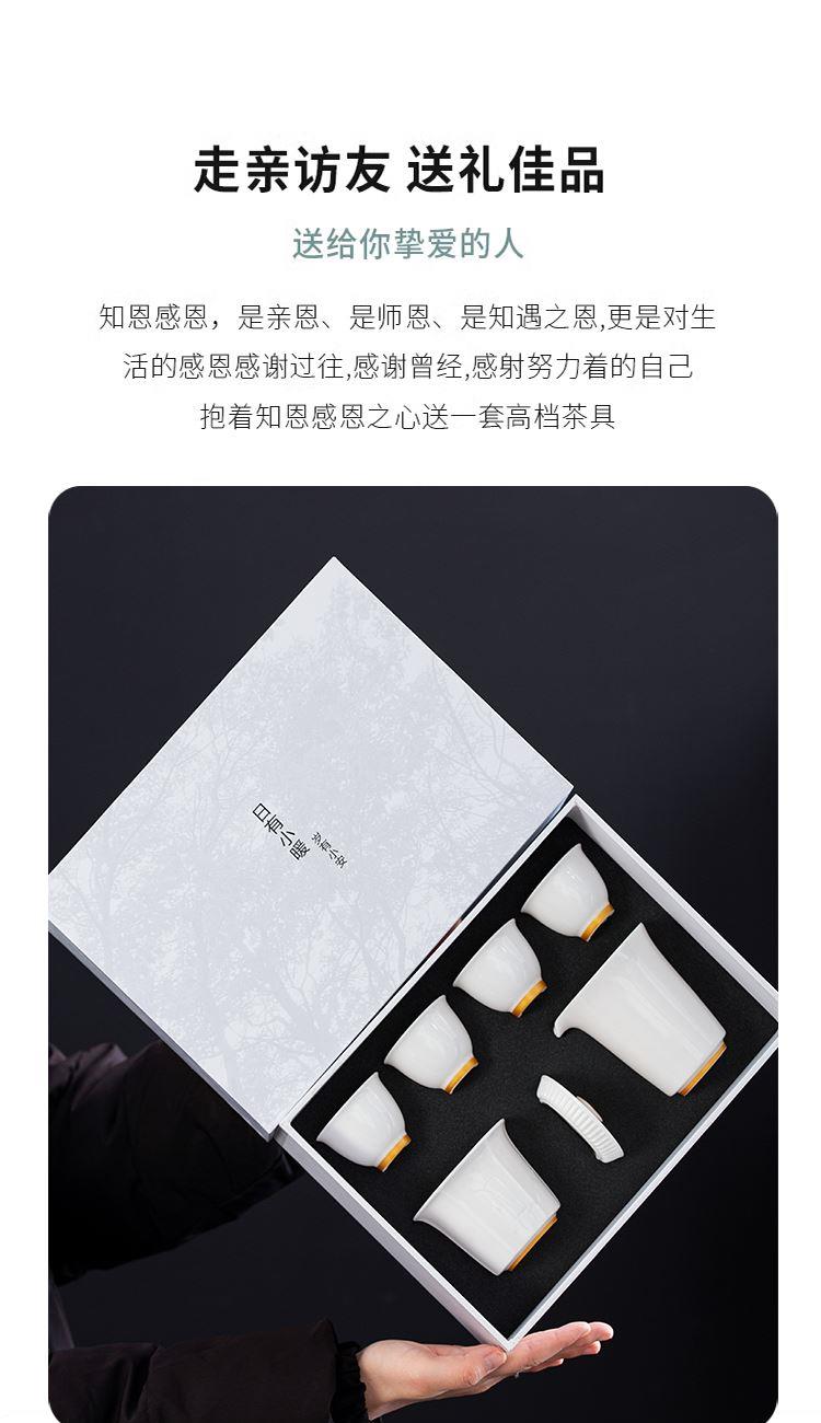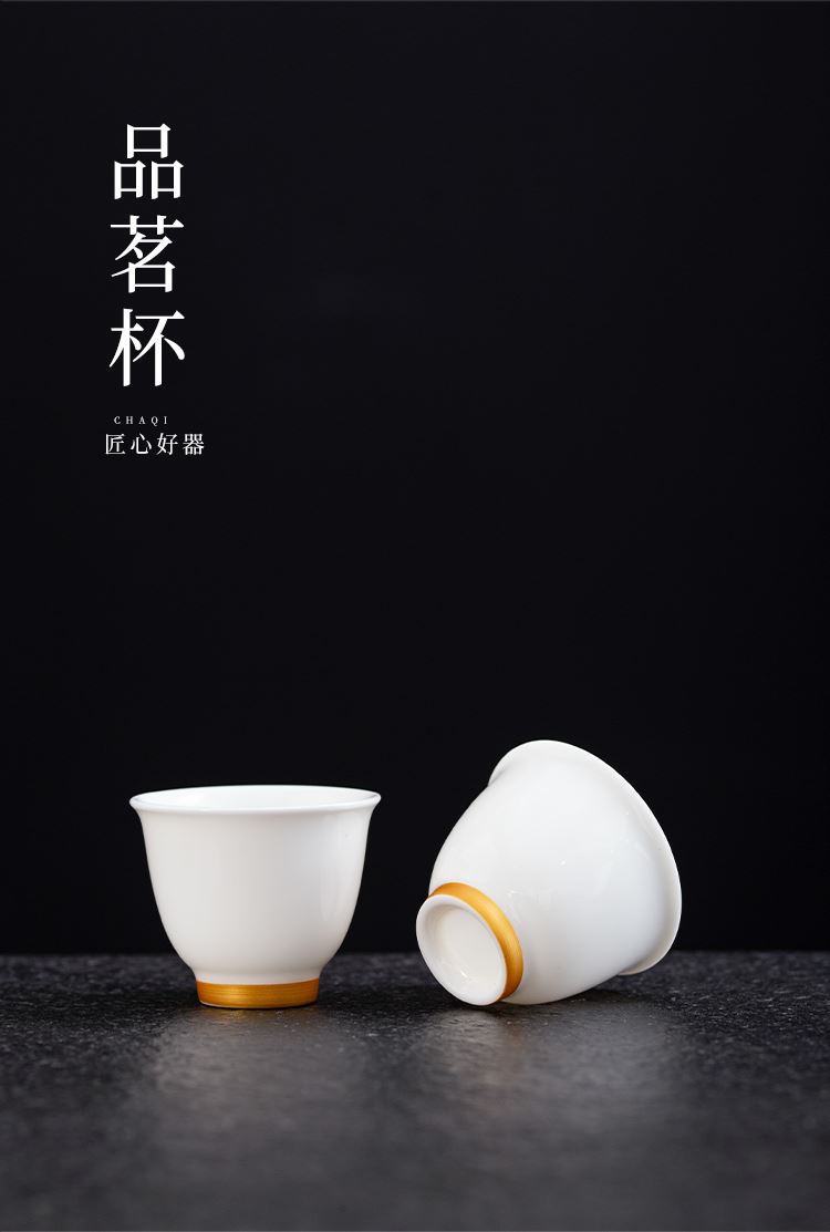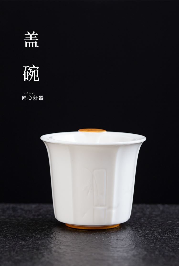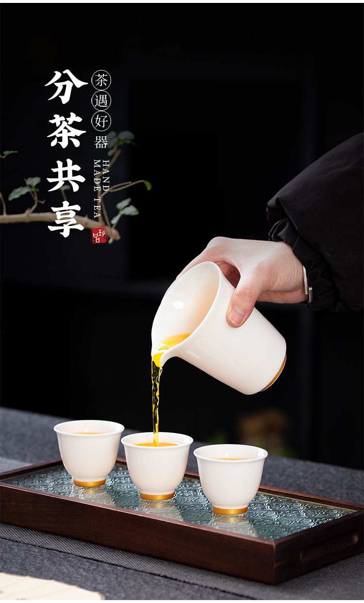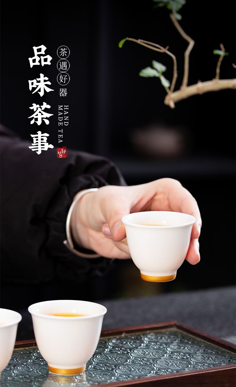 云博陶瓷羊脂玉白落小套组360度出水盖碗描金现代风写字楼茶具