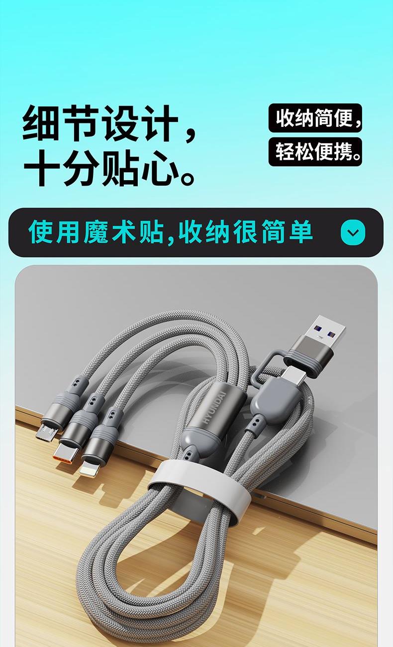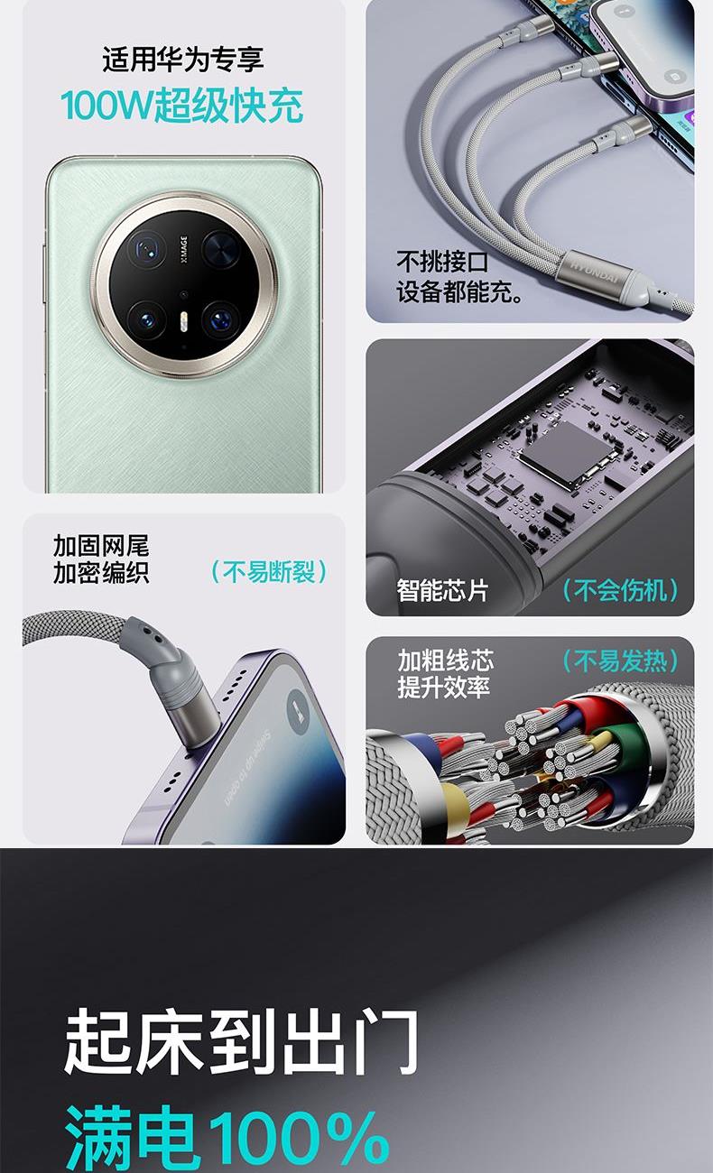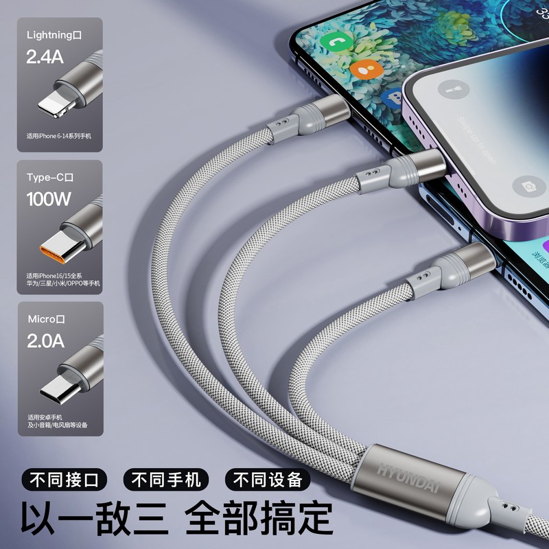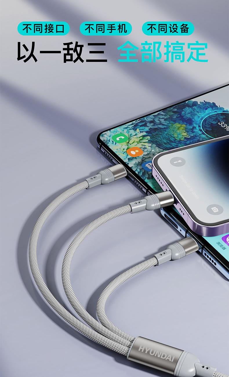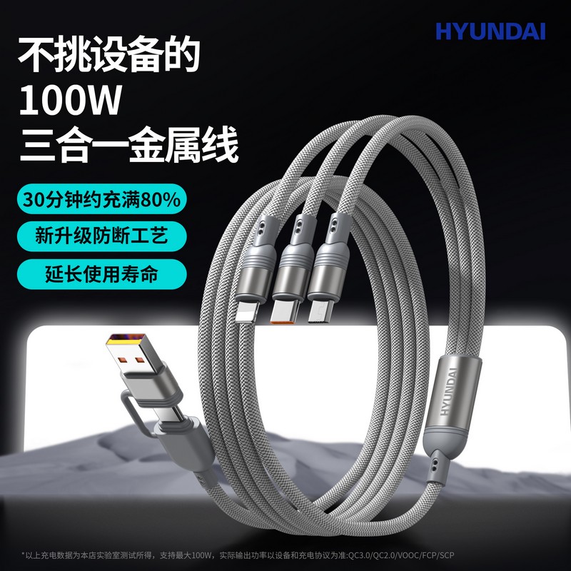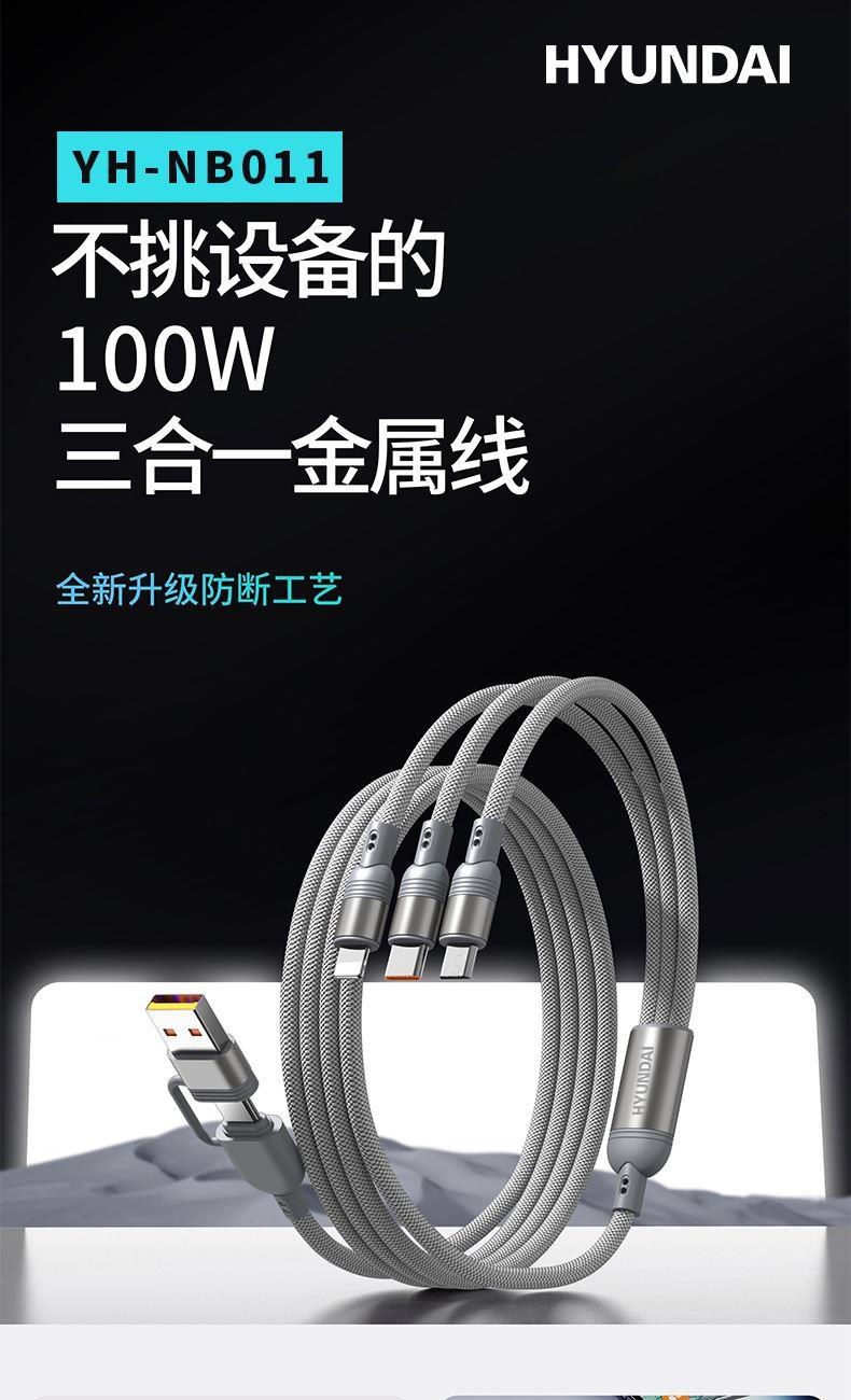 HYUNDAI100W二拖三快充数据线YH-NB011