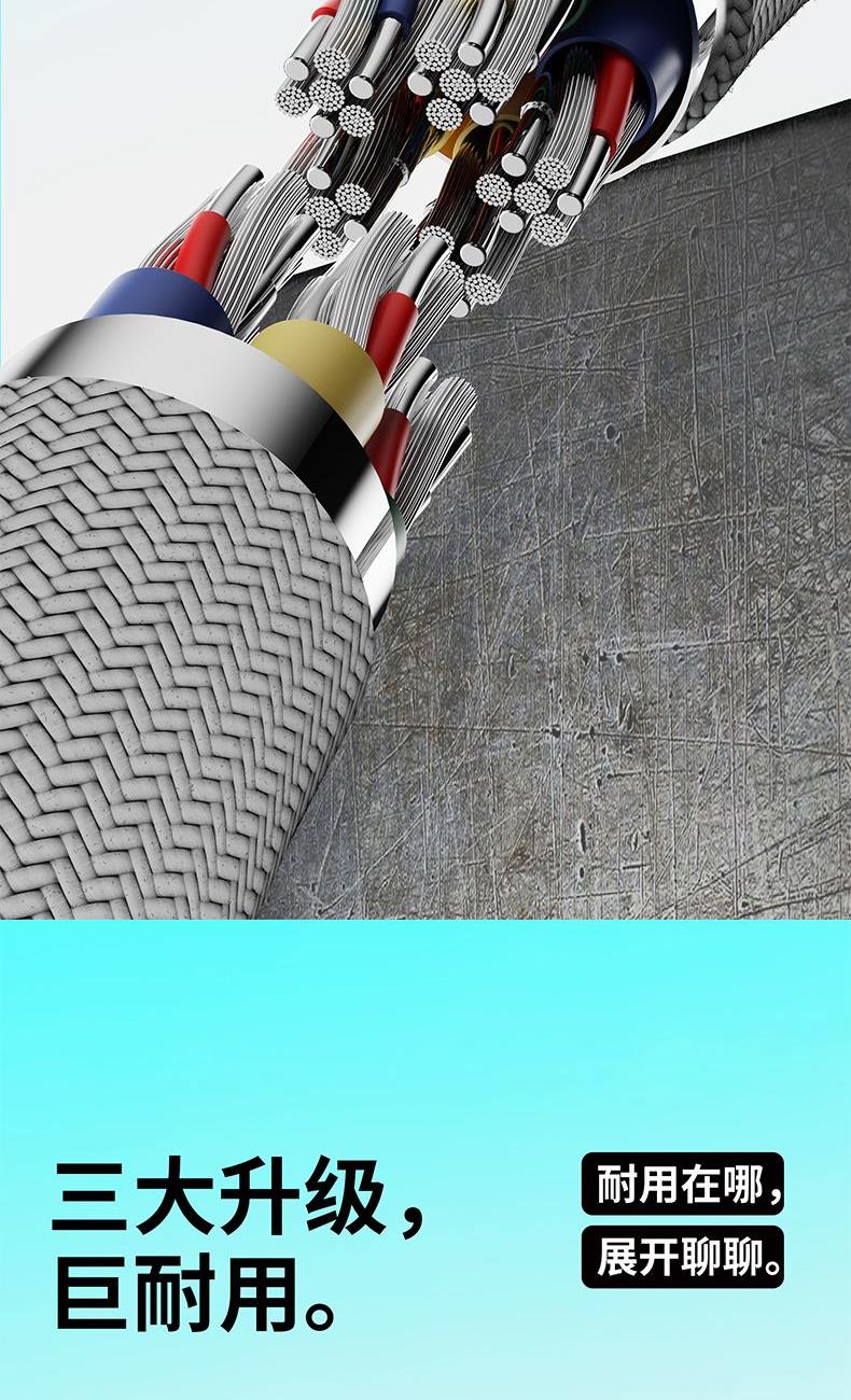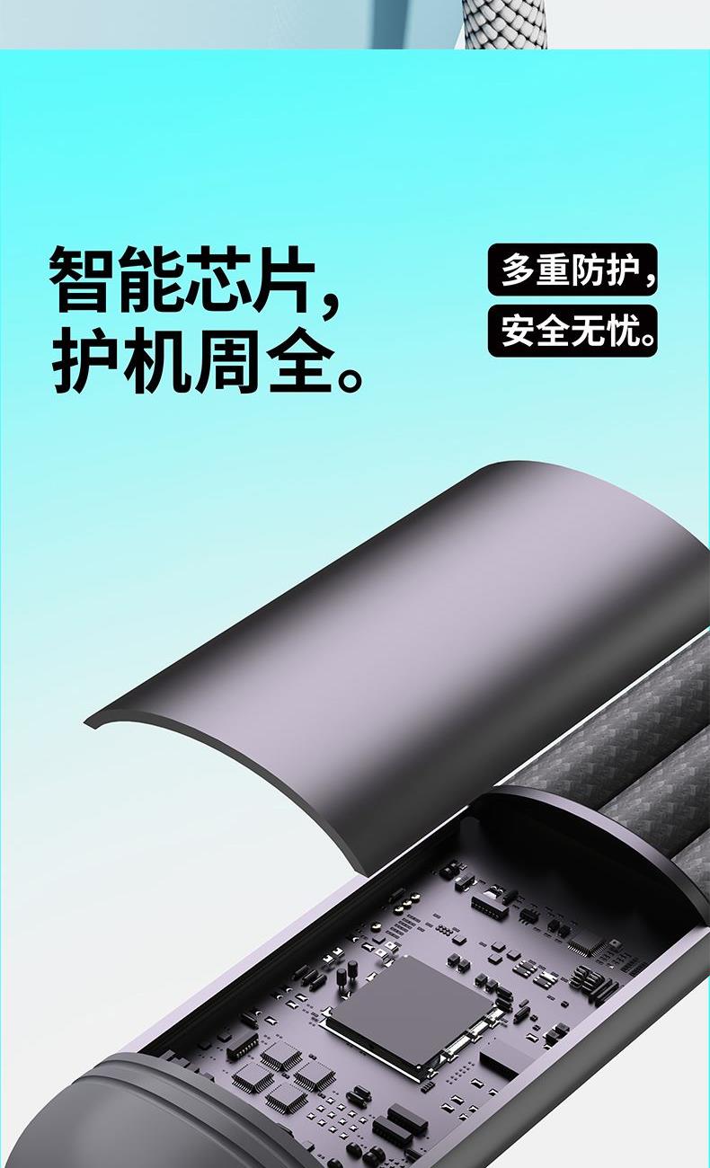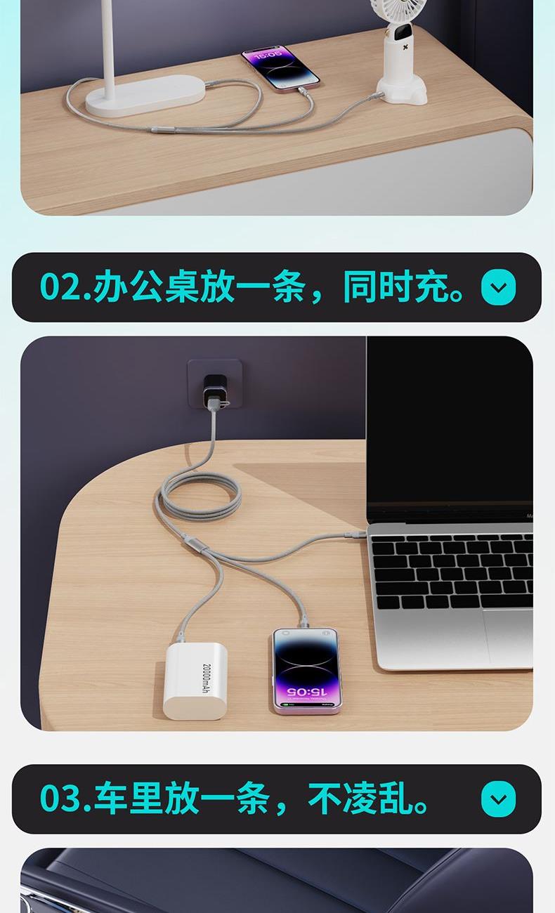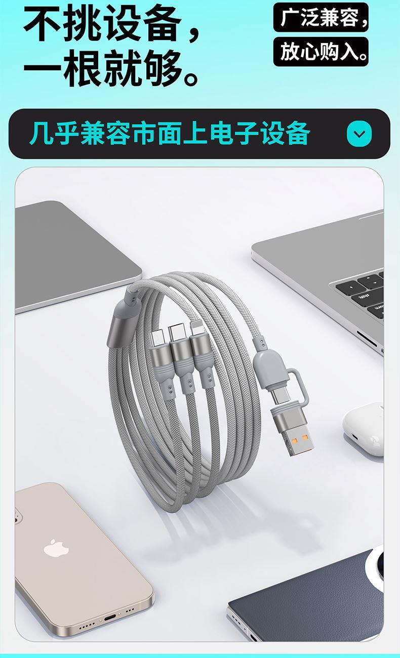 ● 不挑设备的100W三合一金属线 ● 粗铜芯充电快又稳 ● 能芯片护机周全