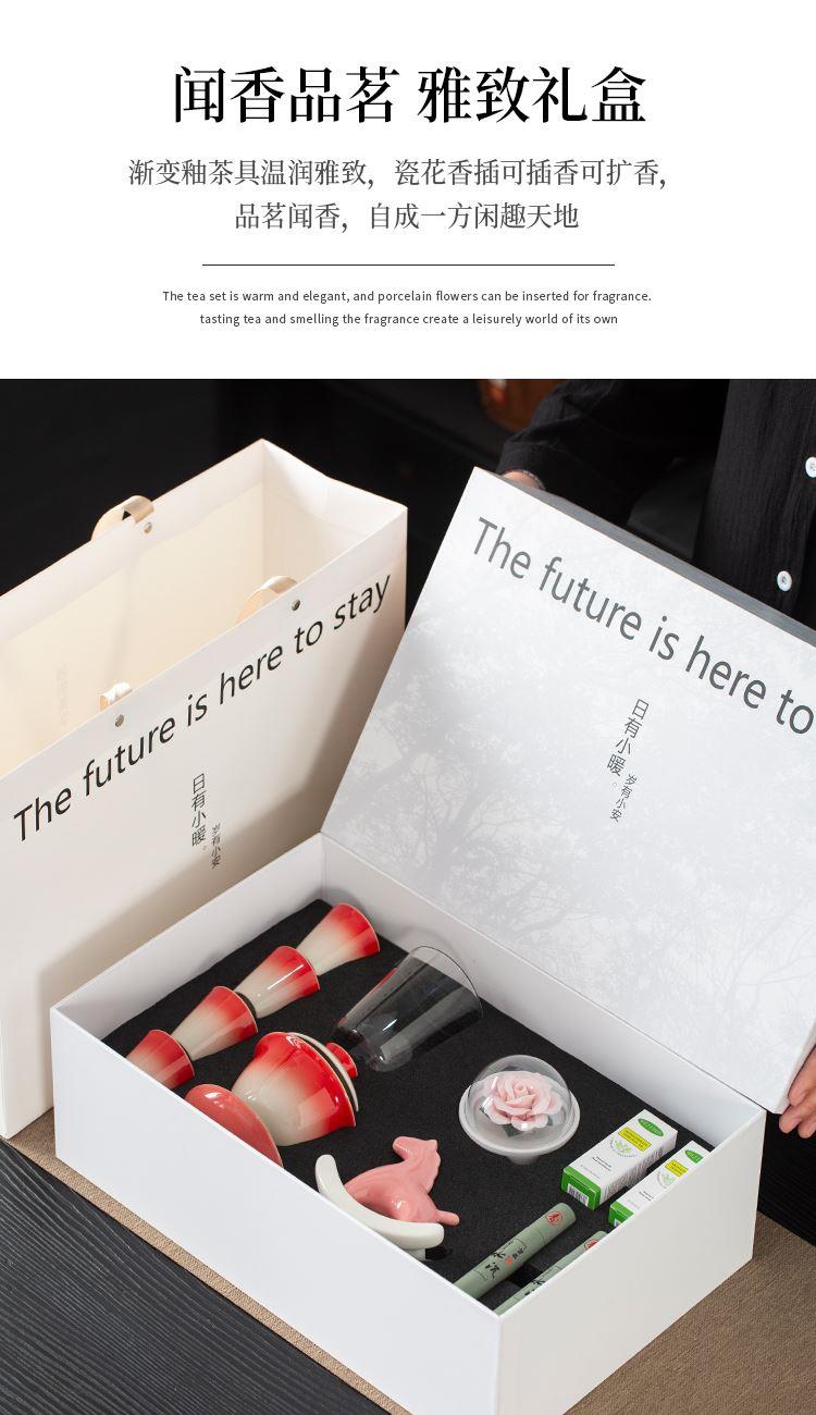 云博陶瓷渐变色马上幸福香插套装茶具摇摇马摆件瓷花香薰线香沉香