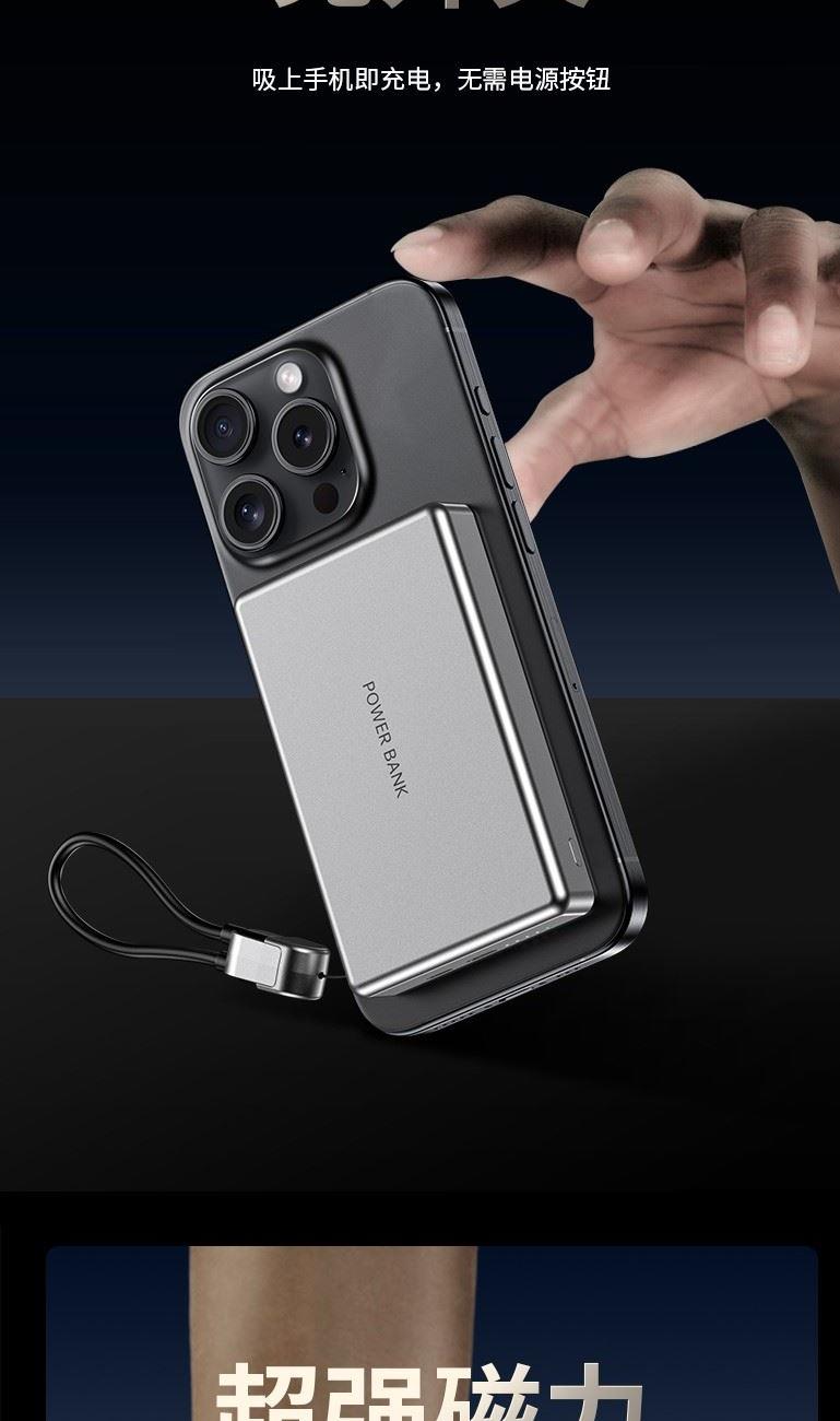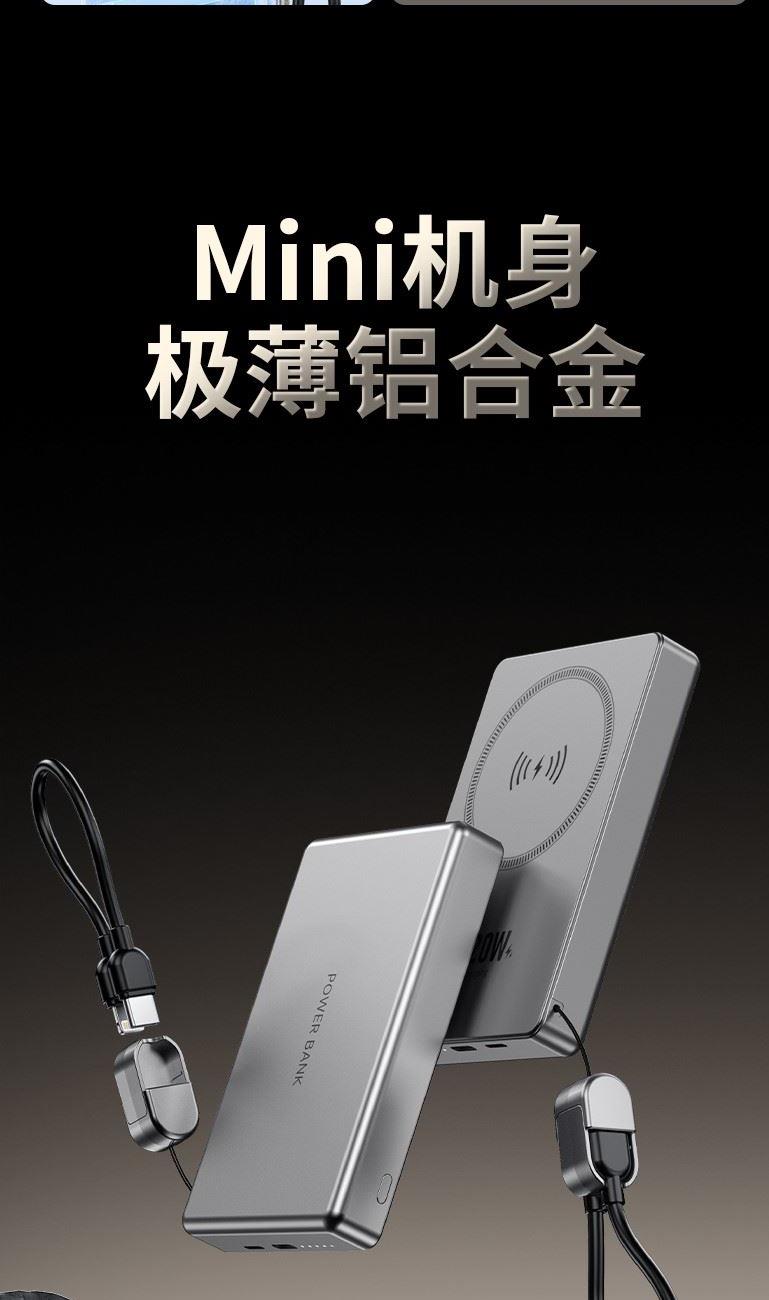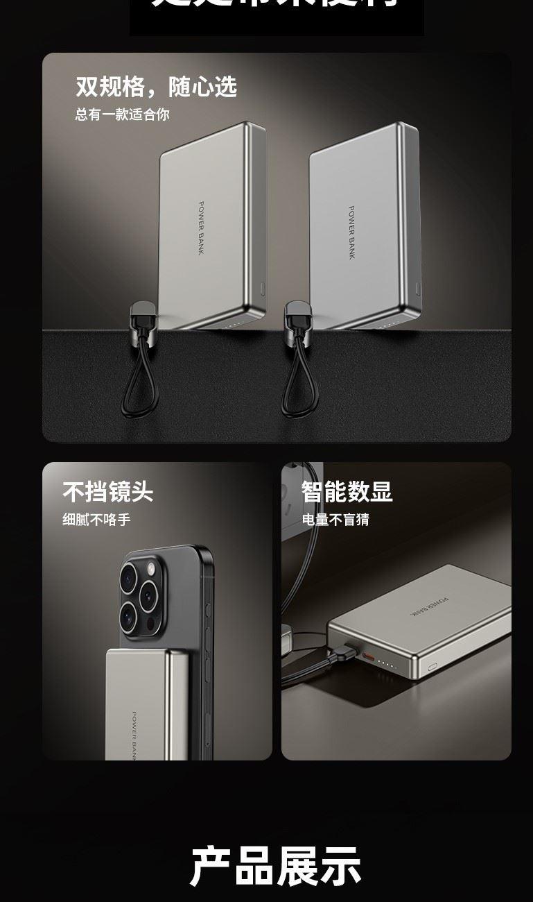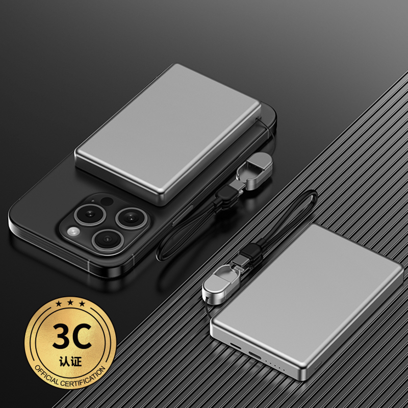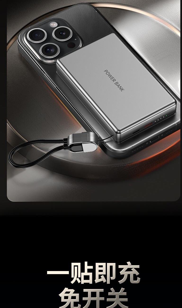 3C认证超薄商务铝合金磁吸自带线移动电源
