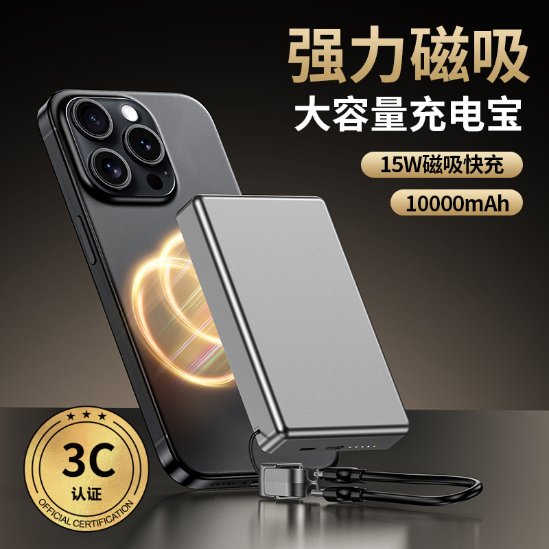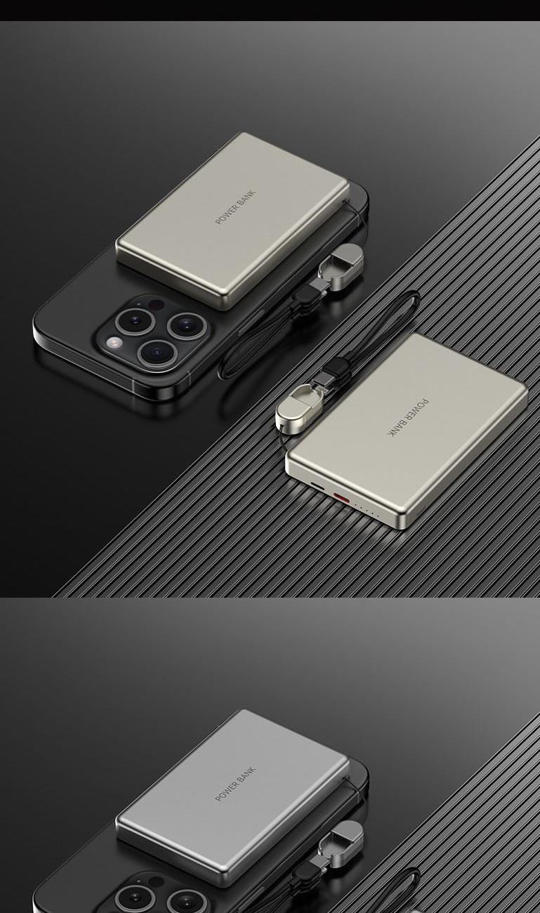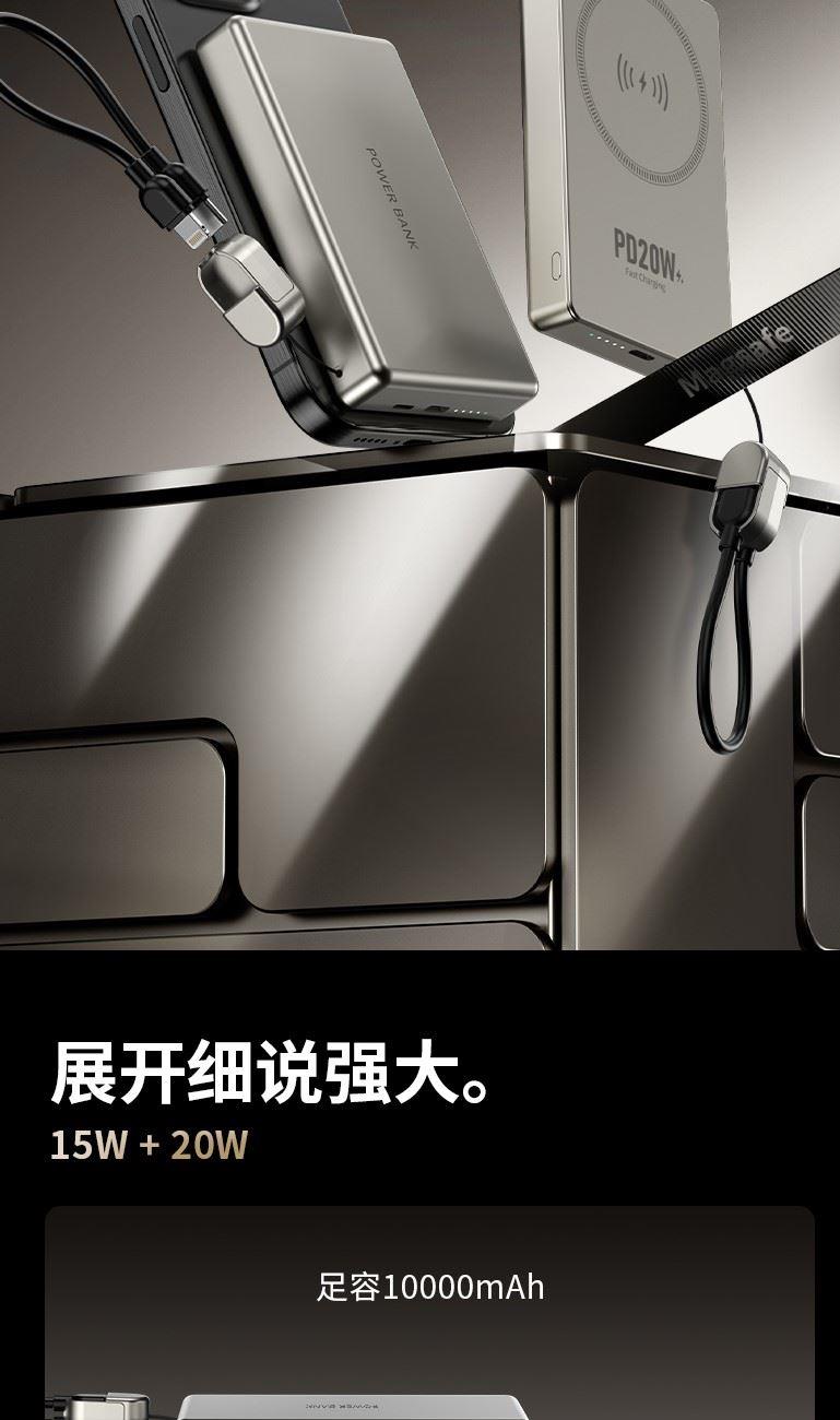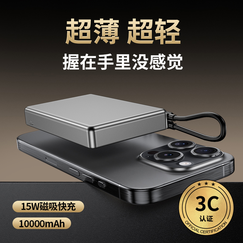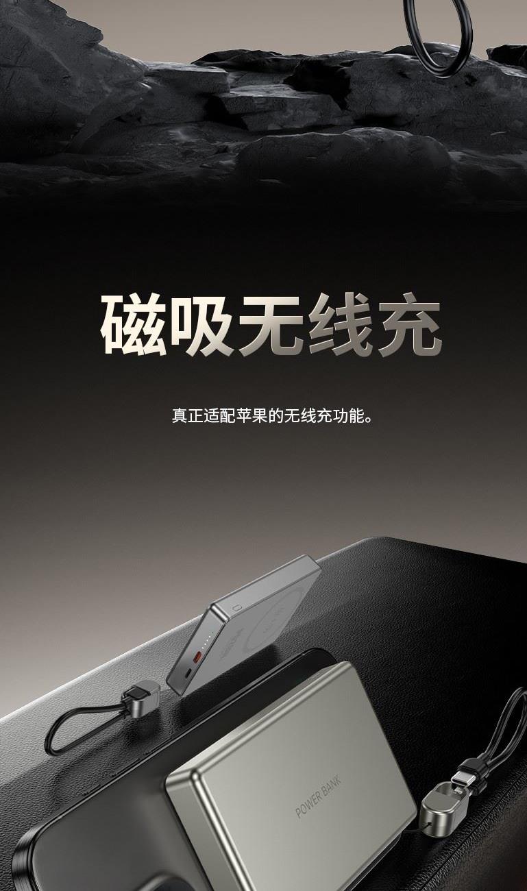 3C认证超薄商务铝合金磁吸自带线移动电源