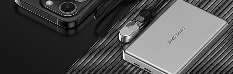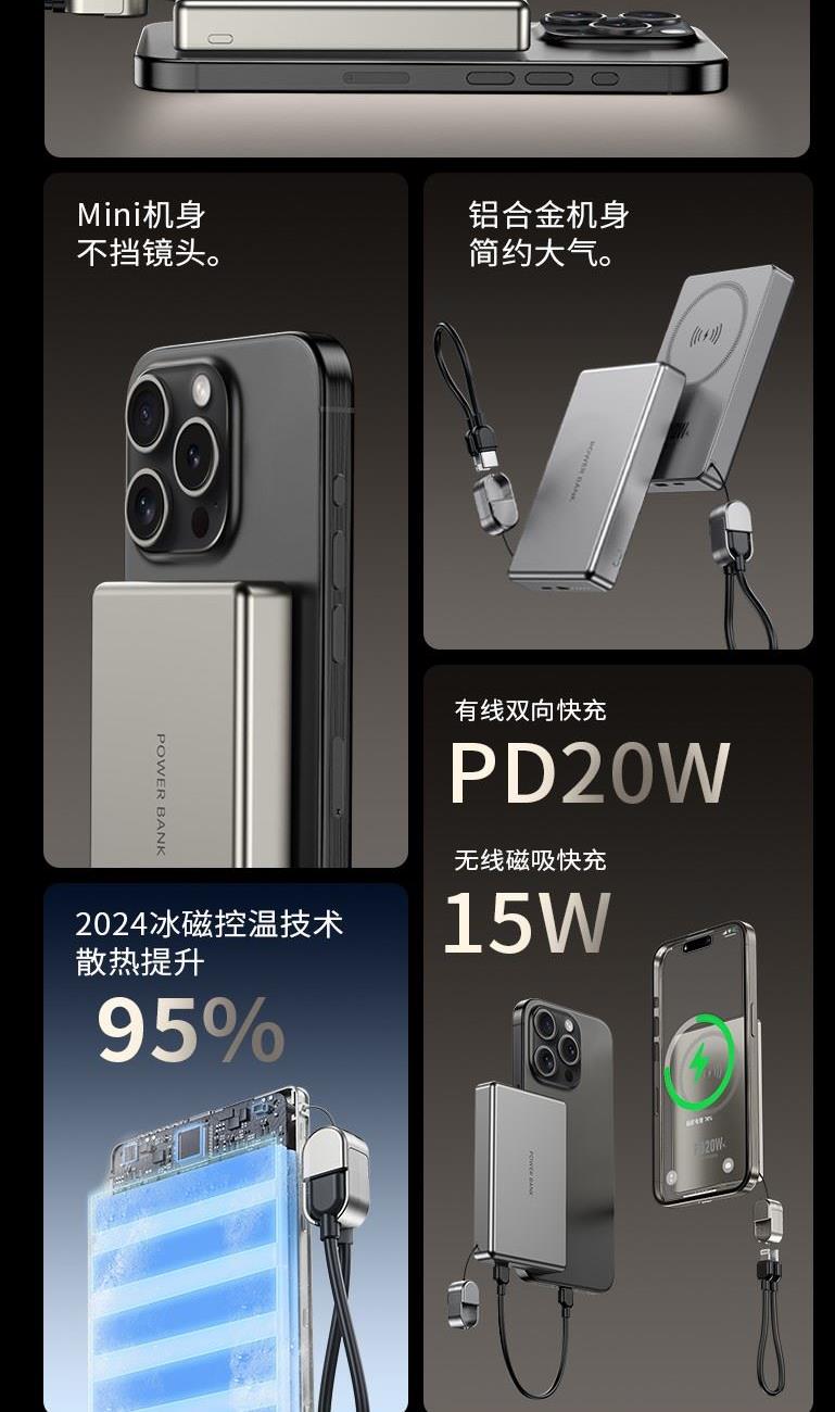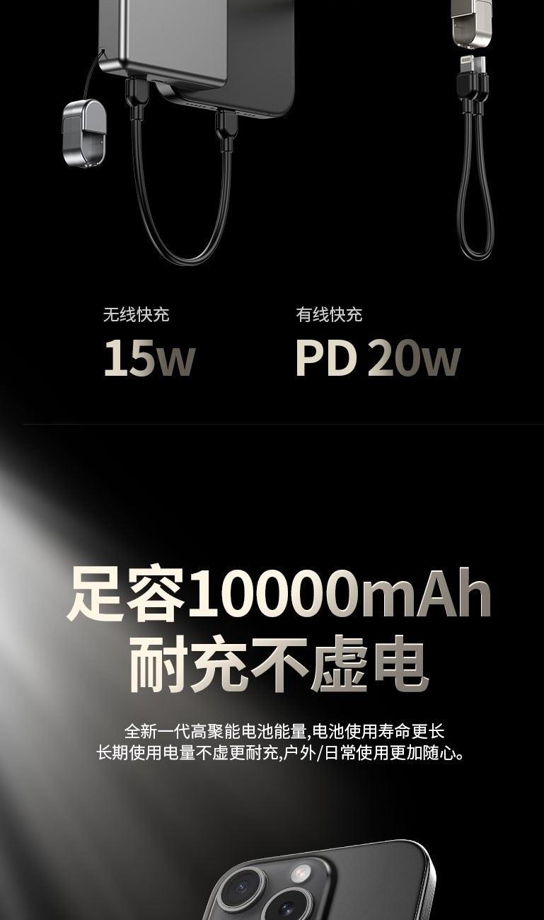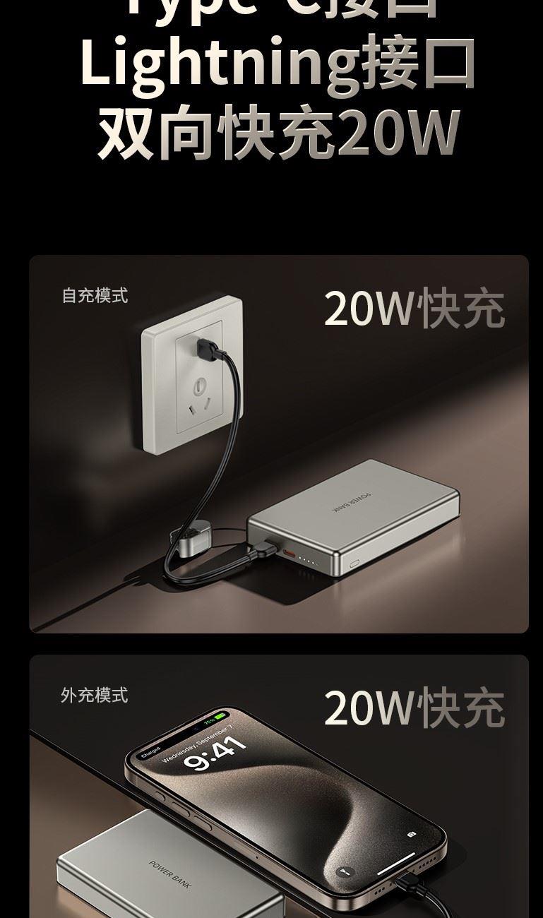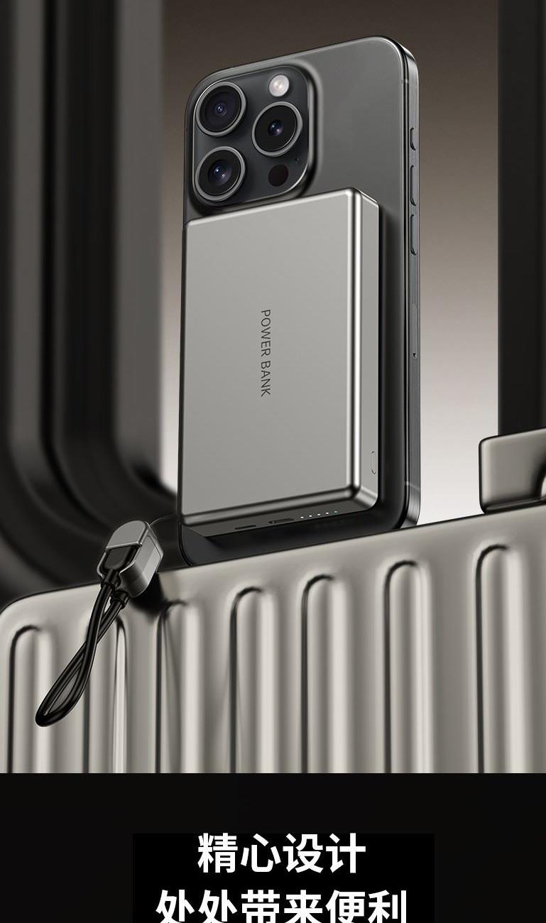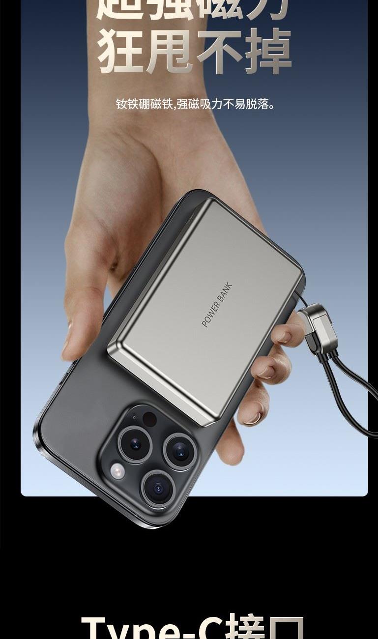 3C认证超薄商务铝合金磁吸自带线移动电源