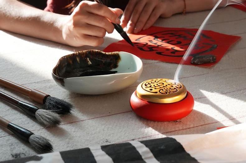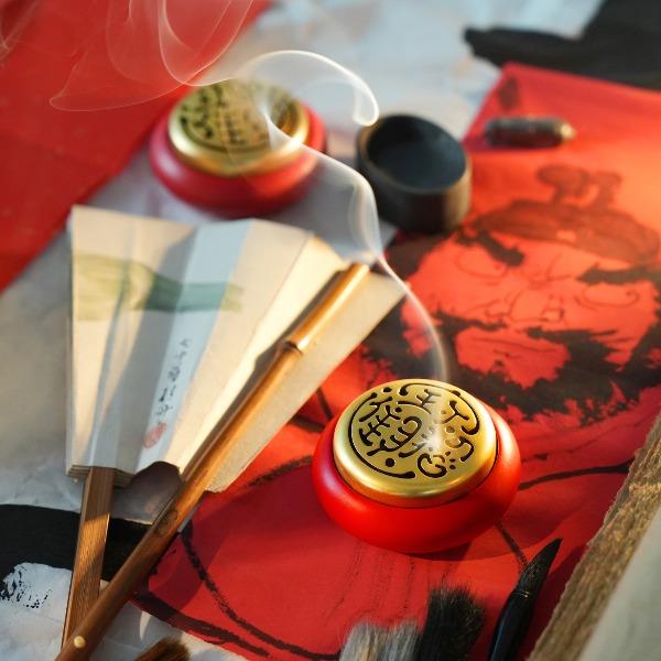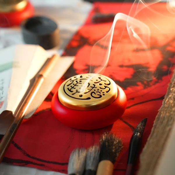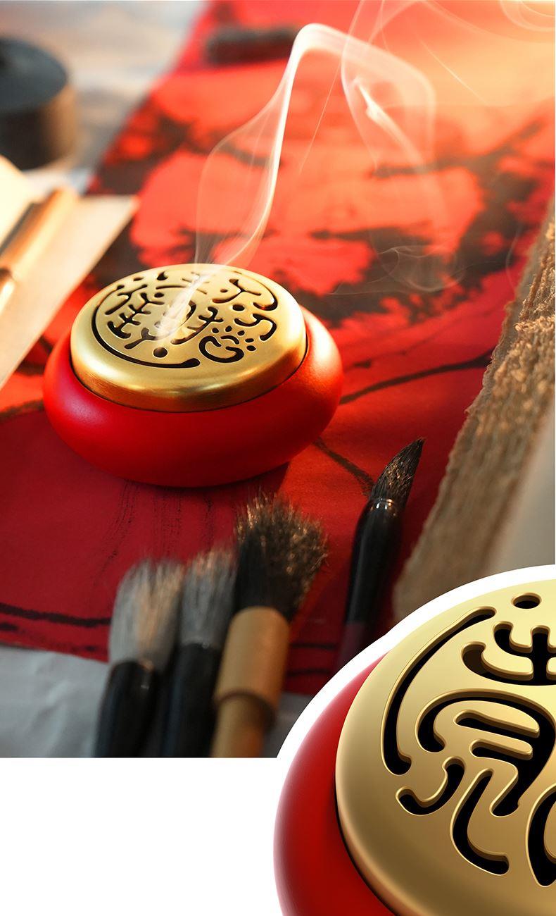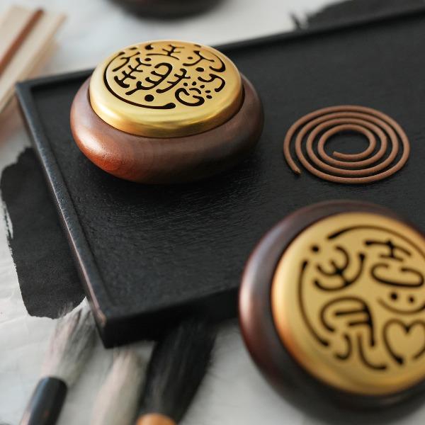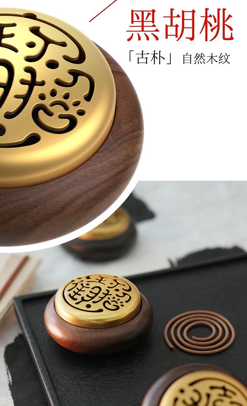复格中式香薰线香小团圆香炉座老山檀沉香实木室内居家香氛礼品