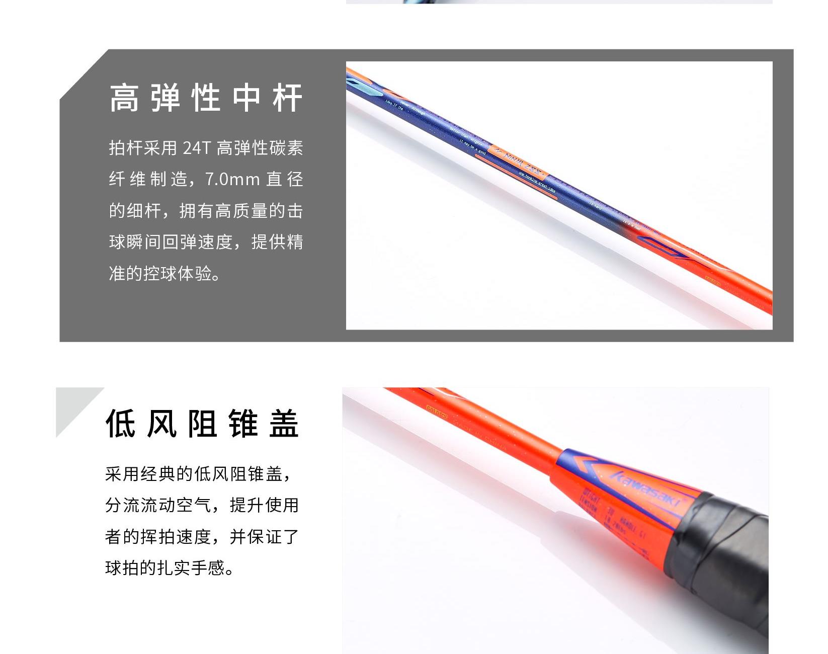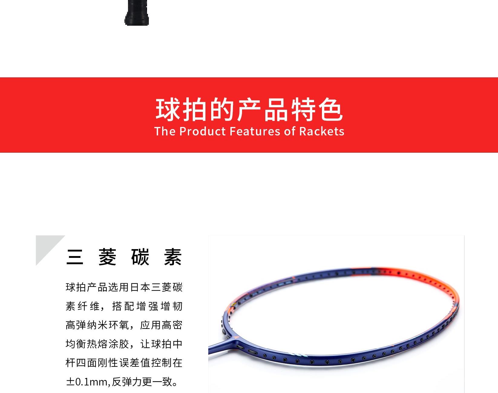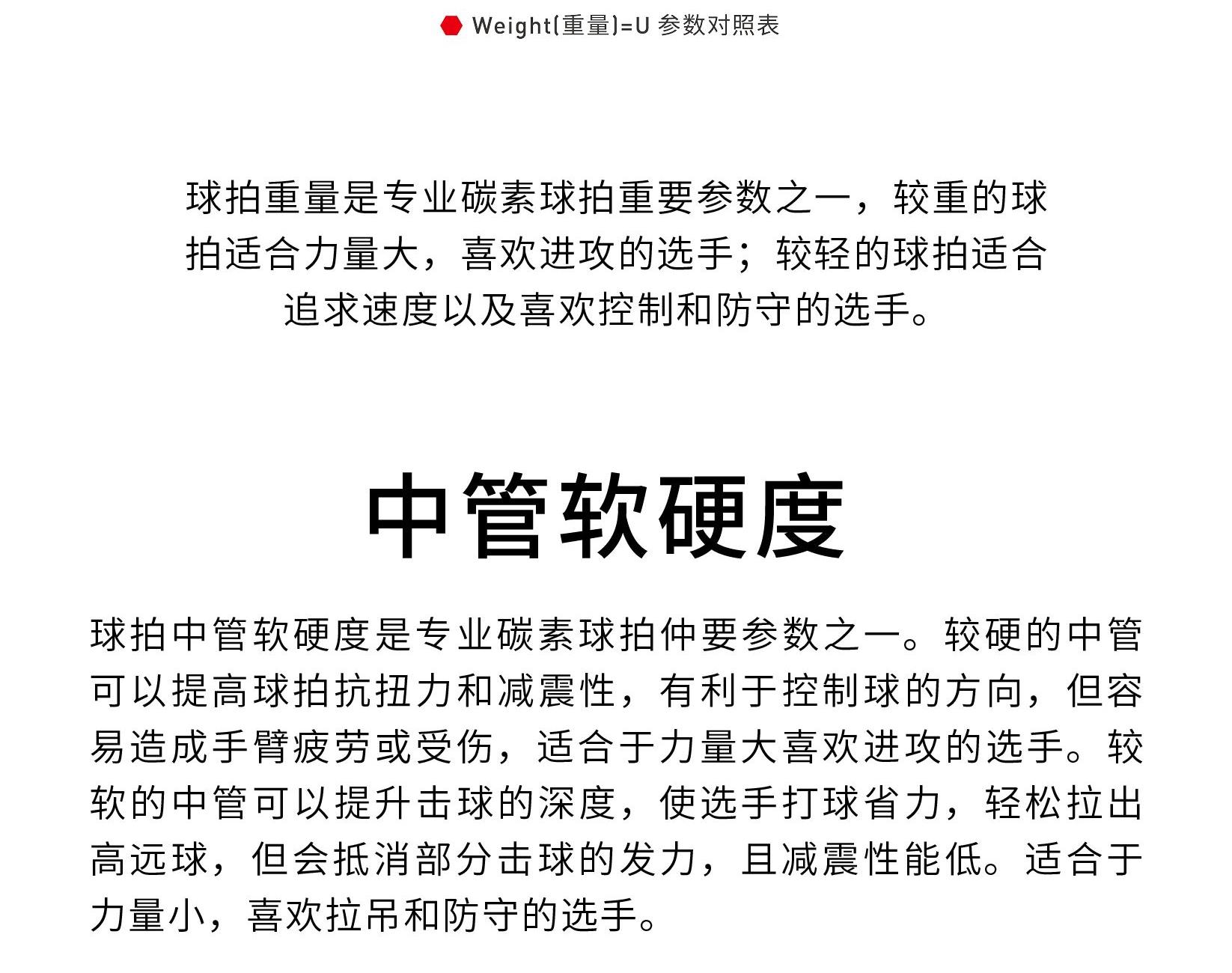 颜色:红色 材质: 铝合金 球拍重量: 1U(95-100g) 拉线磅数:18-28LBS 1.全新设计理念,强调提升引拍速度,具有别具一格的速度感 2.绚丽耀目的涂装,让球拍充满活力 3.内凹槽设计,在不增大拍框面积的基础上增加甜区面积 4.超细弹性中杆,攻守必备 5.实木减震手柄,有效吸收球员击球时产生的拍体震动