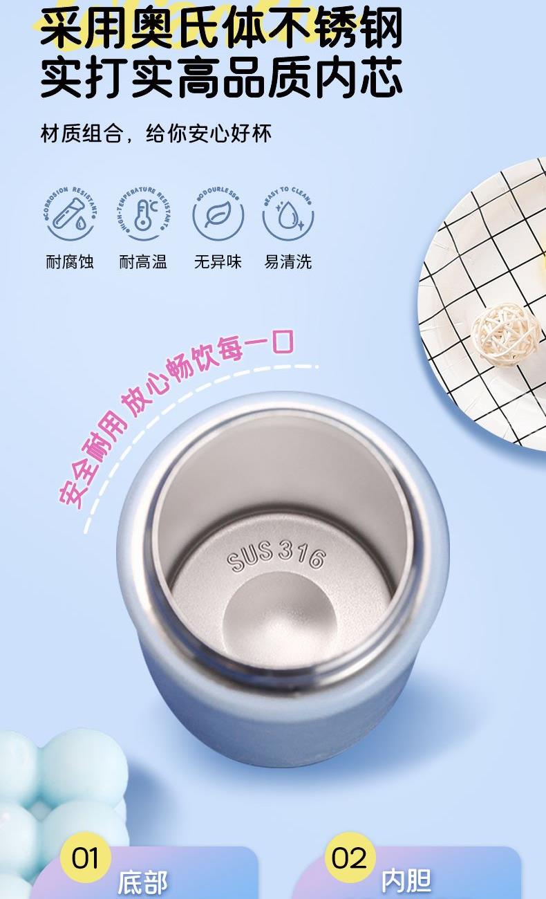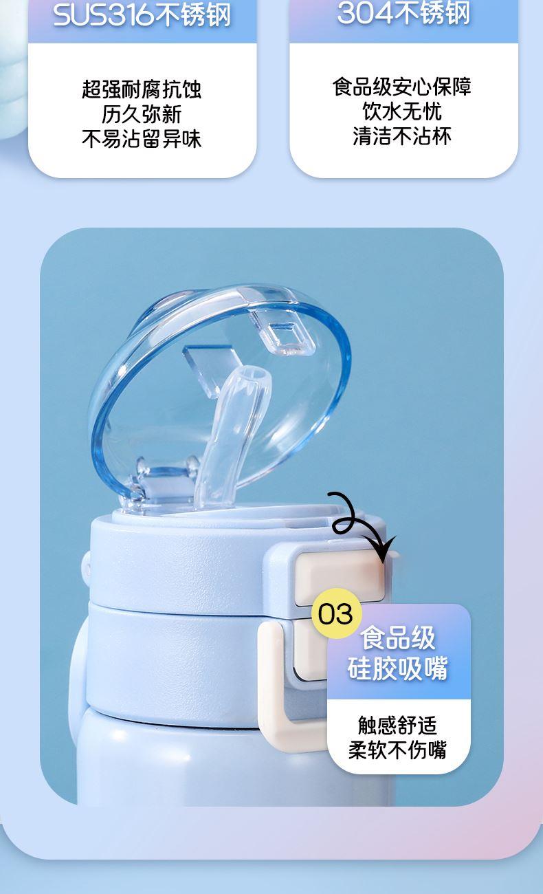 材 质:杯底SUS316 内胆SUS304 容 量:500ml 彩盒尺寸:8.1*8.1*24 外箱尺寸:85*43*26 1. 采用奥氏体304不锈钢内胆,保温高效,材质健康可靠 2. 双饮设计(吸管/直饮),冷热皆宜;大口径杯口,清洗方便 3. 杯身耐磨坚硬,护杯性强,手感舒适,造型时尚前卫