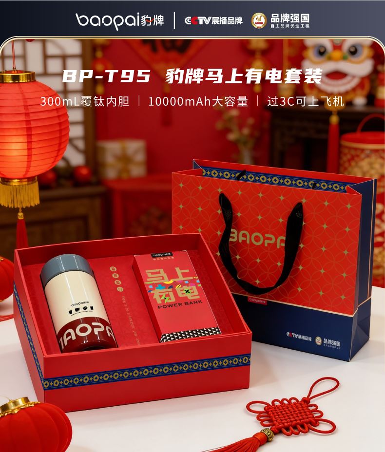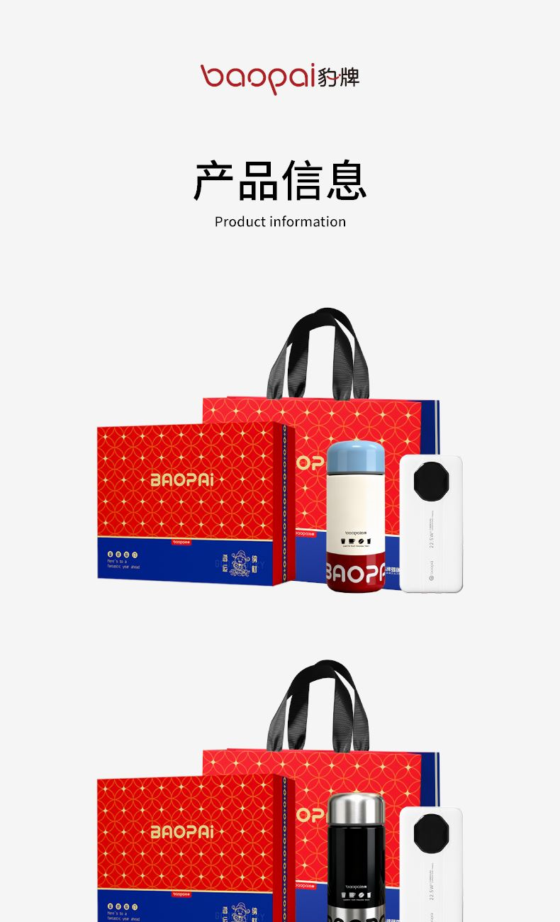 快充充电宝 10000Ah大容量充电宝*1+300ml覆钛保温杯*1 Micro输入:5V--2A USB 线输出:5V--4.5A 输出功率:22.5W 产品尺寸:160*65mm 产品材质:覆钛涂层+304不锈钢、 产品容量:300ML 箱:20PCS 礼盒尺寸:250*200*75mm 礼袋尺寸:265*85*215mm 外箱尺寸:520*397*470mm