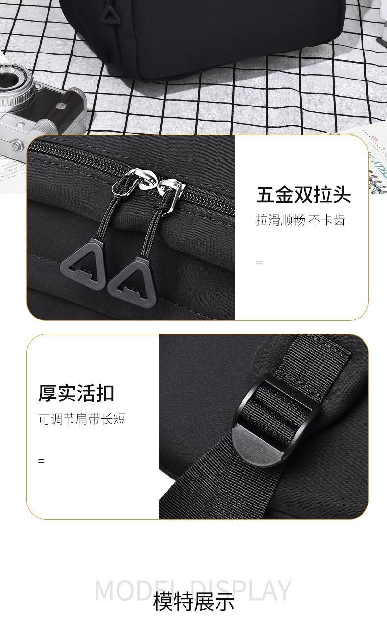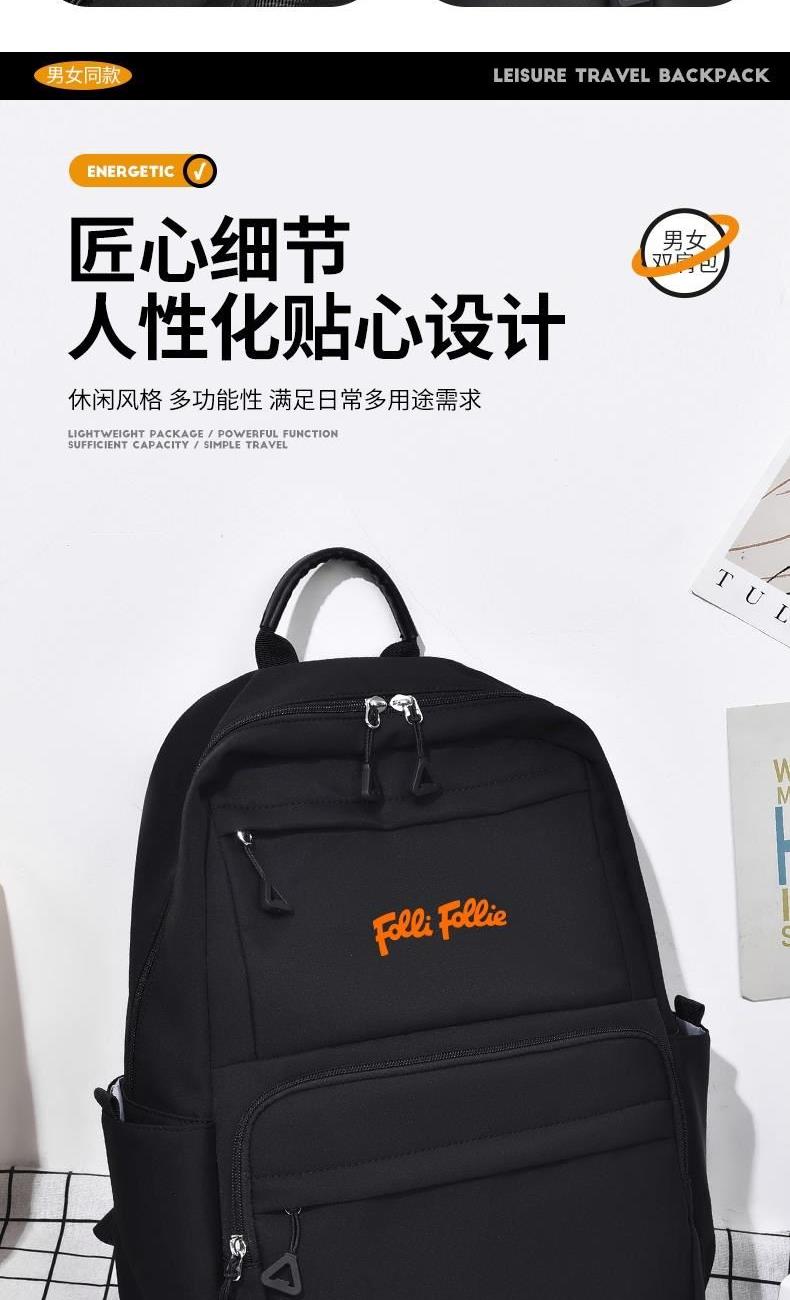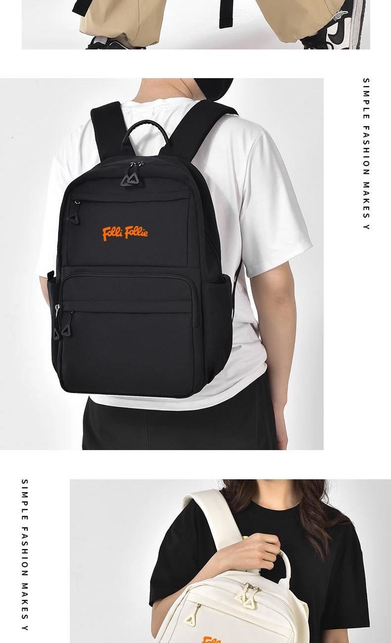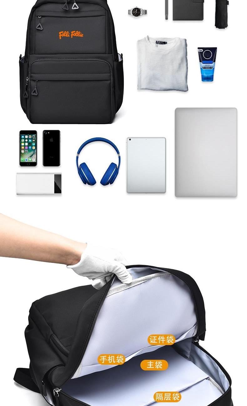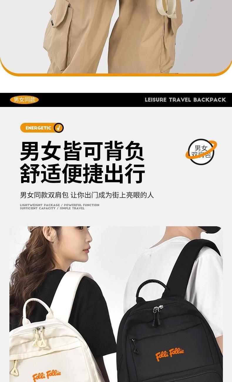 舒适便捷;精简外观设计,潮流休闲与旅行满足你所想; 优质高密度复合面料,柔润透气,防泼水耐脏; 人性化大容量多置物袋设计,男女同款皆可背负; 型号: FF-Y004A 面料材质:斜纹复合面料 里布材质:210D涤纶 尺寸: 43*30*13CM 颜色:黑色,米色 结构:主袋、前置拉链袋,后背拉链袋,侧置袋,内插袋