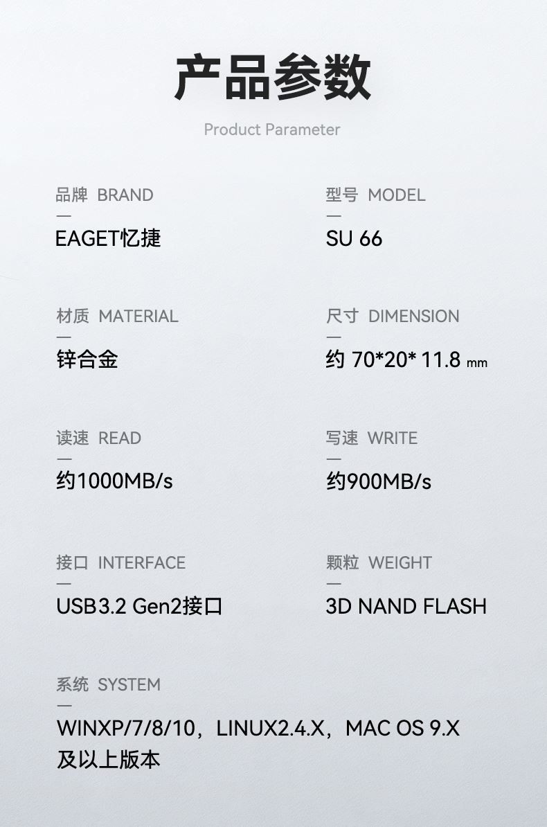 忆捷(EAGET)SU66超极速固态U盘1TB