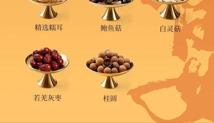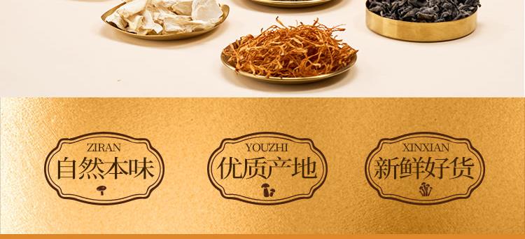 精选糯耳80g 黑木耳100g 香菇100g 虫草花100g 鲍鱼菇150g 白灵菇100g 桂圆250g 若羌灰枣288g*2