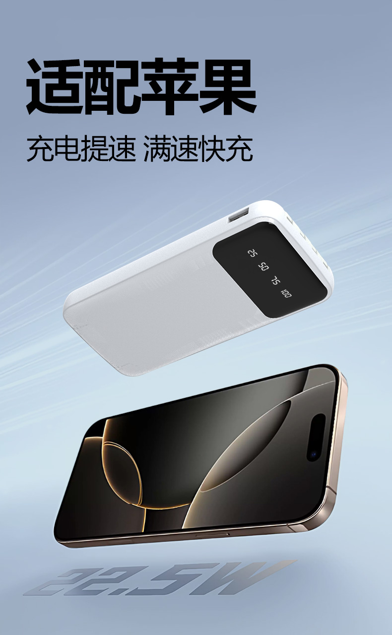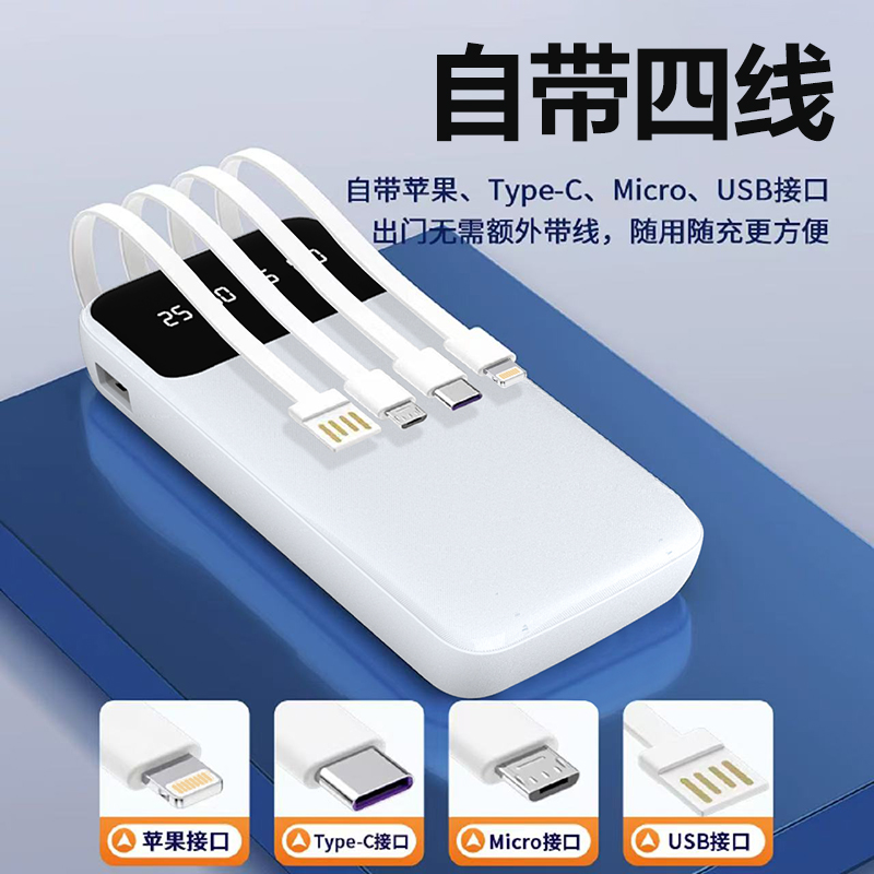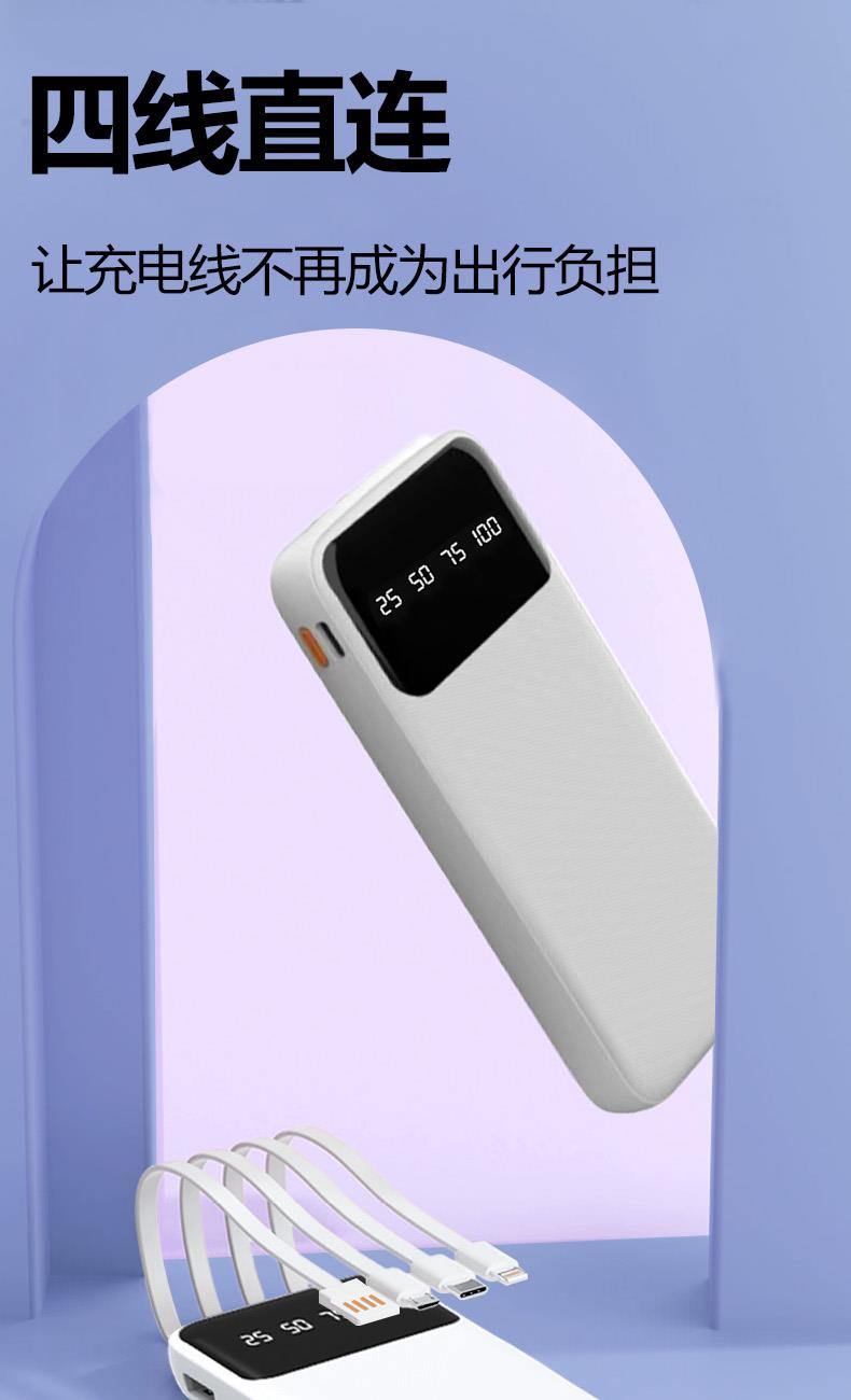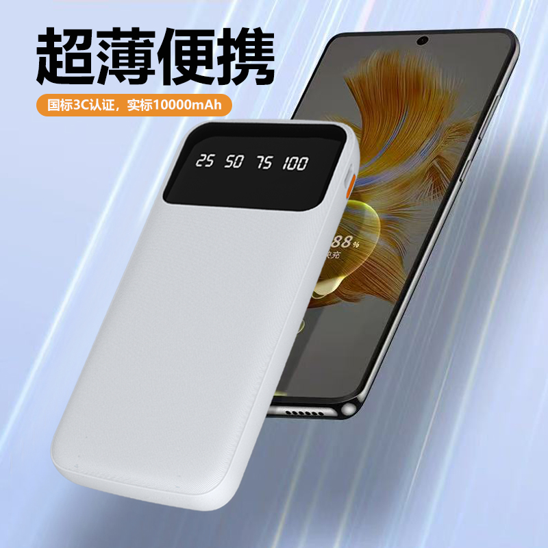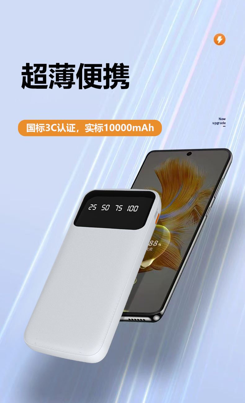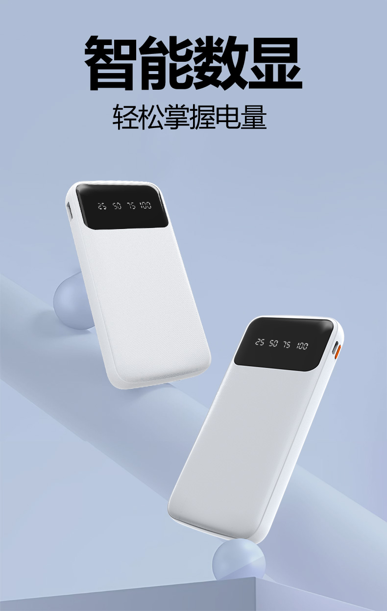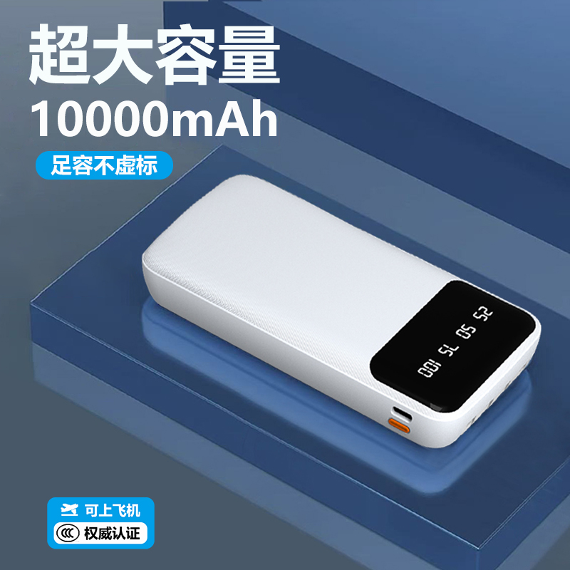标称容量:10000mAh(3.7V/37Wh ) 输入Type-C口5V⎓2.1A 输出USB口:5V⎓2.1A 输入USB线:5V⎓2.1A 输出Type-C线:5V⎓2.1A 输出Micro线:5V⎓2.1A 产品颜色:白色 产品尺寸:147*68*21mm、 包装尺寸:178*108*35mm 单个净重/毛重: 216g/336g 材质:ABS
