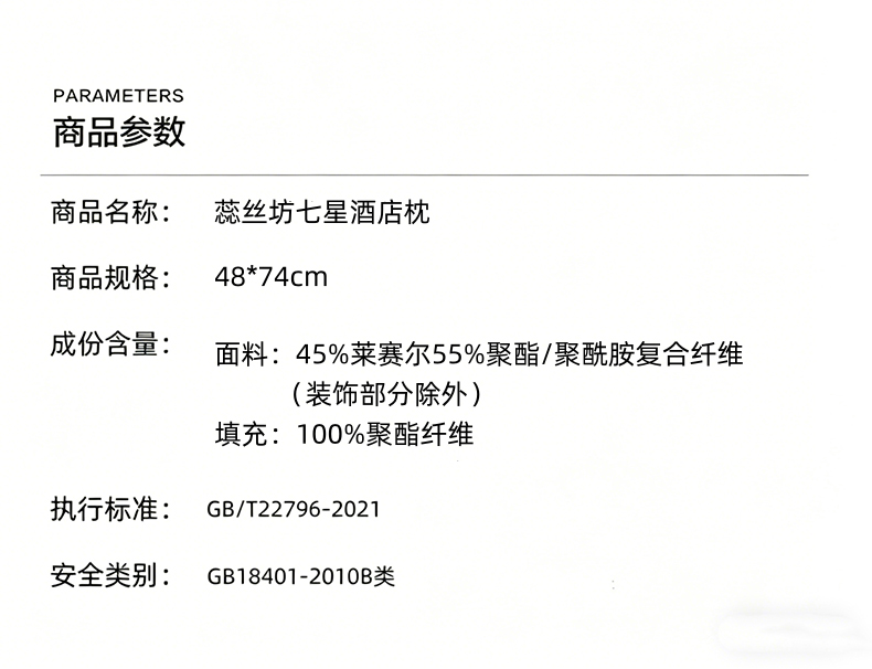 规格:48*74cm 面料:45%莱赛尔55%聚酯/聚酰胺复合纤维(装饰部分除外) 填充:超细羽丝棉 ✅ 丝滑面料 无声包裹;亲肤柔顺又透气,高密度防止钻绒漏绒; ✅ 翻身更安静,减轻翻身时的枕芯摩擦噪音 ✅ 超细羽丝棉填充,5 秒慢回弹,强支撑护颈 ✅ 持久蓬松不塌陷,翻身静音,给你酒店级睡眠体验