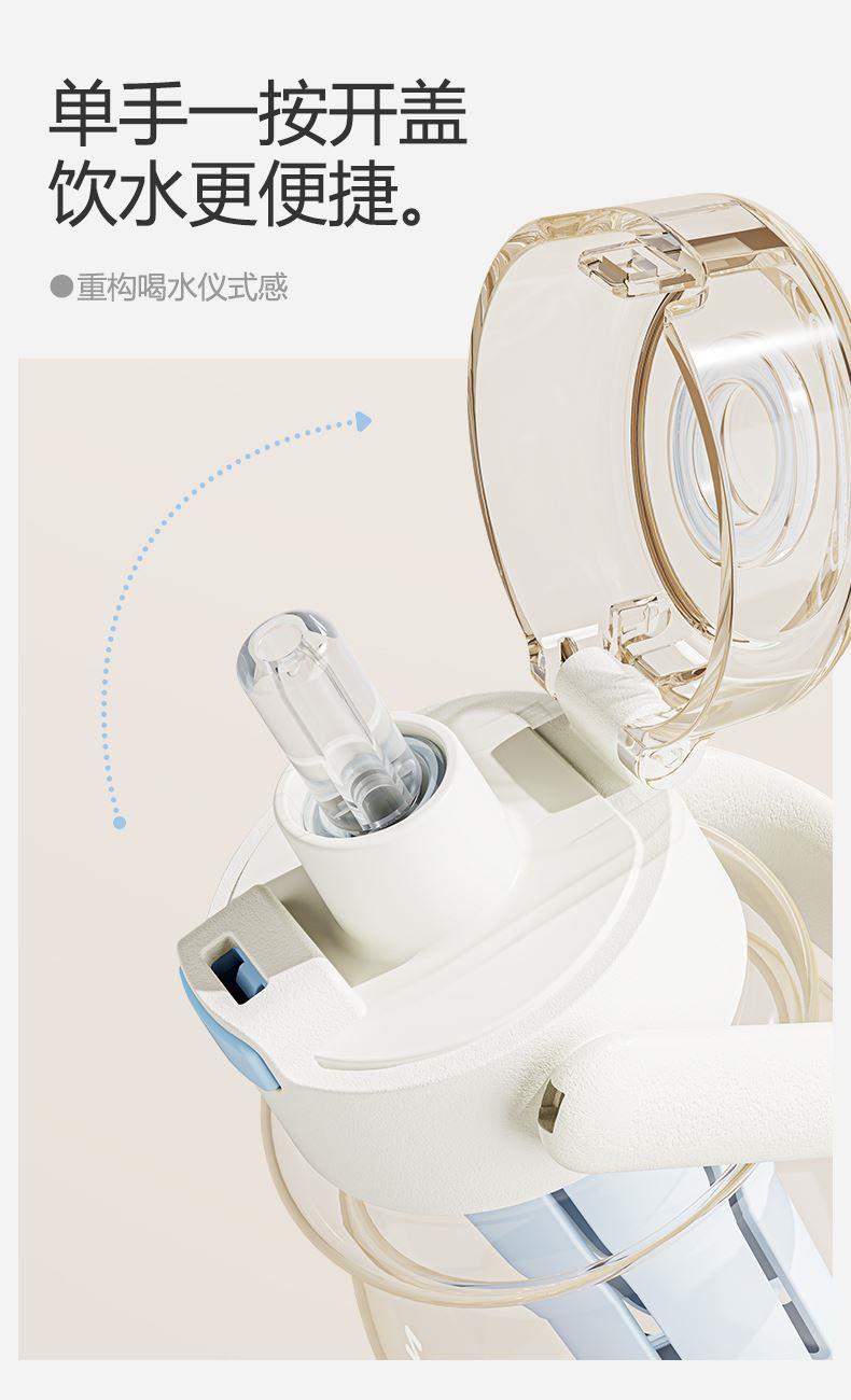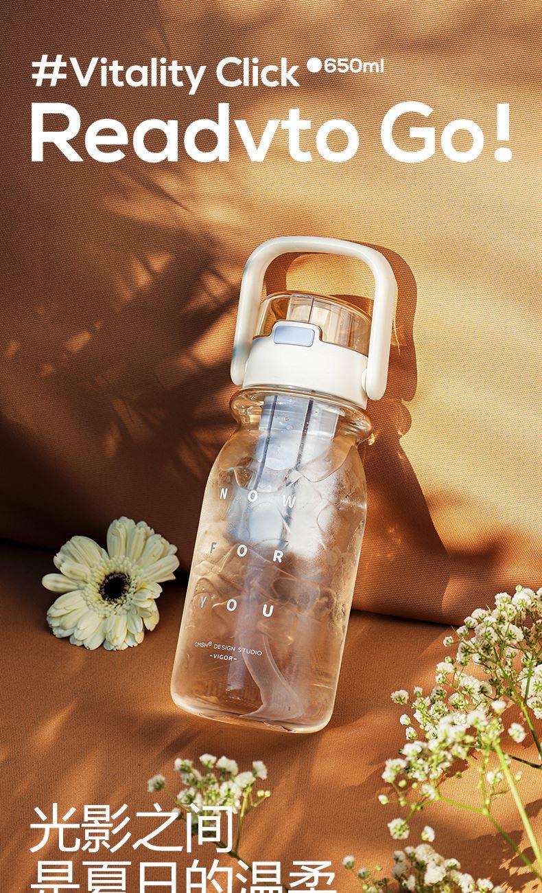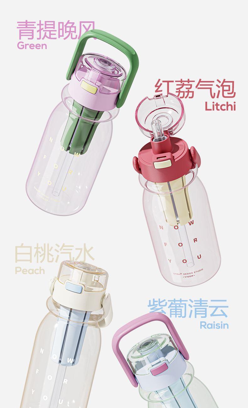 杯身材质:Tritan 杯盖材质:PC+PP 茶隔材质:PP 提绳材质:PC 产品容量:650ml 产品尺寸:80*80*242mm 产品净重:198g 产品颜色:白色,蓝色,粉色,枣红色 装 箱 量:48pcs 包装方式:独立彩盒包装 产品卖点: 650ml大容量 全天候补水无忧。 更出色,更自由:补充每日多巴胺。 一冲就干净,全身可拆洗,无死角。 每日新花样独立茶仓hin方便。 Tritan材质,不含双酚A饮水更安心。