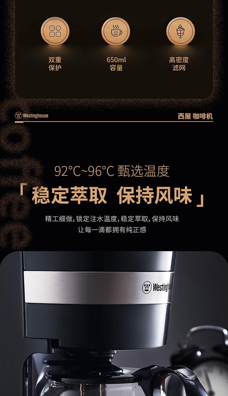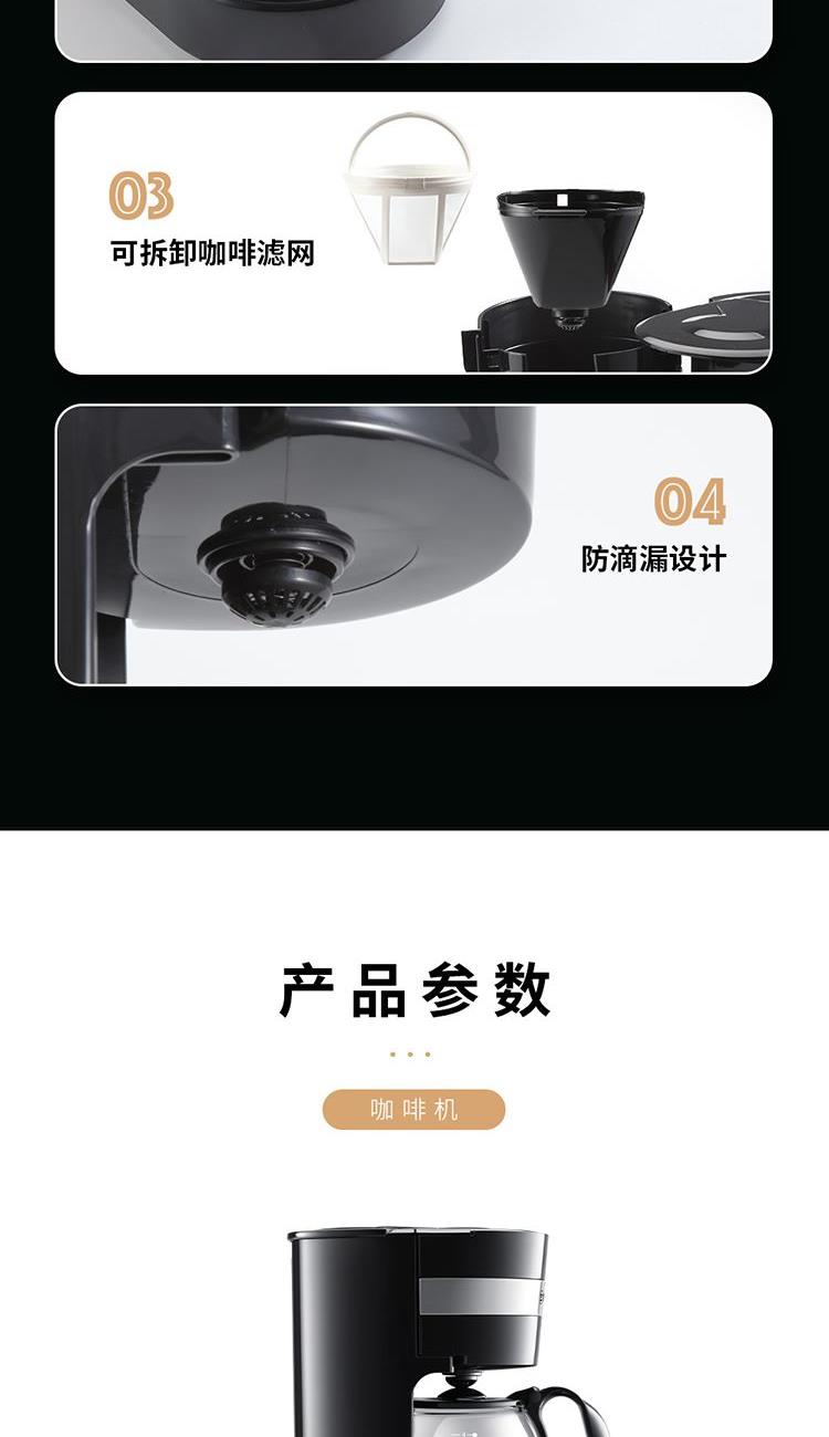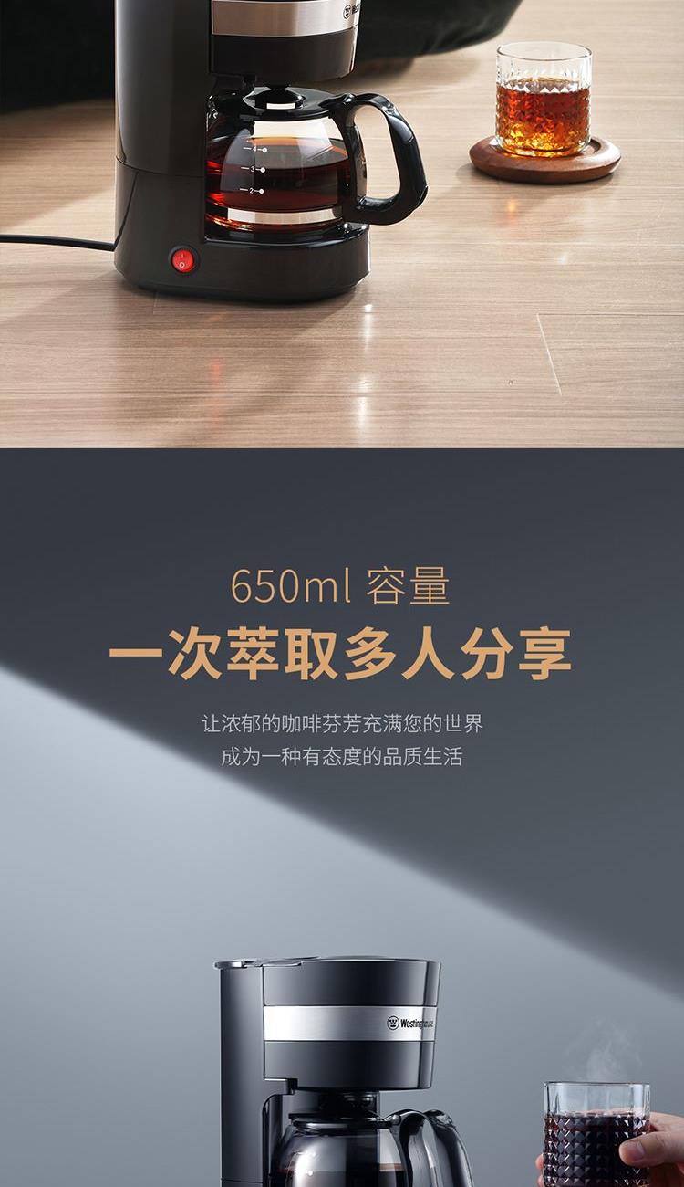 产品规格: 额定电压:220V~50Hz 额定功率:600W 额定容量:650ml 外壳材质:PP 操作方式:按键操作 产品颜色:黑色 产品特点: 92-96℃甄选温度,稳定萃取,保持风味; 5孔增压喷淋,水粉充分融合,萃取更香浓; 600W大功率,快速烧水,菁萃冲煮,无需久等; 650ml容量,一次萃取多人分享; 自动保温功能,温控器和保险丝双重保护; 防滴漏阀设计,取壶自动停止滴露,边煮边喝。