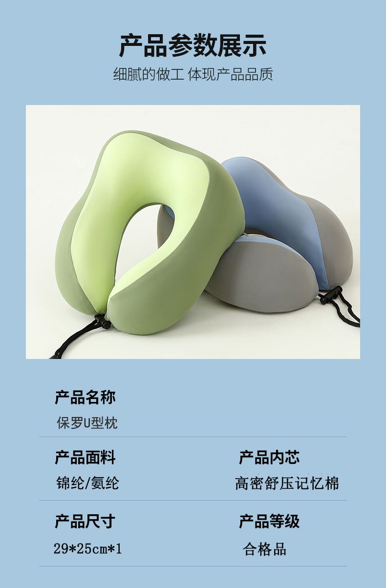 规格:29*25cm*1 面料:锦伦/氨纶 填充:高密舒压记忆棉 产品包装:精美礼盒 包装尺寸:30*29*13cm 特点:采用高密度记忆棉填充,具有很好的柔韧性和弹性,有效支撑颈椎。