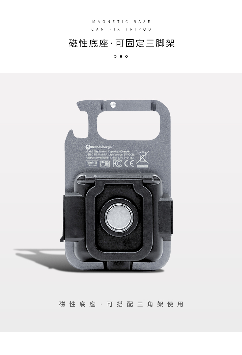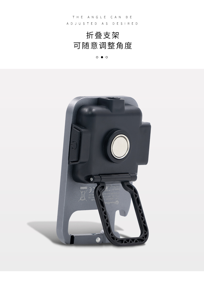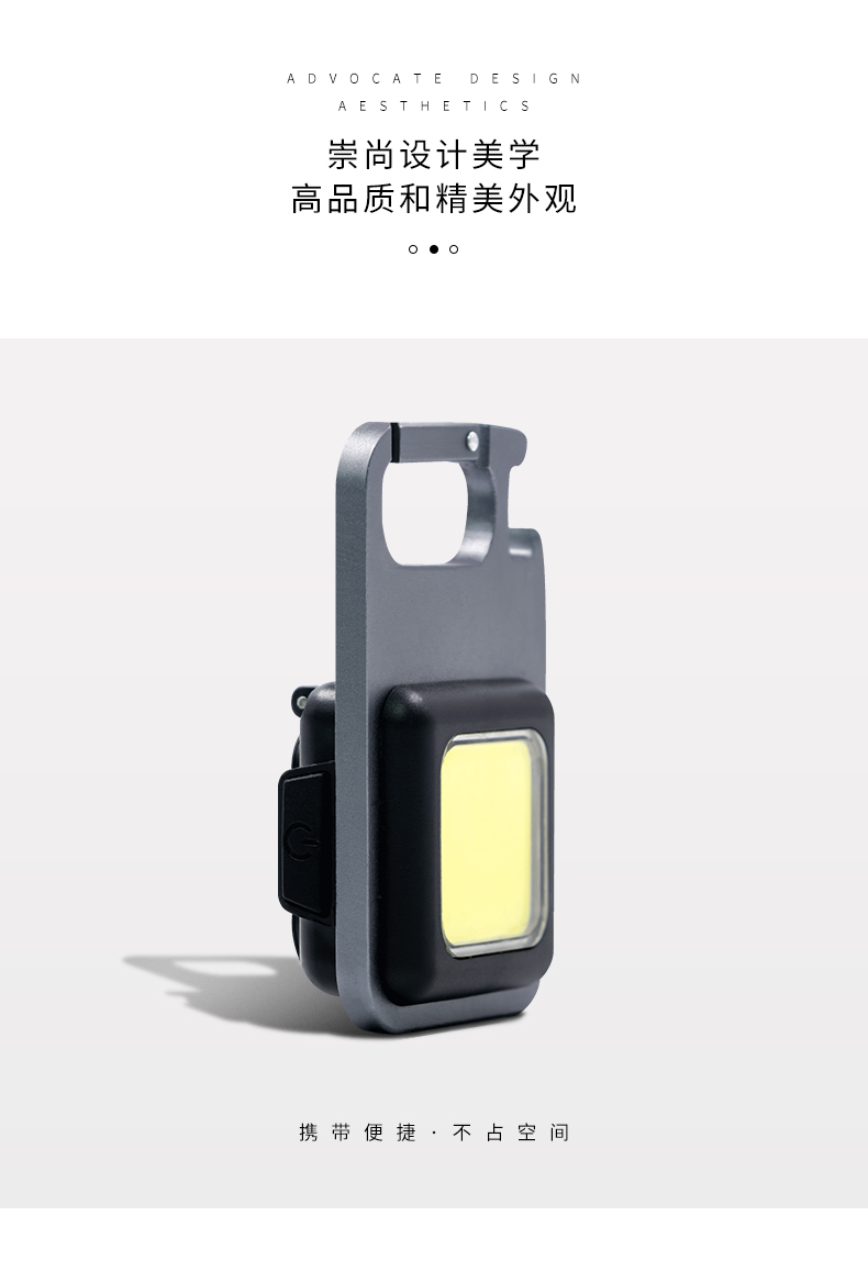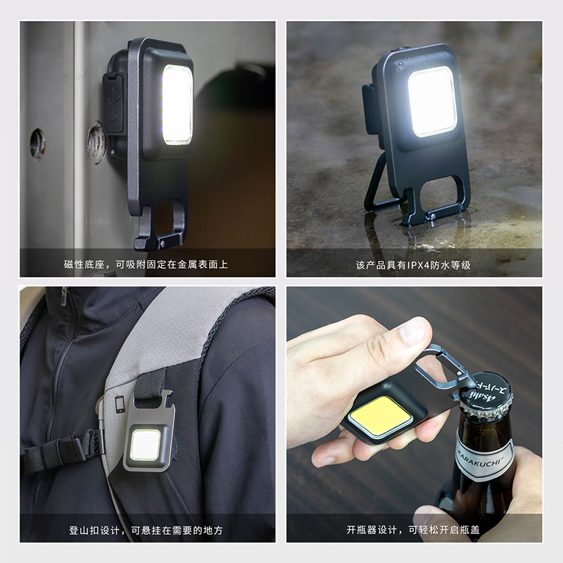 1、三档调节亮度,高亮,中亮,频闪急救。 2、USB充电,500毫安电池,持续5个小时亮度 3、500流明,超级亮,可照亮50平方房间 3、户外用途:可挂包上,钥匙扣、开瓶器、相机支架用于补光灯,背后磁吸固定 4、4级防水设计,雨中一样轻松使用 5、全身为会收铝制成,真环保♻♻♻ 6、可以斜挎,可以挂脖子 7、尺寸: 7.3x4.6x2.2厘米