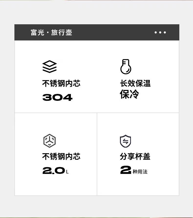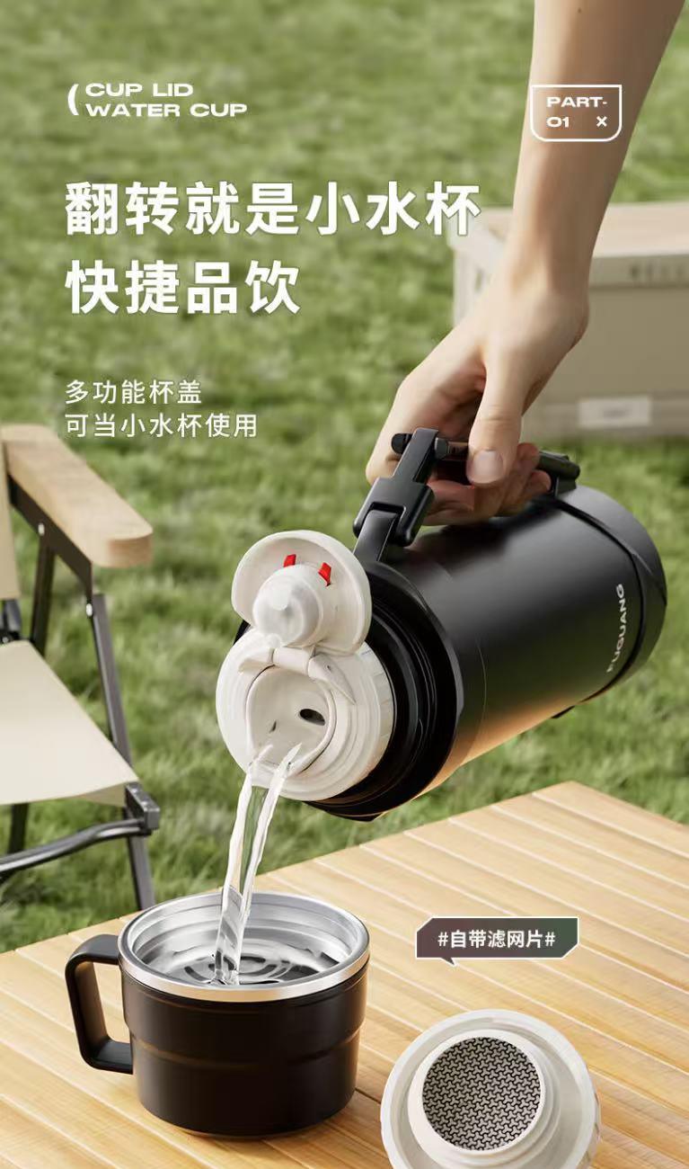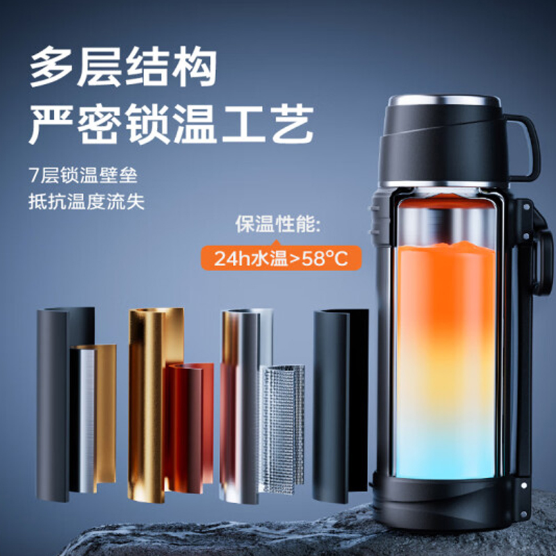 颜色:本色、黑色 材质:304奥氏体不锈钢外胆、无尾抽真空超长保温,伸缩提手以及可拆卸背带。 全钢带手柄分享盖,饮水更方便,杯盖304不锈钢滤网,饮水更健康。 尺寸:34*9.6cm 包装:单瓦盒