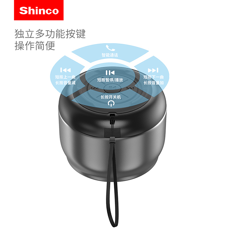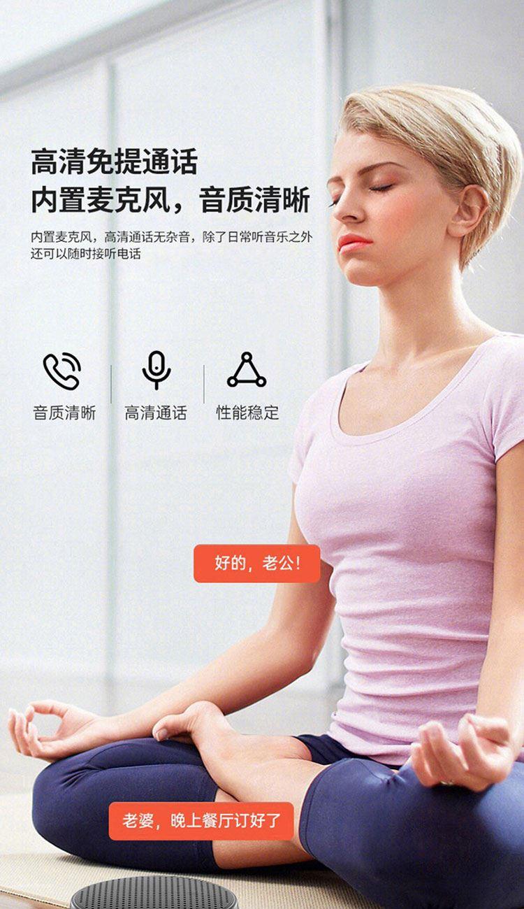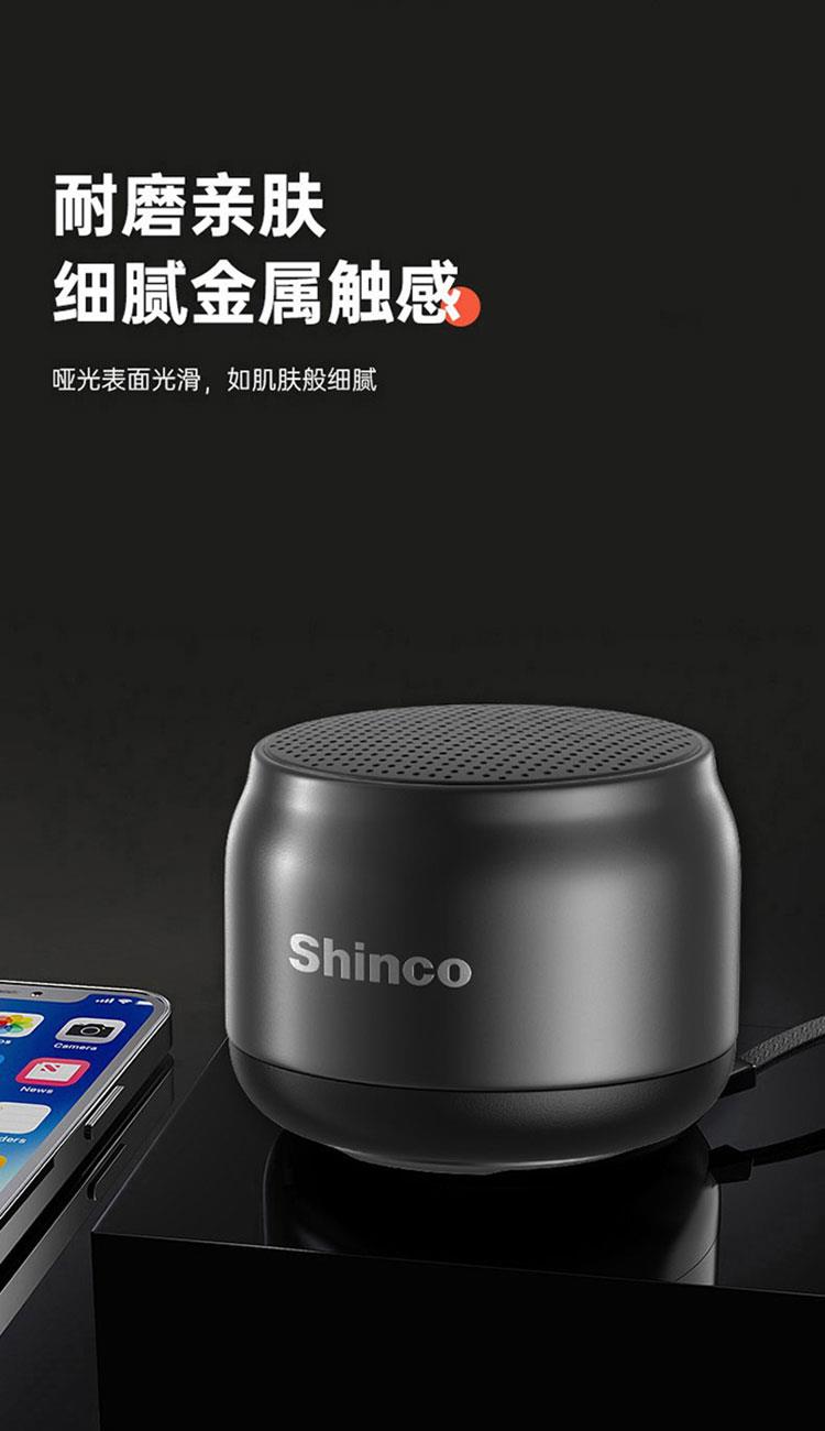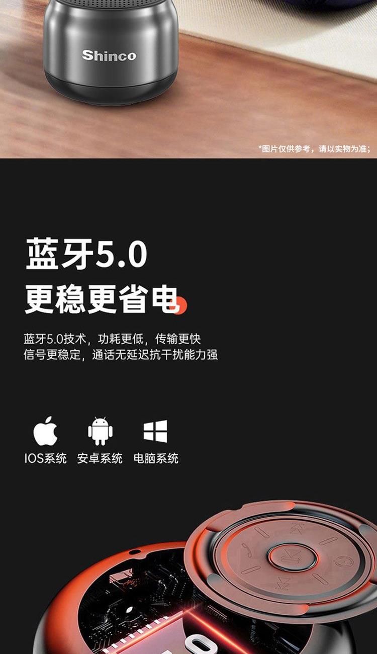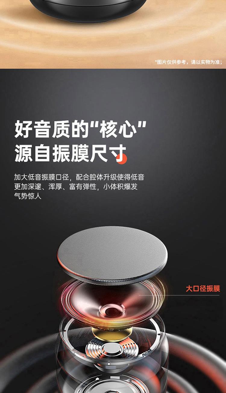 充电电压:DC 5V 输出功率:3W 蓝牙连接距离:10米 蓝牙版本:5.0 电池容量:800mAh 1:年轻人的态度,HIFI音质,尽情享受音乐的美妙 2:好音质的“核心”源自振膜尺寸,加大低音振膜口径,小体积爆发气势惊人 3:岂止强重低音,更有美妙人声,高频是声音的细节反映,重磅升级喇叭,带来丰富的声音细节 4:360°环绕音效,小身材大音量,轻松覆盖房间的每个角落