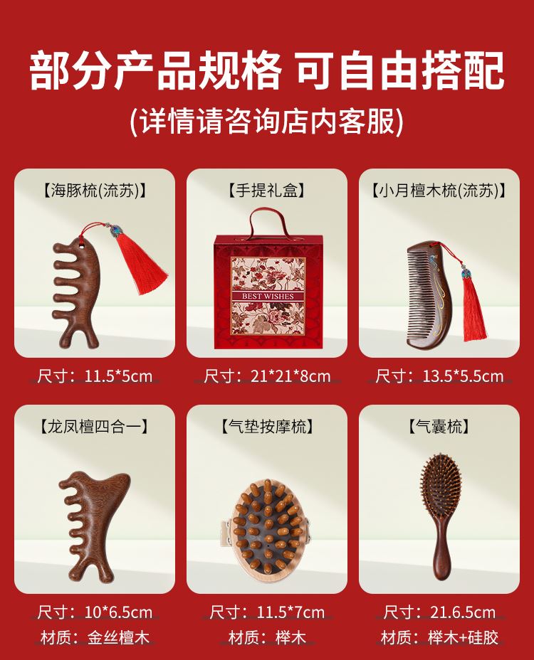 编码:DAL1192 内配:气囊梳+五指檀木梳+仿真丝眼罩+小月檀木梳 注:报价只对应主图款, 详情页其他款报价请具体联系
