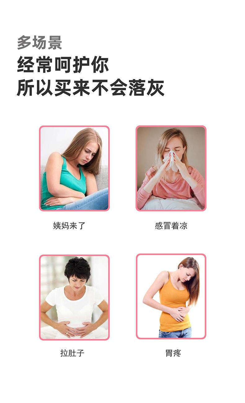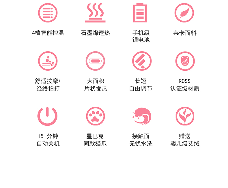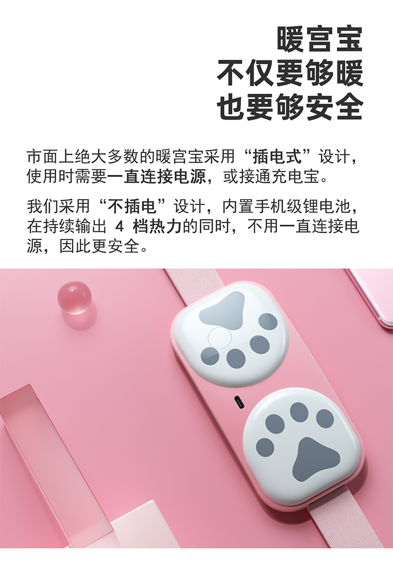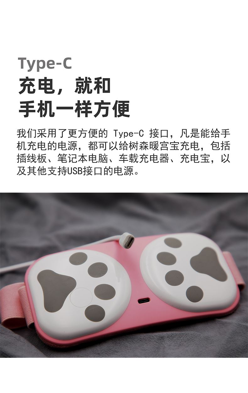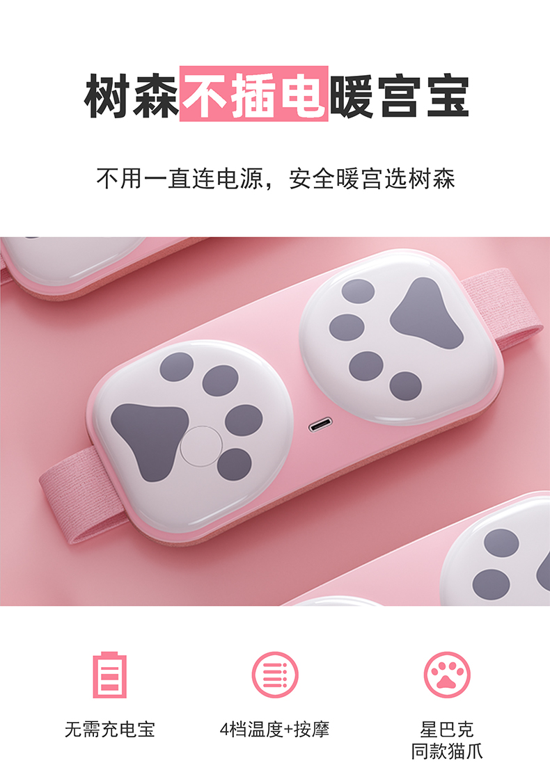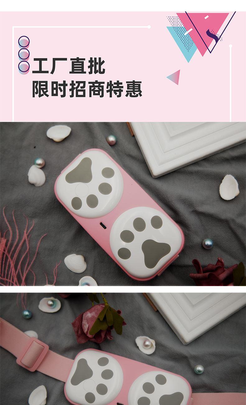 主体材质:ABS 功能模式:4种 额定电压:5V 电阻:4.5欧 电池类型:聚合物锂电池 电池容量:1800AM 充电时长:1小时 使用时长:>160分钟 单次循环时长:15分钟 尺寸:15*8*1.0cm 重量:140g 额定功率:5W ✨石墨烯速热 + 4 档控温 升温超快,温度随心调,暖得均匀又深入,寒气湿气通通赶走,暖到骨子里超舒服。 🐾经络拍打按摩 + 热敷二合一 一边热敷一边按摩,像真人手法一样揉捏拍打,肩颈、腰腹、关节都能用,放松解乏一步到位。 🛡️智能自动关机 贴心防忘关,躺着热敷、睡着按摩都安心,安全又省心。 🧼可水洗设计 + 可调节绑带 脏了可水洗,干净卫生;松紧自由调,大人小孩全家都能戴,贴合不滑落。 🔋长续航 + 便携好用 充一次用很久,无线便携,居家、办公、外出都能暖敷。 ✅专业 ROSS 认证 + 赠艾绒 品质靠谱有保障,搭配艾绒使用,暖敷效果加倍,养生更到位。 🐱星巴克同款猫爪颜值 软萌猫爪造型,自用提升幸福感,送家人、送朋友都超有面。