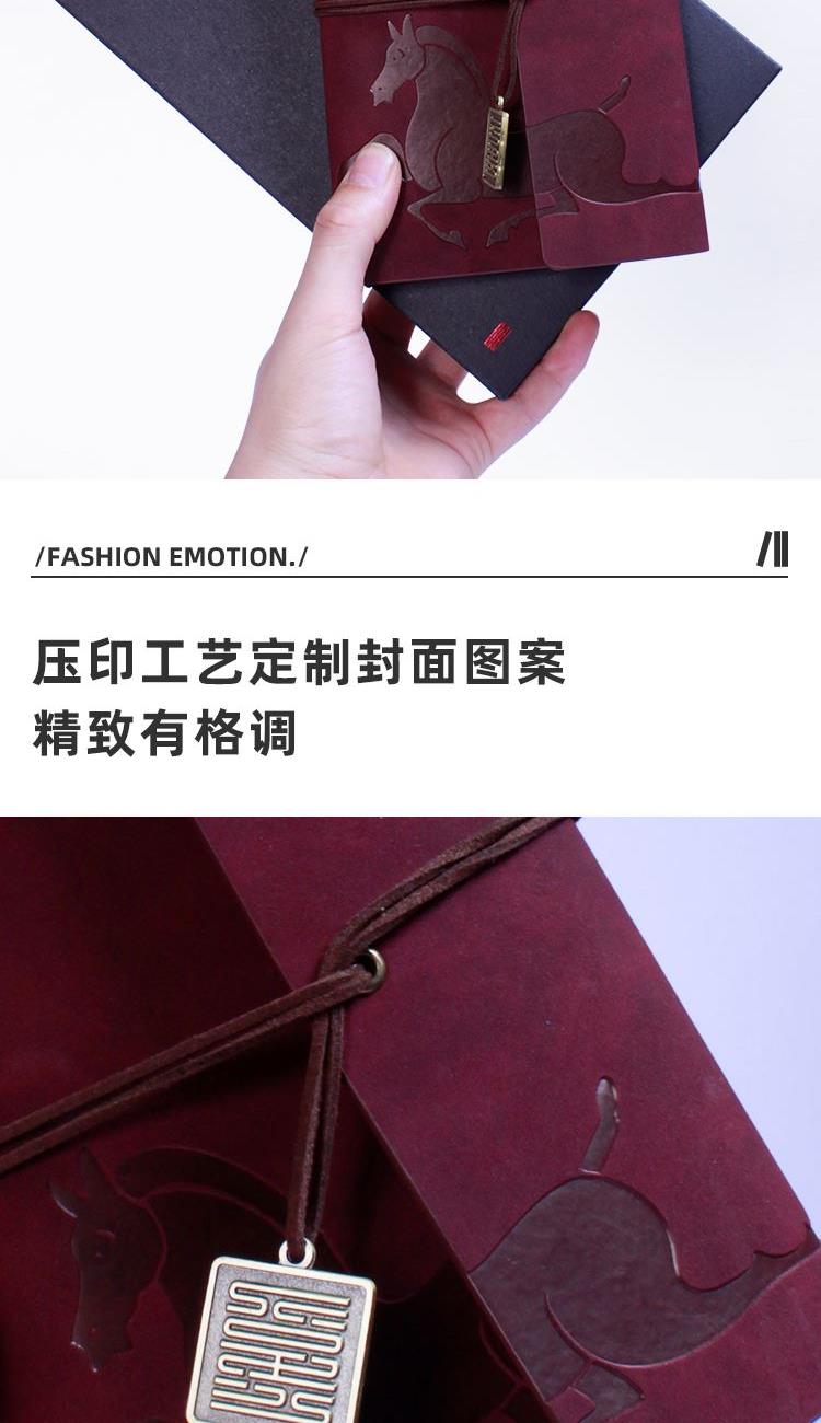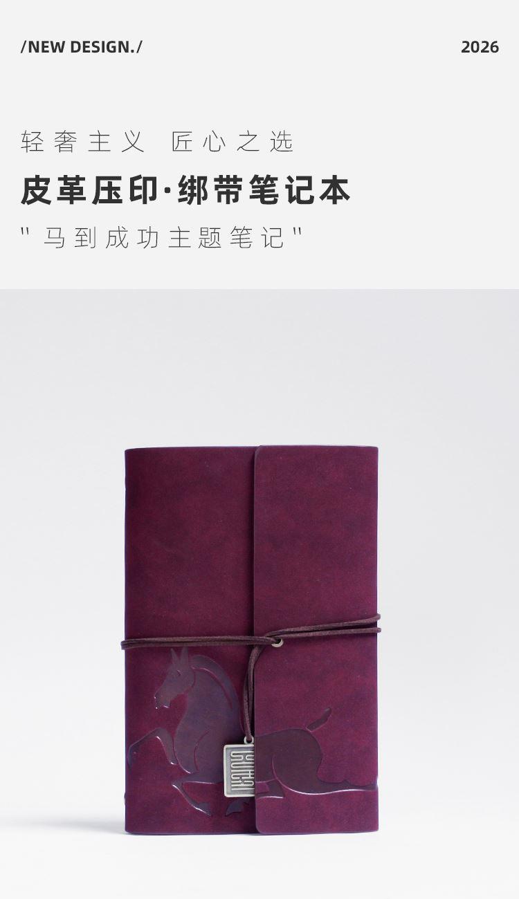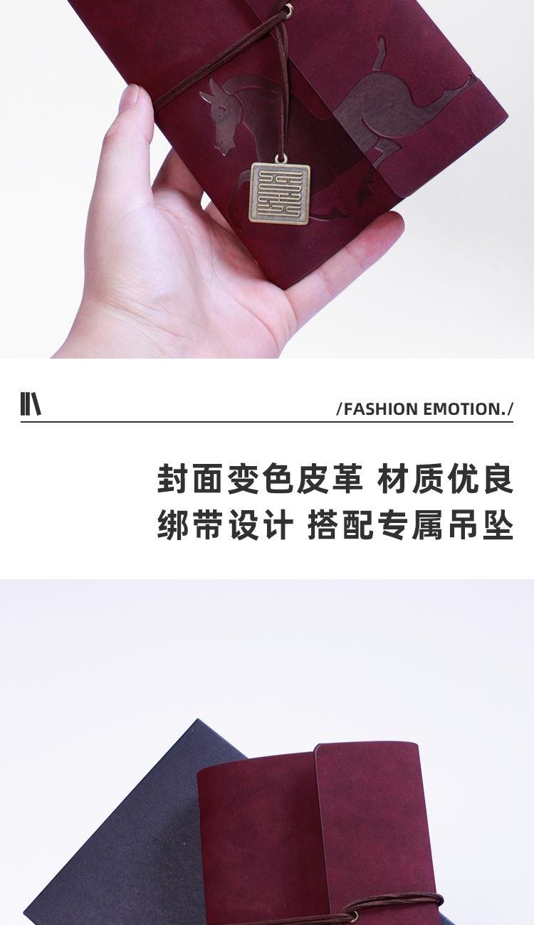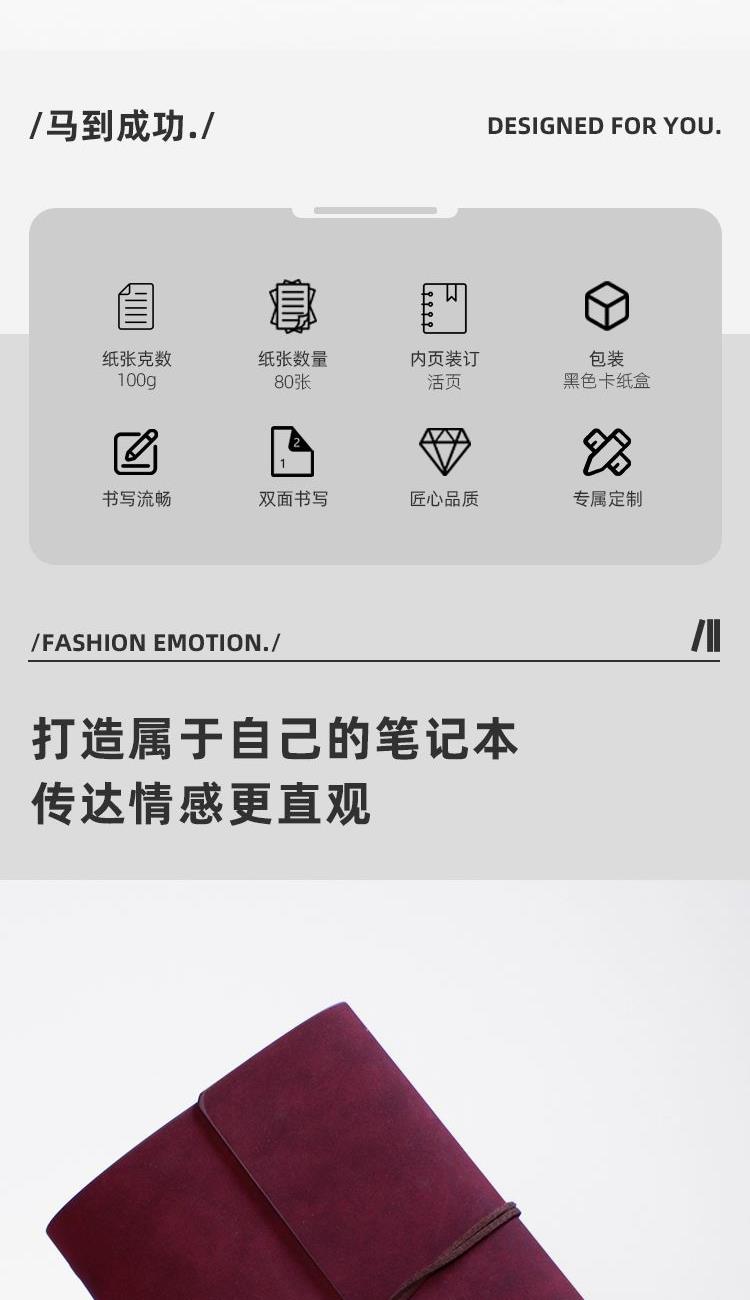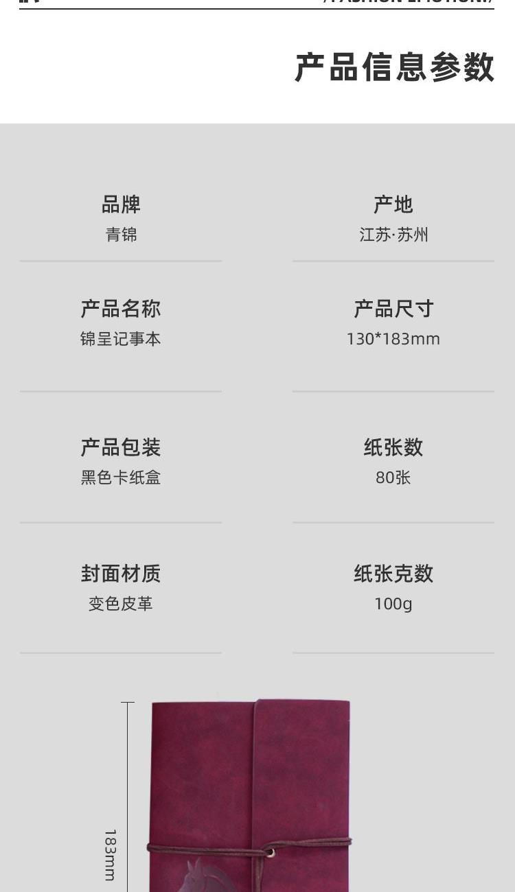 配置 锦呈记事本*1 黑卡纸盒*1 材质 变色皮革 千越象牙白纸100克80张 定制工艺 激光 镭射 马到成功马年专属版 尺寸 笔记本 :130*183mm 礼盒:230*152*28mm