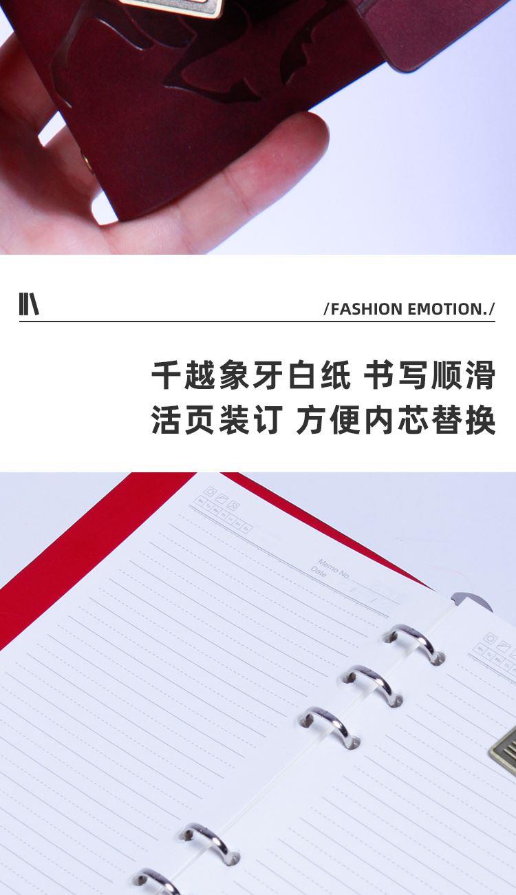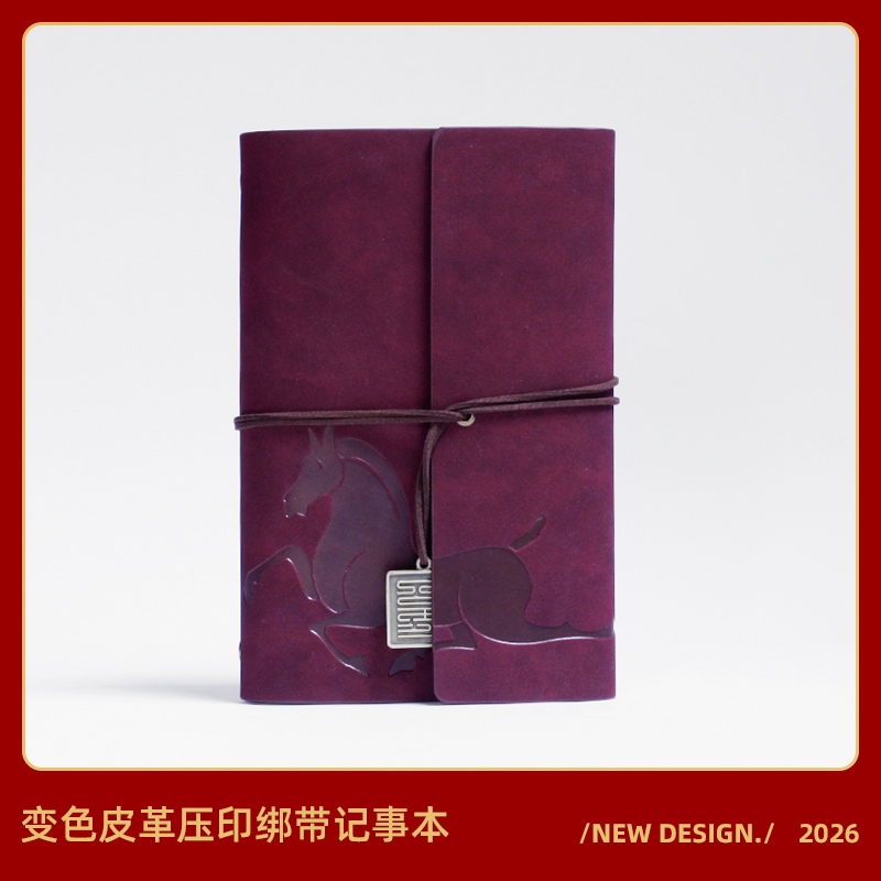 青锦2026【锦呈】变色皮革绑带活页记事本黑色卡纸盒包装
