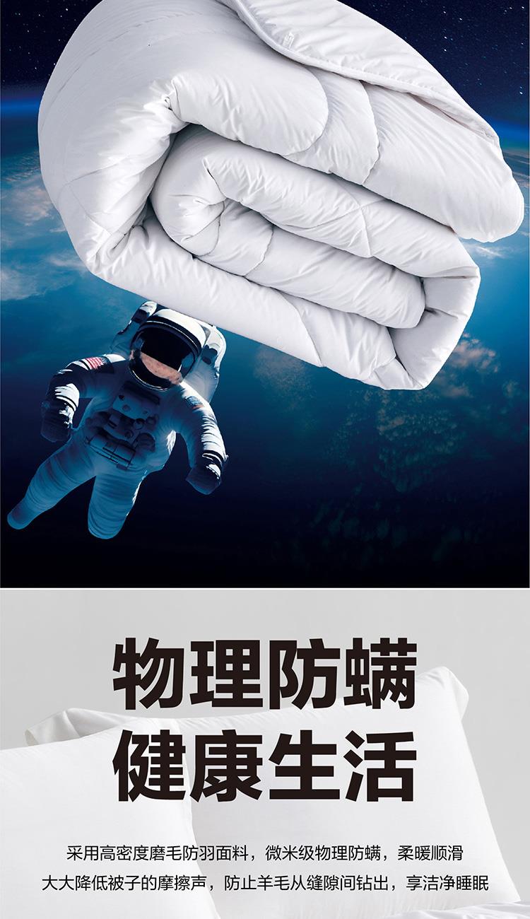 填充物精选澳大利亚羊毛填充,毛质柔软细腻,吸湿能力强,恒温保暖,天然回弹性佳带来舒柔温暖的睡眠体验!