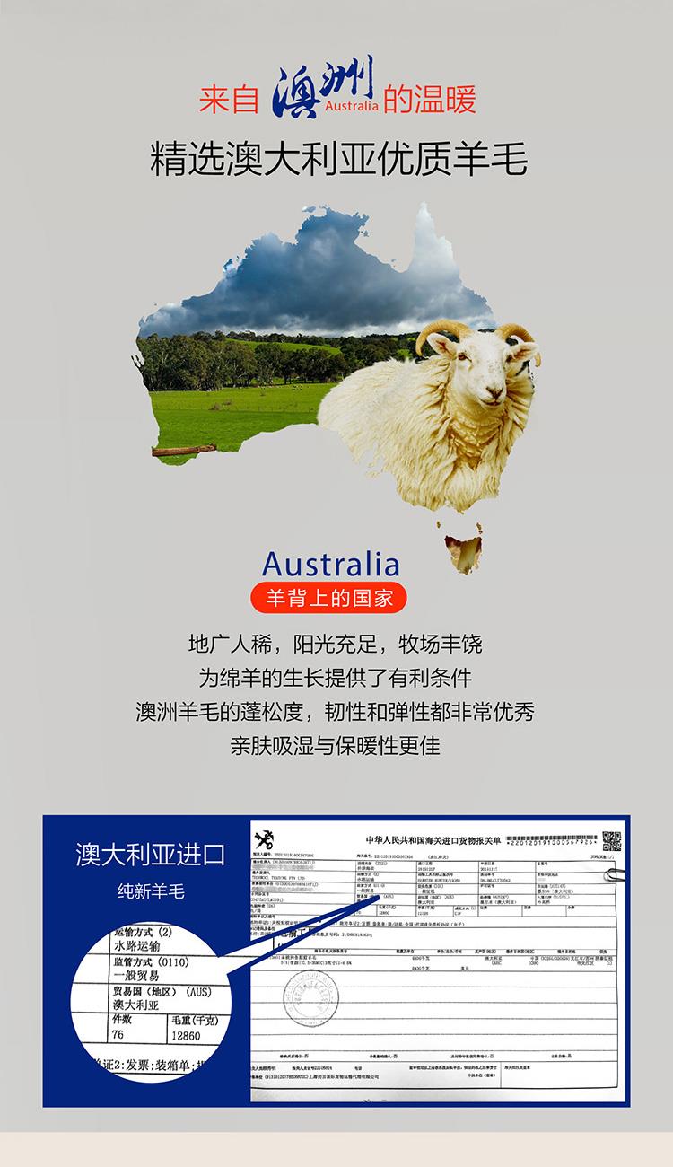 填充材质:羊毛(产地澳大利亚)