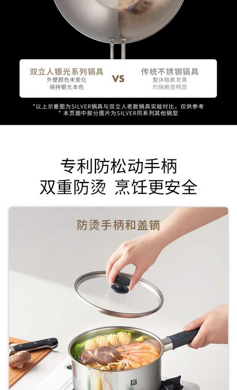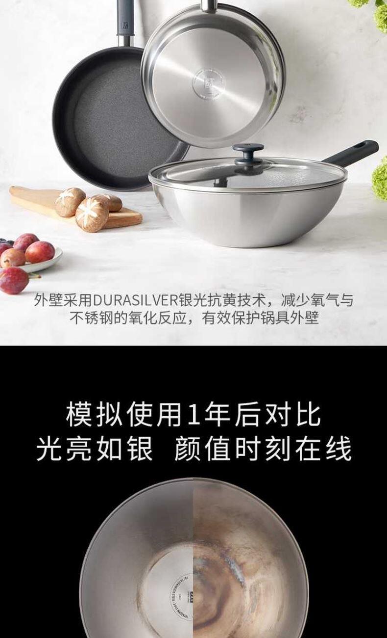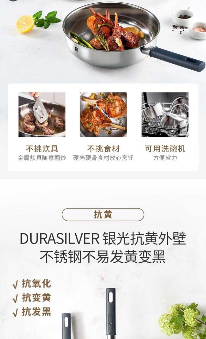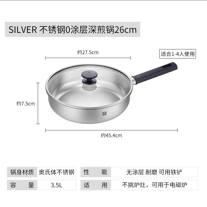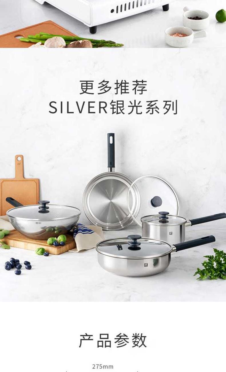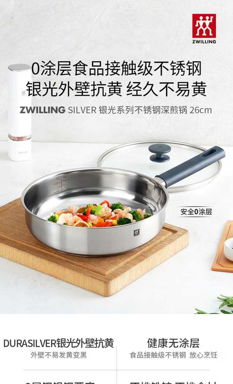 • 双立人SILVER银光系列26cm不锈钢0涂层深煎锅