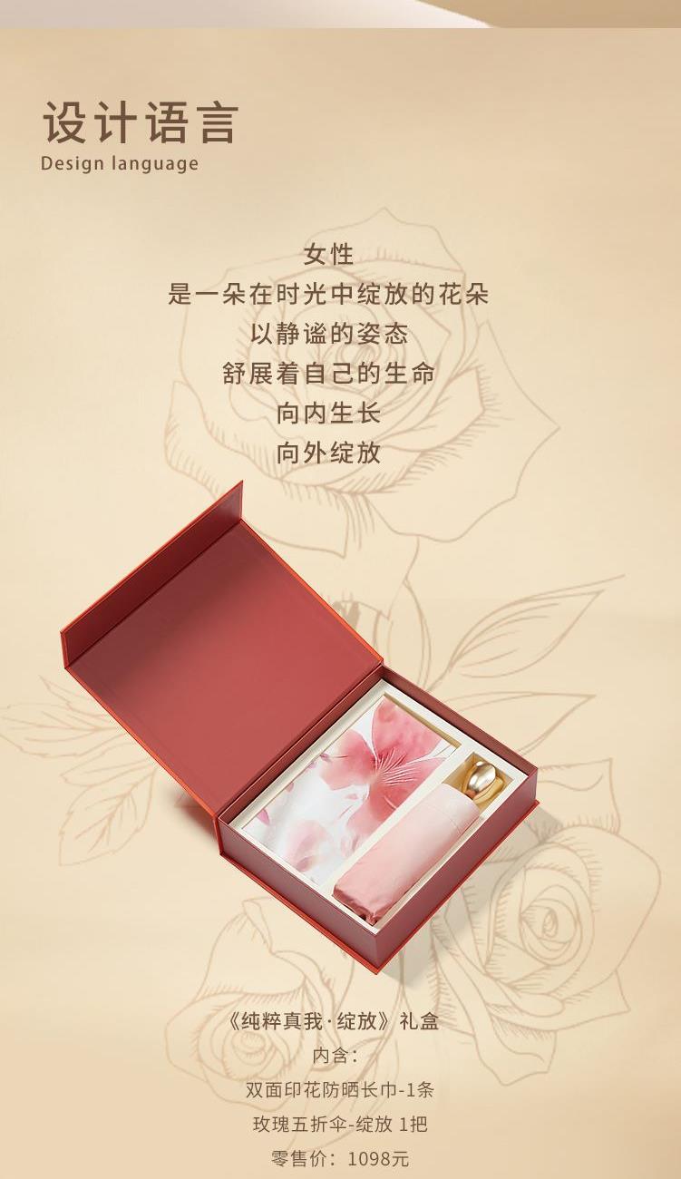 编码:CWMA09058050 礼盒内含:防晒长巾(698)*1 玫瑰五折伞-绽放*1