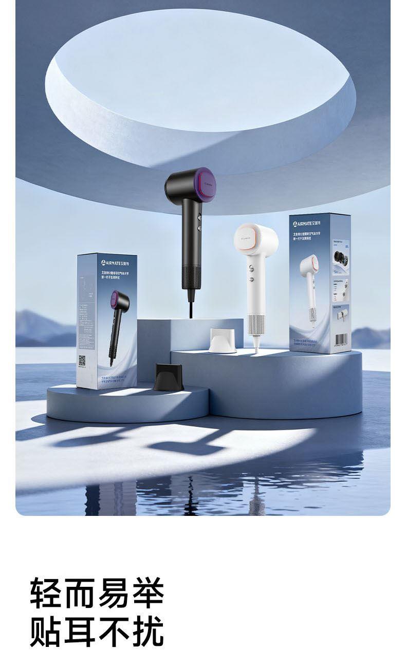 额定功率:1600W 电机转速:110000rpm 风速:两档风速 温度:低温、高温、循环 产品净重:0.46kg 风速:65m/s 护发:40亿等离子 电机:11万转高速电机 多档位:3档温度、2档风速 显示:环形灯条 安全:过热保护、AI智能控温 其他功能:反向出风清洁 配件:定型风嘴