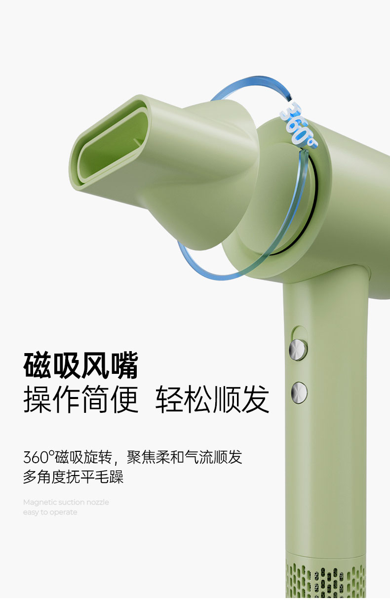 • 360°磁吸风嘴,聚焦柔和气流顺发,多角度抚平毛躁