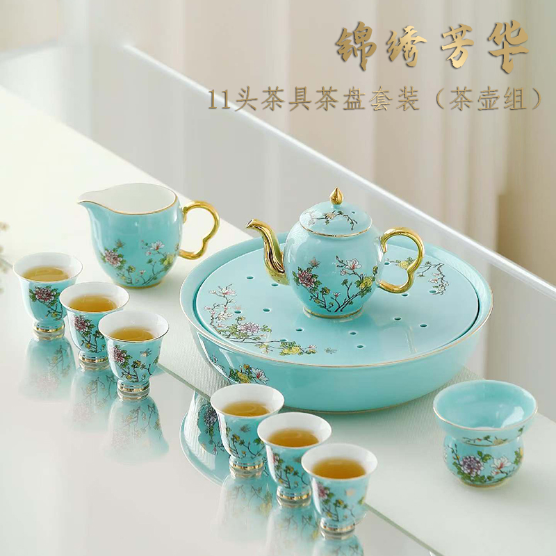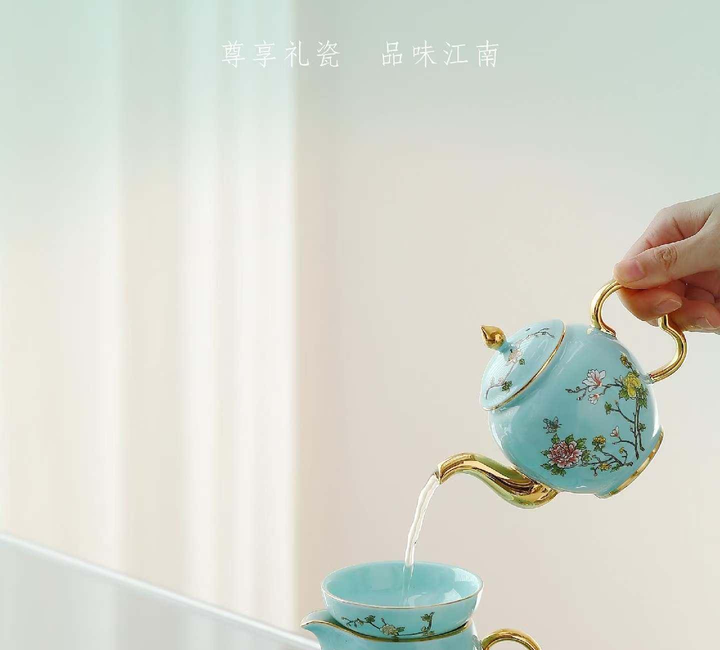 尾桥下窑尊享江南系列带茶盘陶瓷功夫茶具套装商务会议新年伴手礼