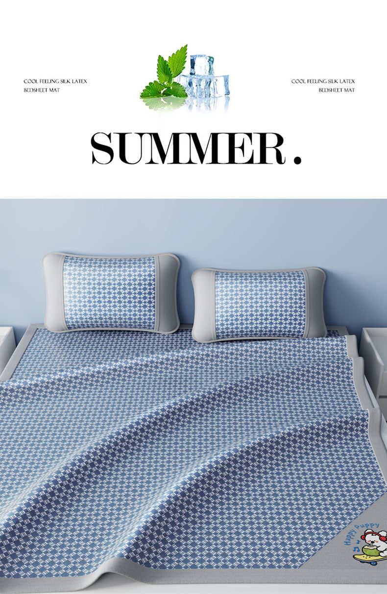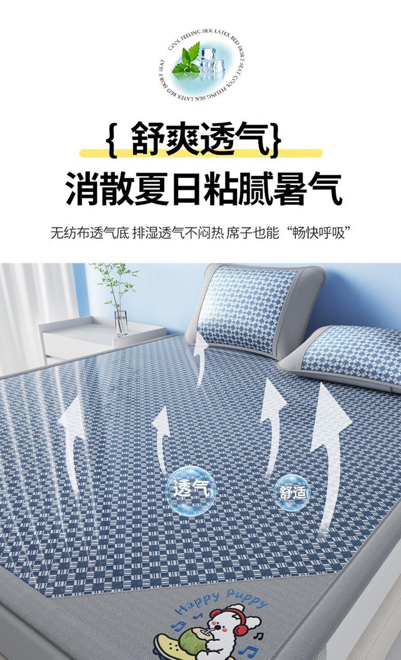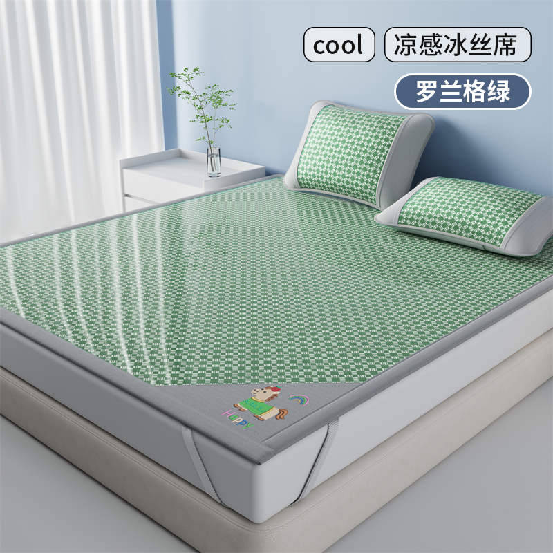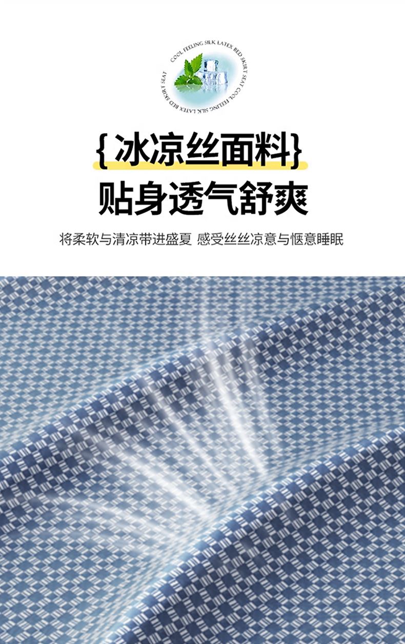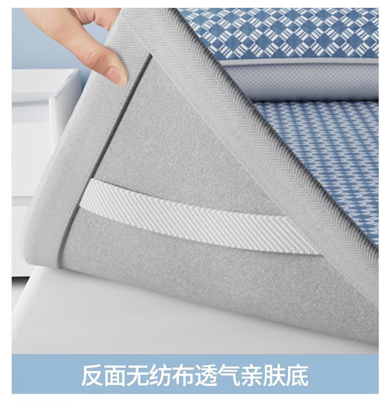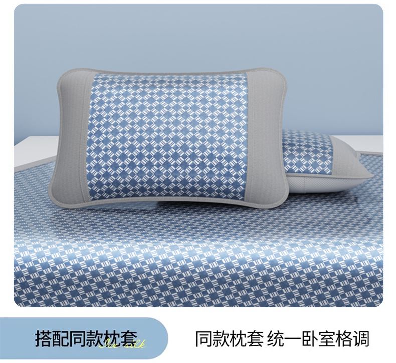 1:凉感夏日睡眠正当时 凉而不冰老少皆宜: 凉感冰丝席 2:{舒爽透气消散夏日粘腻暑气 无纺布透气底排湿透气不闷热席子也能“畅快呼吸” 尺寸:180x200cm单凉席+枕套一对 面料:云锻纤维 包装:彩盒