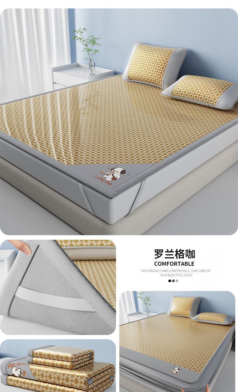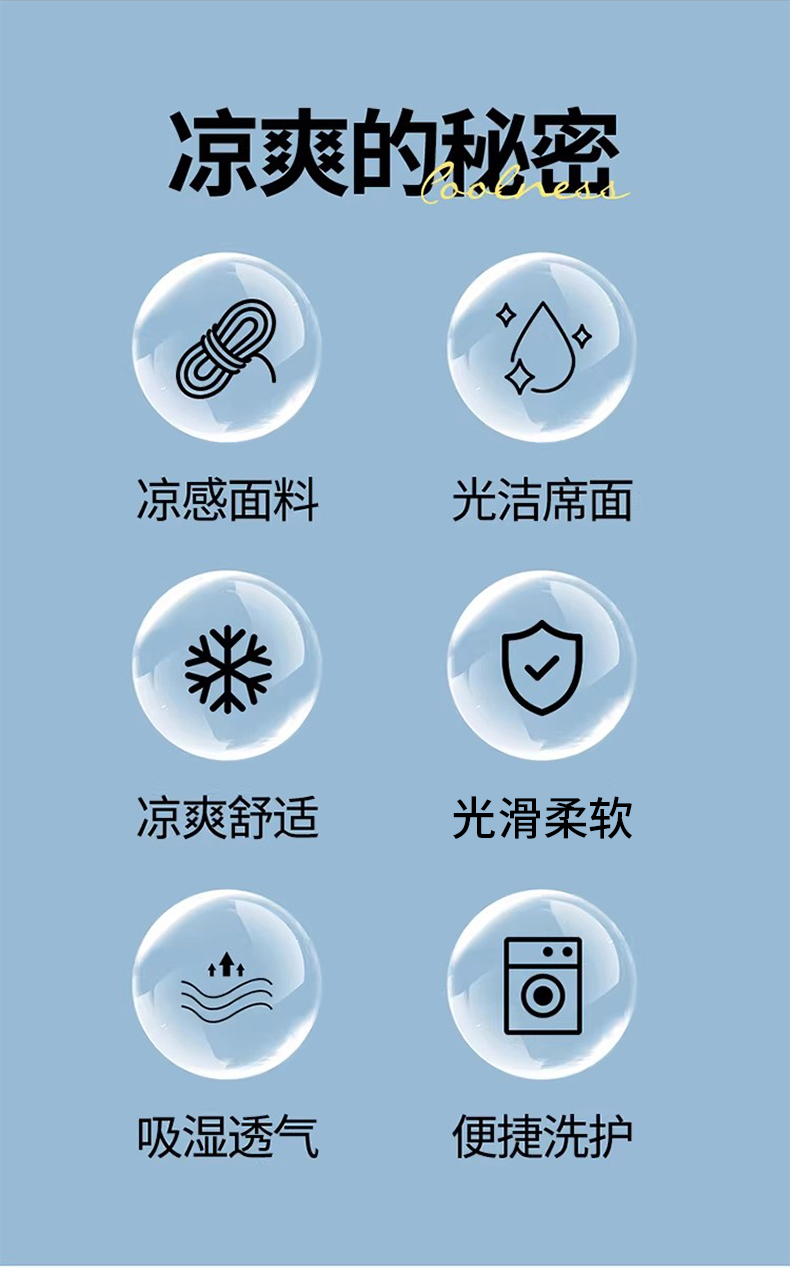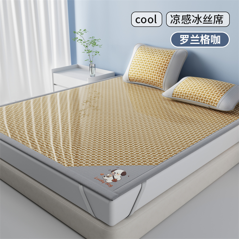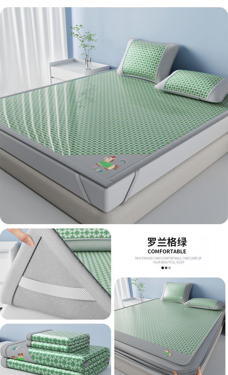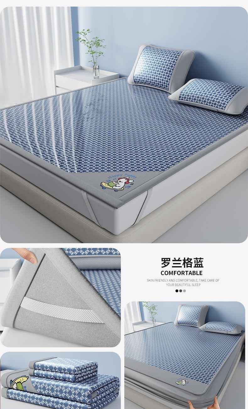 1:凉感夏日睡眠正当时 凉而不冰老少皆宜: 凉感冰丝席 2:{舒爽透气消散夏日粘腻暑气 无纺布透气底排湿透气不闷热席子也能“畅快呼吸” 尺寸:180x200cm单凉席+枕套一对 面料:云锻纤维 包装:彩盒