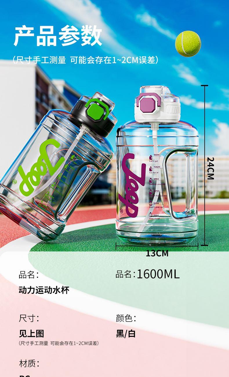 流行元素:小清新 货号:D340NR2142 产地:中国大陆 适用人群:00后 材质:杯体Pc材质+硅胶吸管 容量:1600ml 适用场景:通用 是否带吸管:是 颜色分类:木槿紫/墨绿色