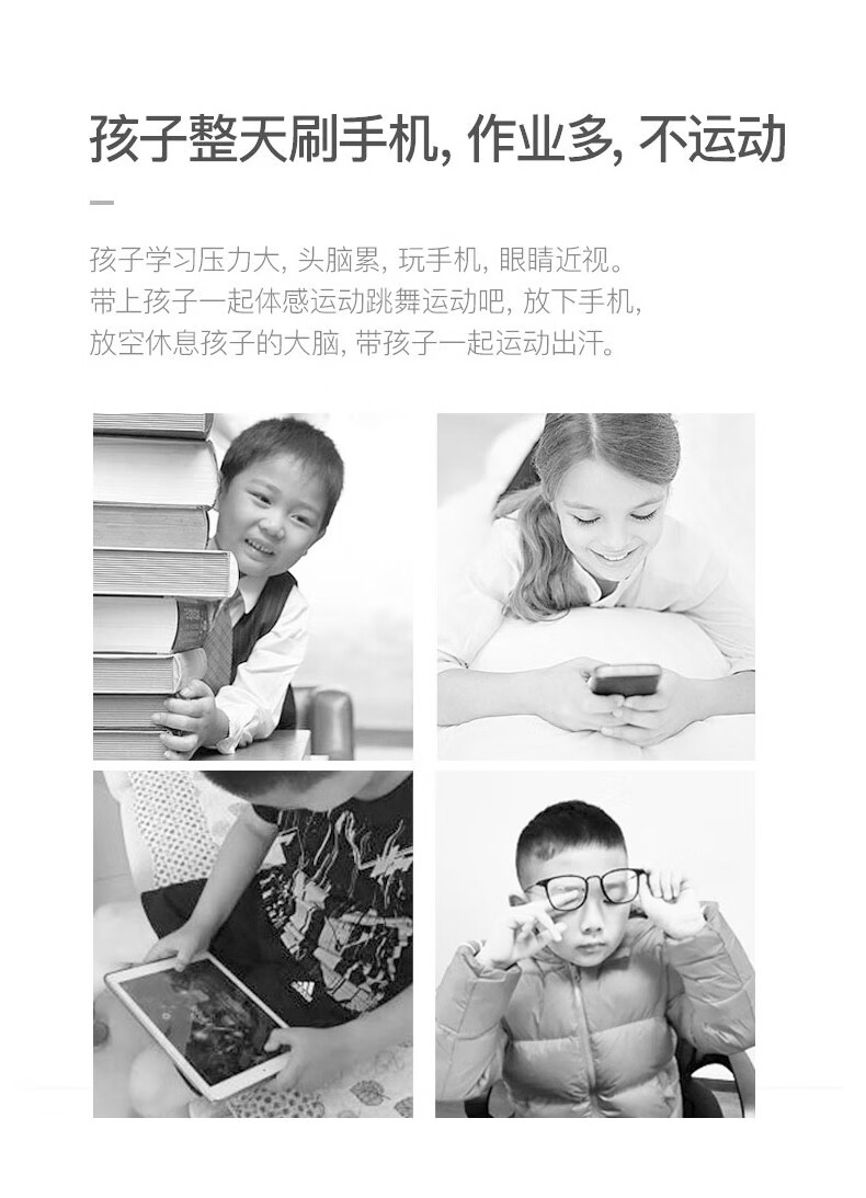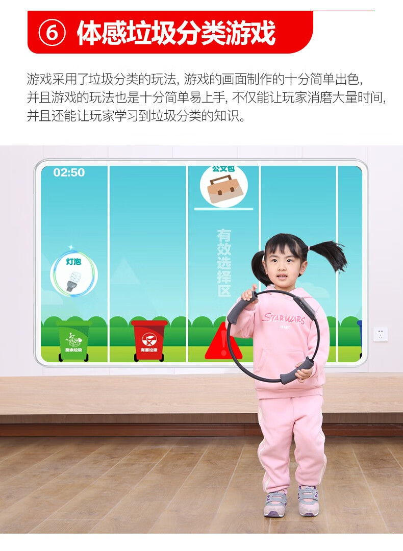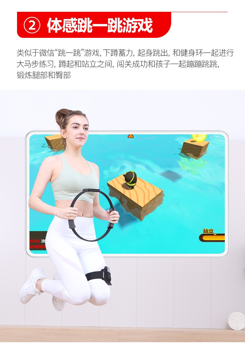 电流: 500mA 输入电压: 5V 充电时长: 3小时 充电后使用时长: 12小时 净重/毛重: 0 5KG/1KG 包装尺寸:341*341*76MM 颜色:黑色/灰色 满足3-70岁不同人群使用,内置体感瑜伽,体感健身操,游戏会定期免费更新,每次更新3-5款,目前内置16款体感益智游戏 ①体感障碍酷跑游戏②体感跳一跳游戏③体感赛车运动游戏④体感音乐环环游戏⑤体感棒球击打游戏⑥体感垃圾分类游戏⑦体感节奏空间游戏⑧体感益智划船游戏⑨体感胸大肌挑战⑩体感穿越侏罗纪⑪体感砸陶罐练臂力⑫体感打气球游戏⑬体感坦克大战游戏⑭体感坦克大战游戏⑮体感天际漫游游戏⑯体感飞车骑行游戏