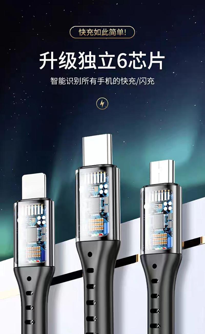 数据线长度:120cm 分线接头数量:一托三 颜色:红色 材料:硅胶+铝金合头 适用机型:苹果/安卓/Type-C • 66W超级快充:可充电任何手机,数码设备接口。 • 定制LOGO宣传 • 经济实用性价比高 出货速度快