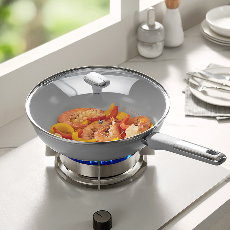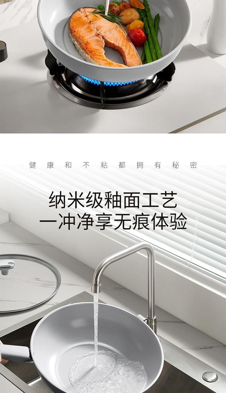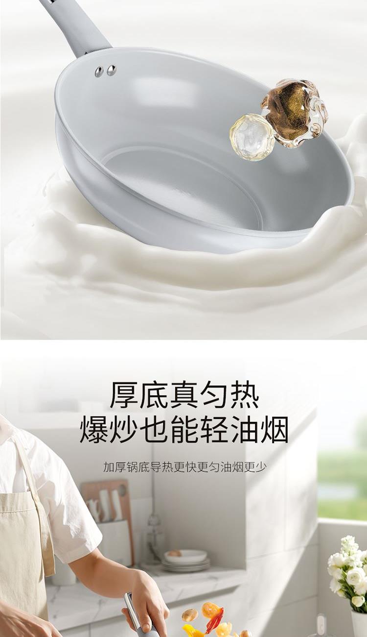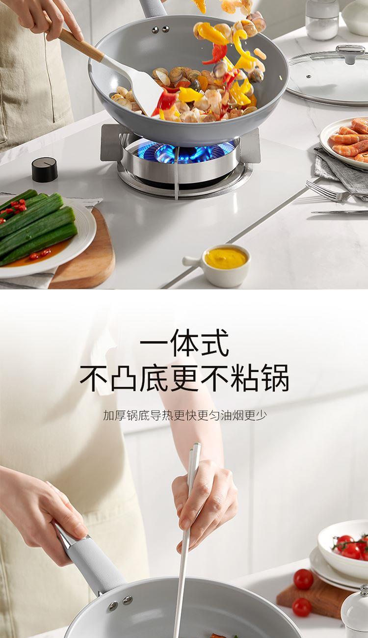 产品配置:30cm炒锅、24cm汤锅、24cm煎锅 产品材质:精铁YT0 产品涂层:聚四氟乙烯(食品接触用) 包装方式:彩盒+外箱 1、符合卫生标准的不粘工艺,健康安全,可放心使用; 2、人性化高强度钢化玻璃盖,持久耐用,烹饪美味一目了然; 3、锅沿防滴漏设计,可将汤汁轻松倒出,使用方便; 4、精铁材质制造,传热更快,受热均匀; 5、锅身外壁陶瓷源于天然无机物,耐高温耐腐蚀 ,易清洗久用如新; 6、隔热防烫手柄,符合人体工程学,使用舒适自然。