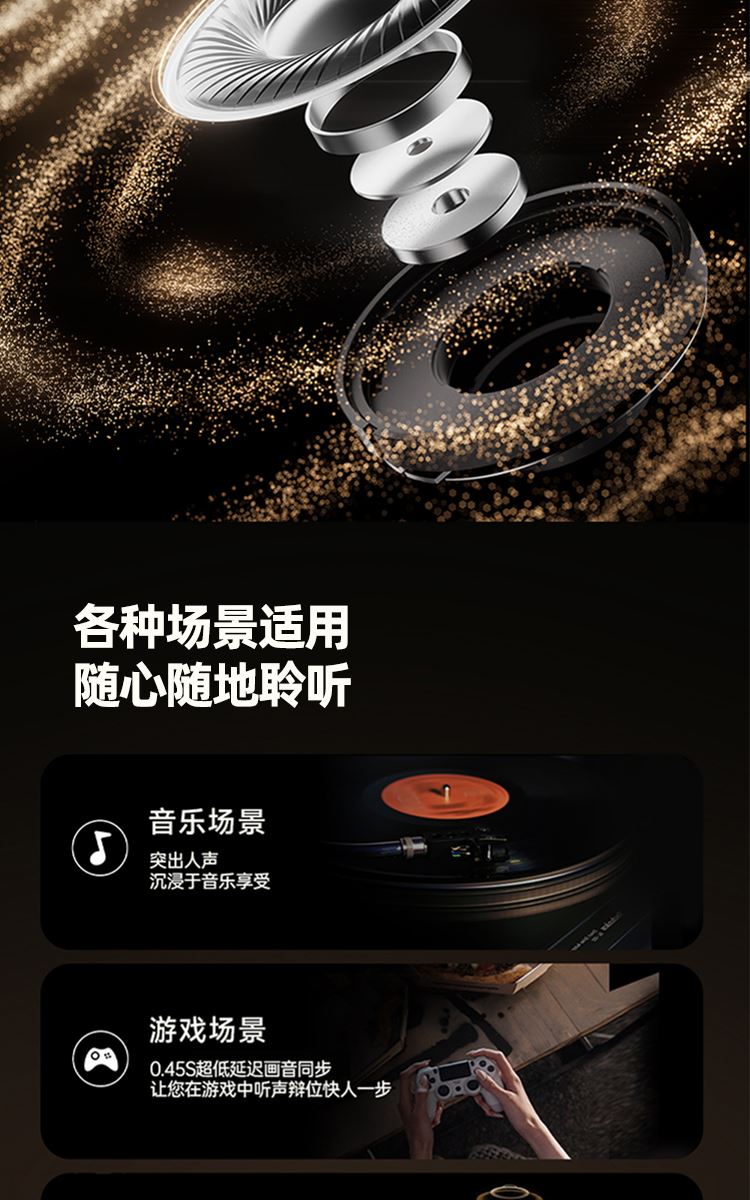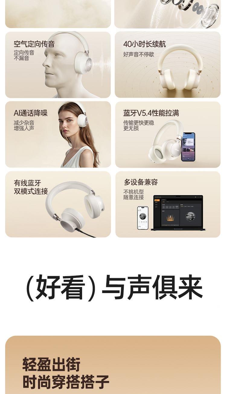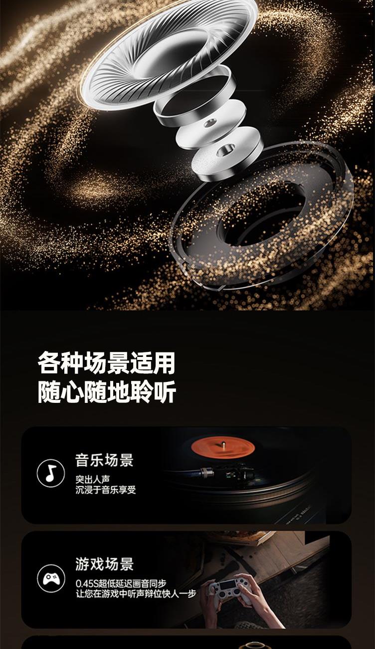 时尚单品,不止听音 空气感佩戴,够舒适,才动听 360°全景音效,声学旗舰,影院级听感