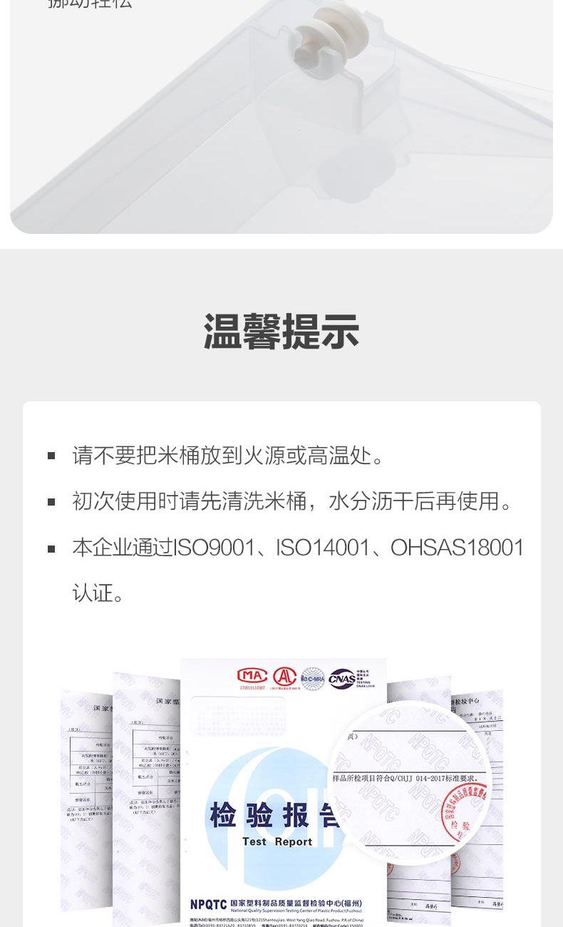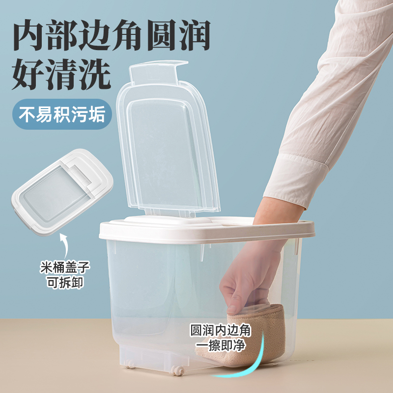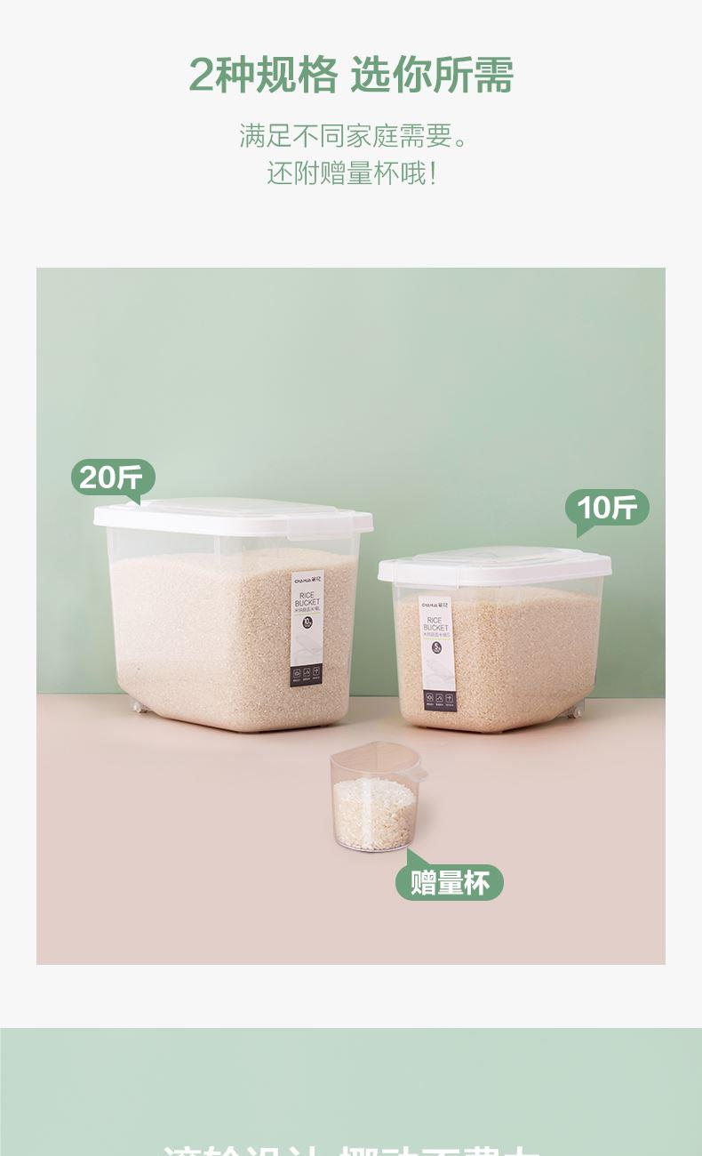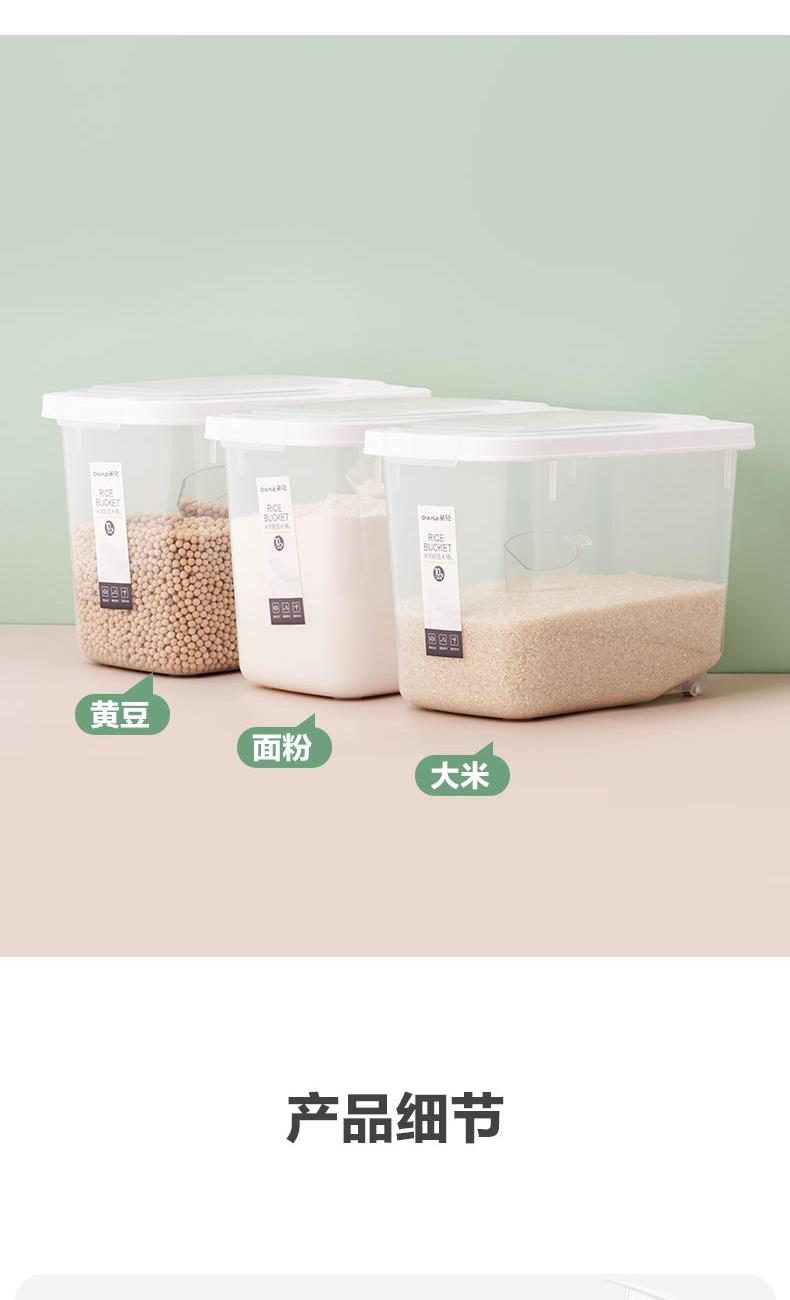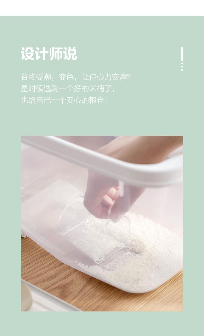产品货号:012002 产品尺寸:29.1*19.7*21.1CM 产品容量:5KG 产品克重:472.2g 外箱尺寸:60*30.5*53.5CM 包装方式:1PC/OPP BAG 产品颜色:白色 防尘侵入,安心储藏 滚轮设计,一抬一拉,挪动不费劲 光滑流线造型,便于清洁