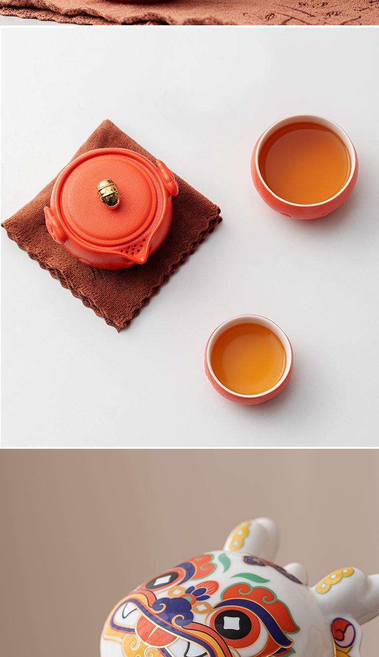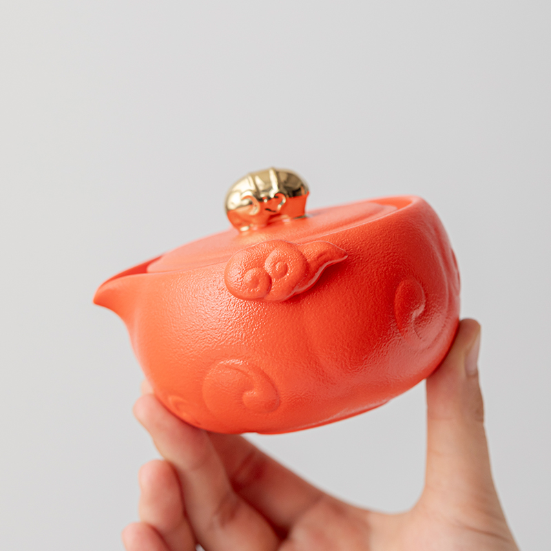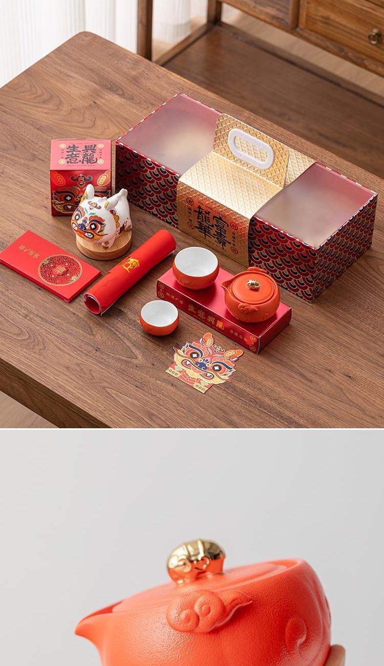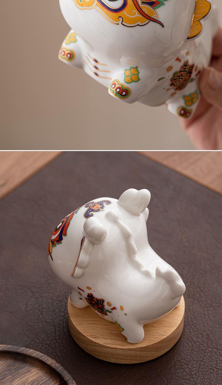 设计理念:清·铜鎏金珐琅太平有象文物为设计灵感,又以老百姓喜闻乐见的传统如意祥云图案为主要装饰元素,寄意丰富,是难得可贵的赠礼佳品。 产品配置:吉象茶壶*1、主人杯*1、客杯*1、陶瓷拍拍灯摆件*1、对联*1 、红包*6、礼盒、礼袋