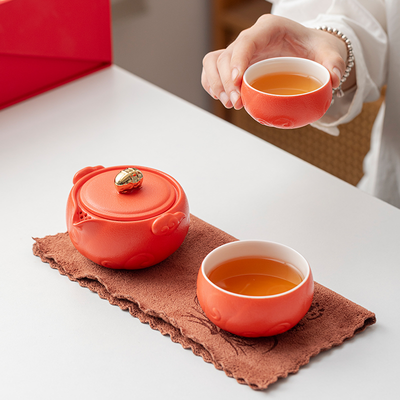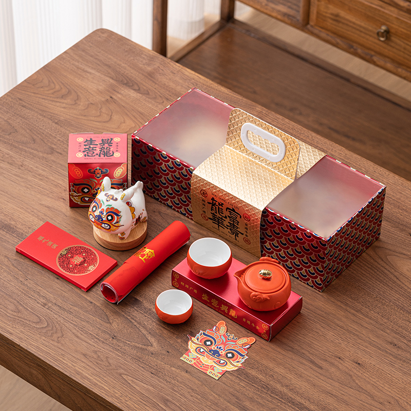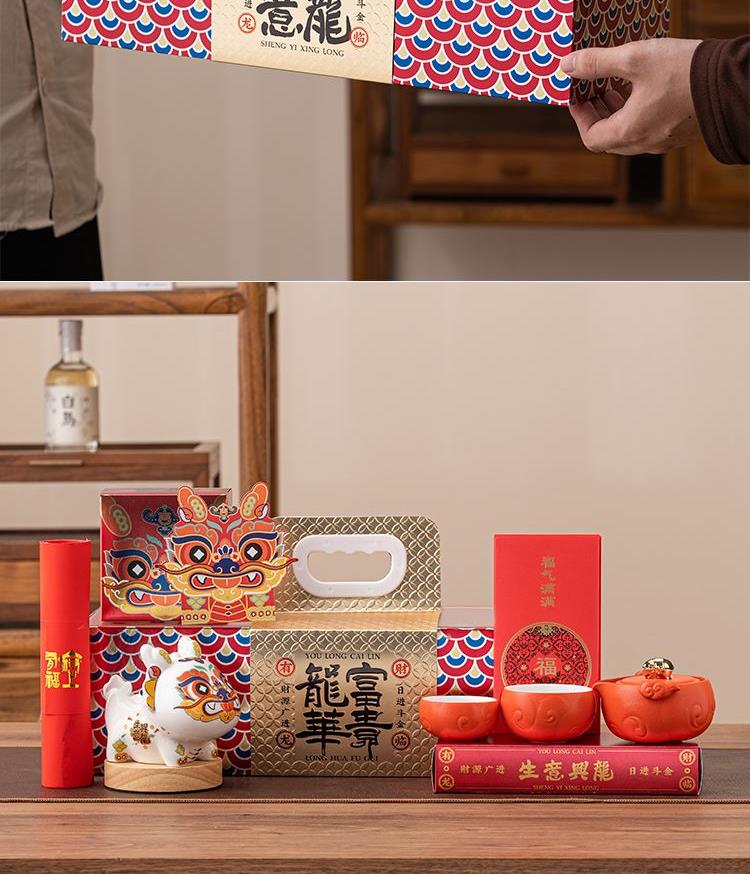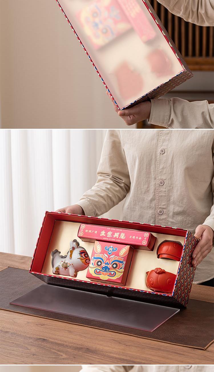 设计理念:清·铜鎏金珐琅太平有象文物为设计灵感,又以老百姓喜闻乐见的传统如意祥云图案为主要装饰元素,寄意丰富,是难得可贵的赠礼佳品。 产品配置:吉象茶壶*1、主人杯*1、客杯*1、陶瓷拍拍灯摆件*1、对联*1 、红包*6、礼盒、礼袋