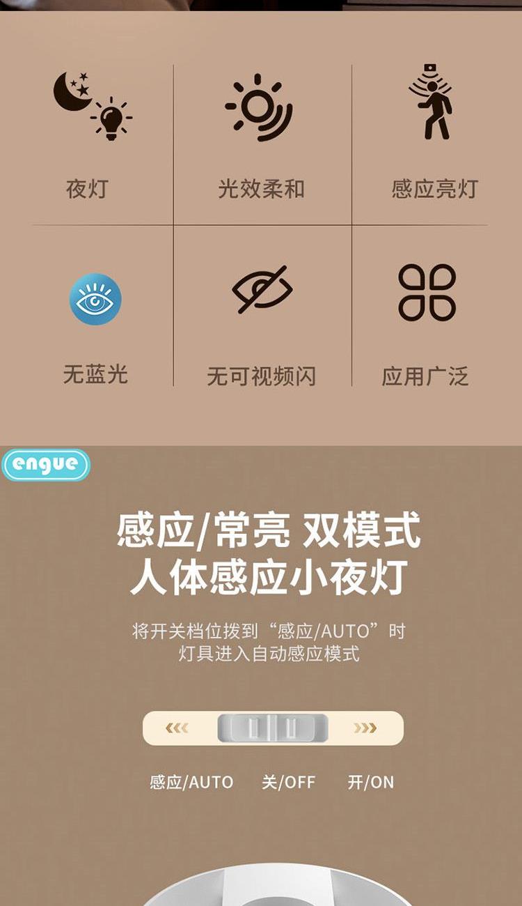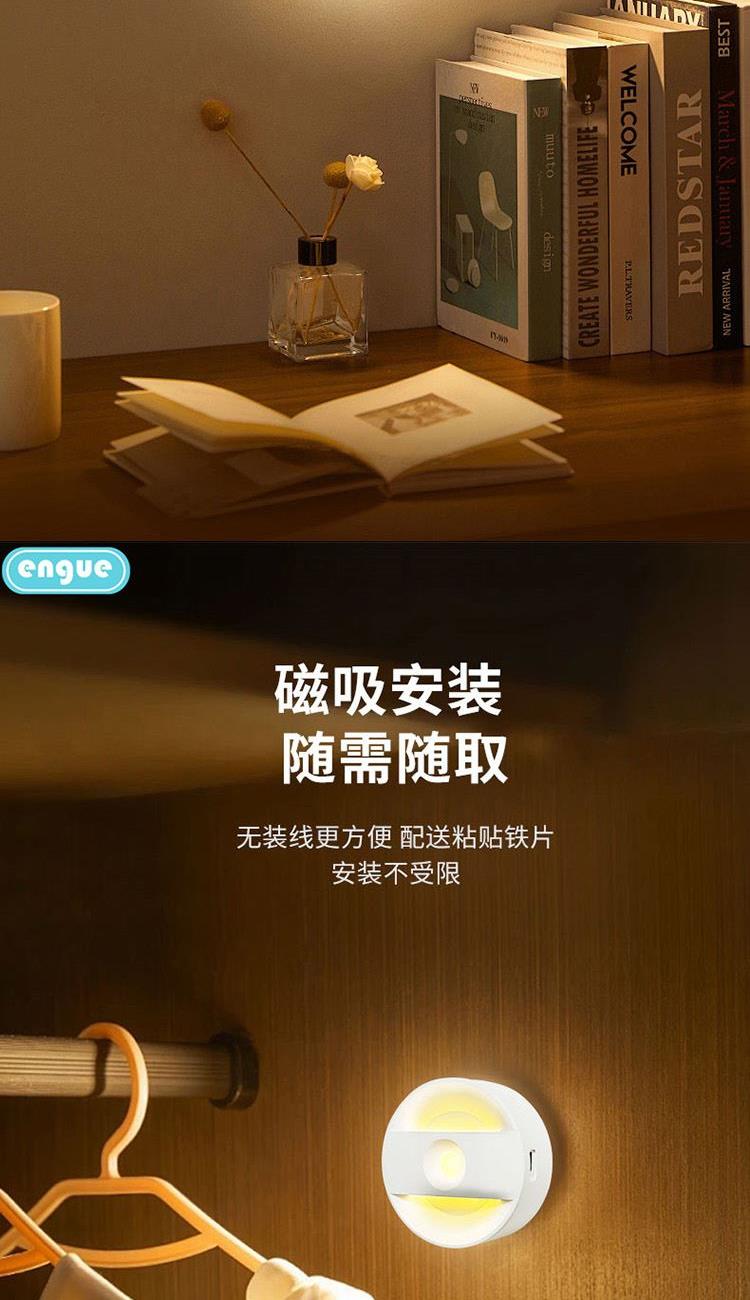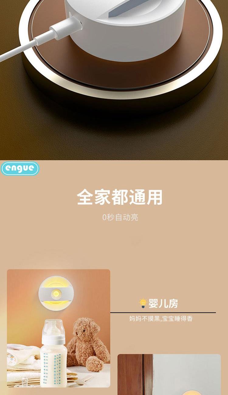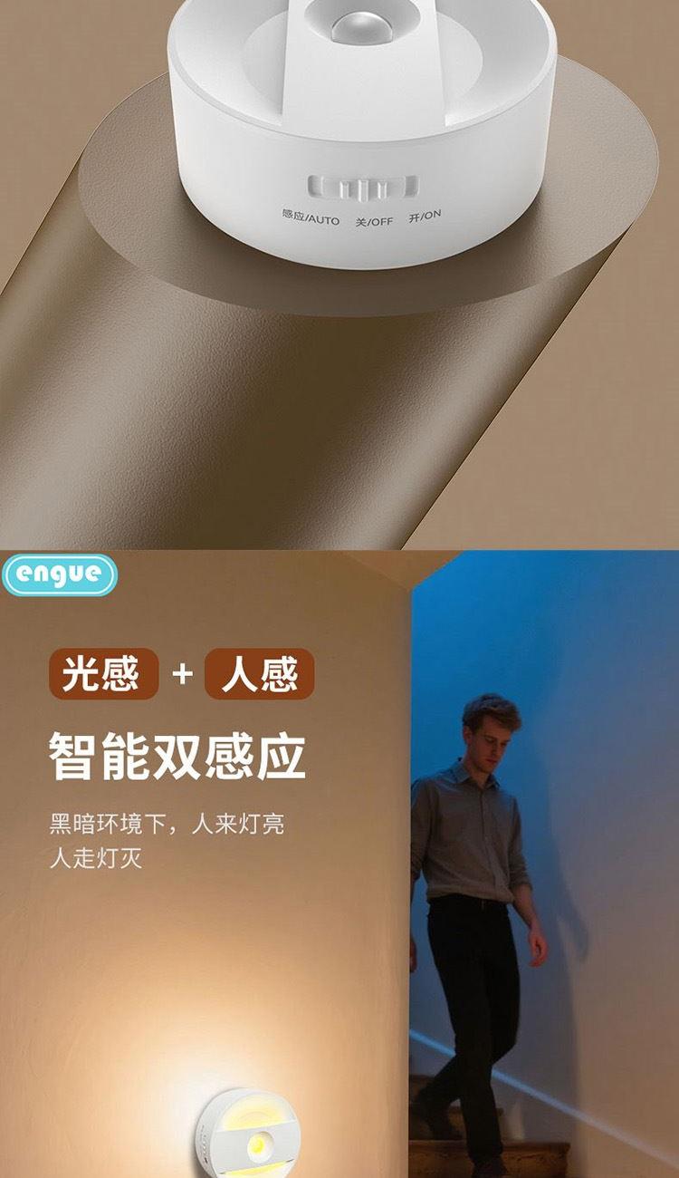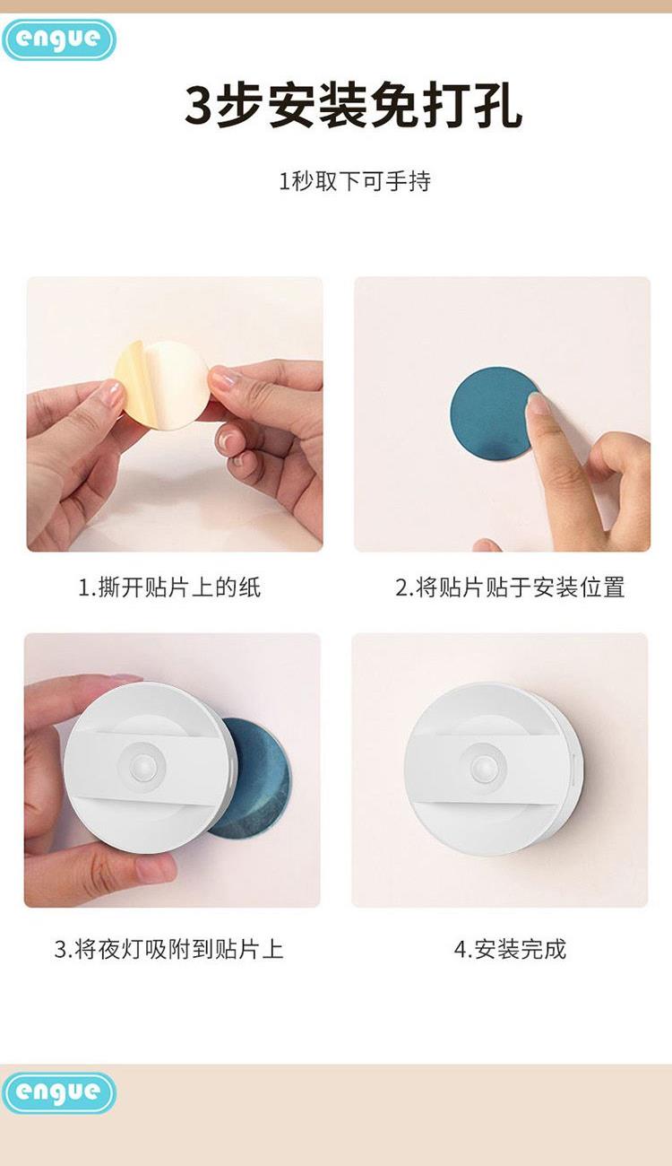 LED功率:1.2W,12颗LED 材质:PVC 色温:3000K(暖白光) 电池容量:1200mAh 充电时间:3小时 续航时间:4小时 充电方式:Type-C 净 重:80g 开 关:拨动开关 尺 寸: 79*79*37mm 防水等级:IPX-5生活性防水 感光范围:120°,2-5米 持续时间:20S