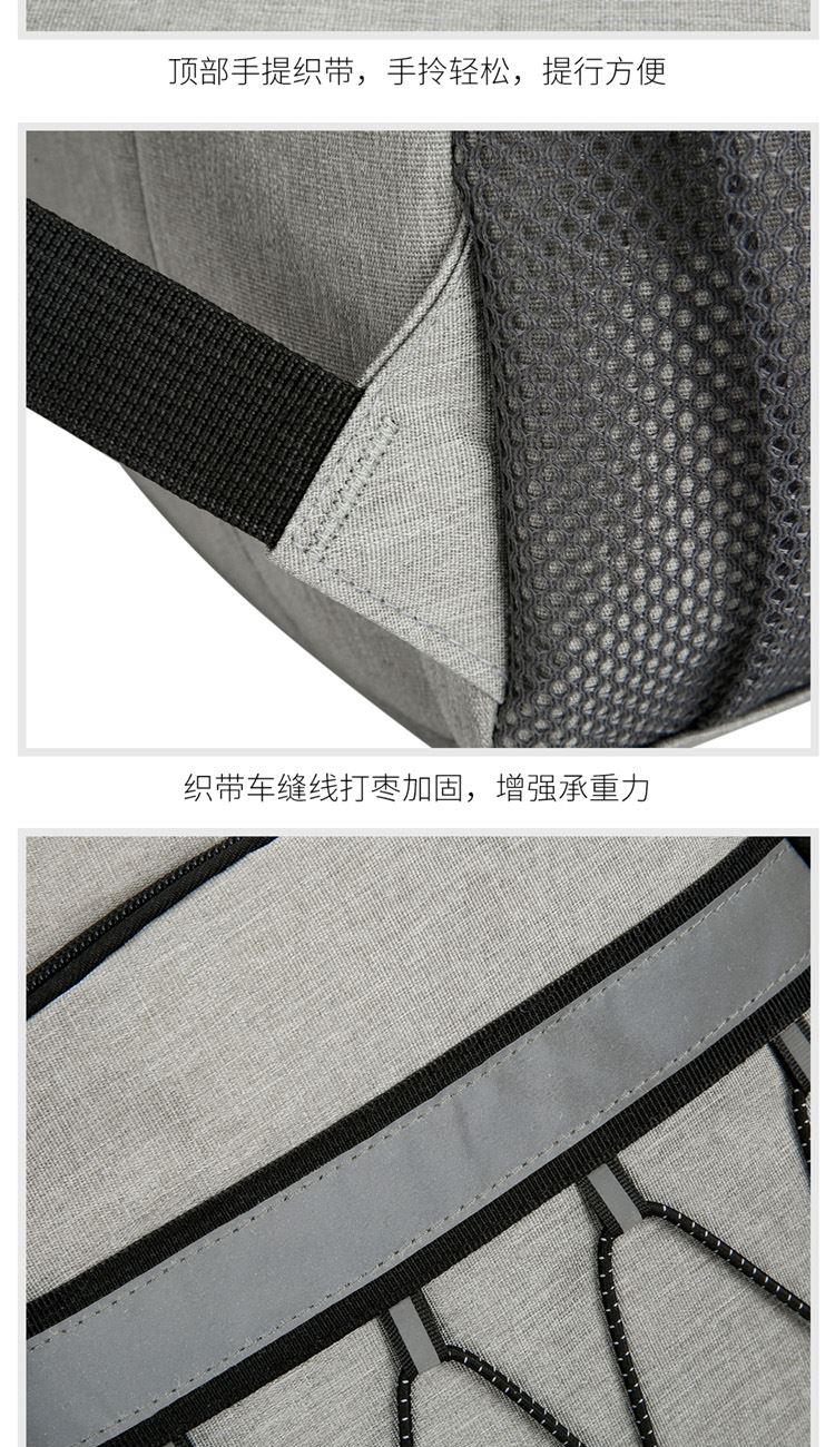材质:300D涤纶防泼水面料 重量:0.56kg 尺寸:40*30*15cm 颜色:黑/灰